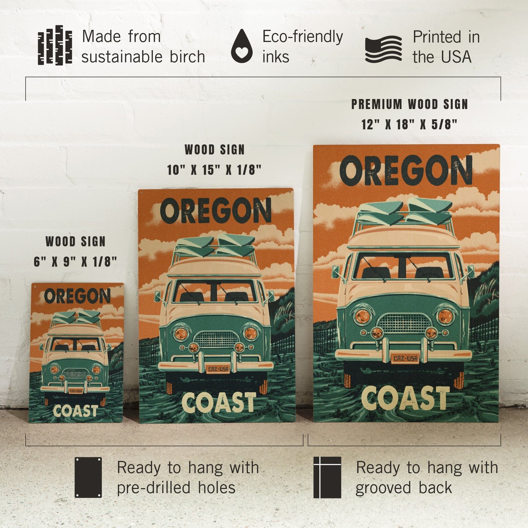 Oregon Coast, Letterpress, Camper Van, Lantern Press Artwork, Wood Signs and Postcards Wood Lantern Press