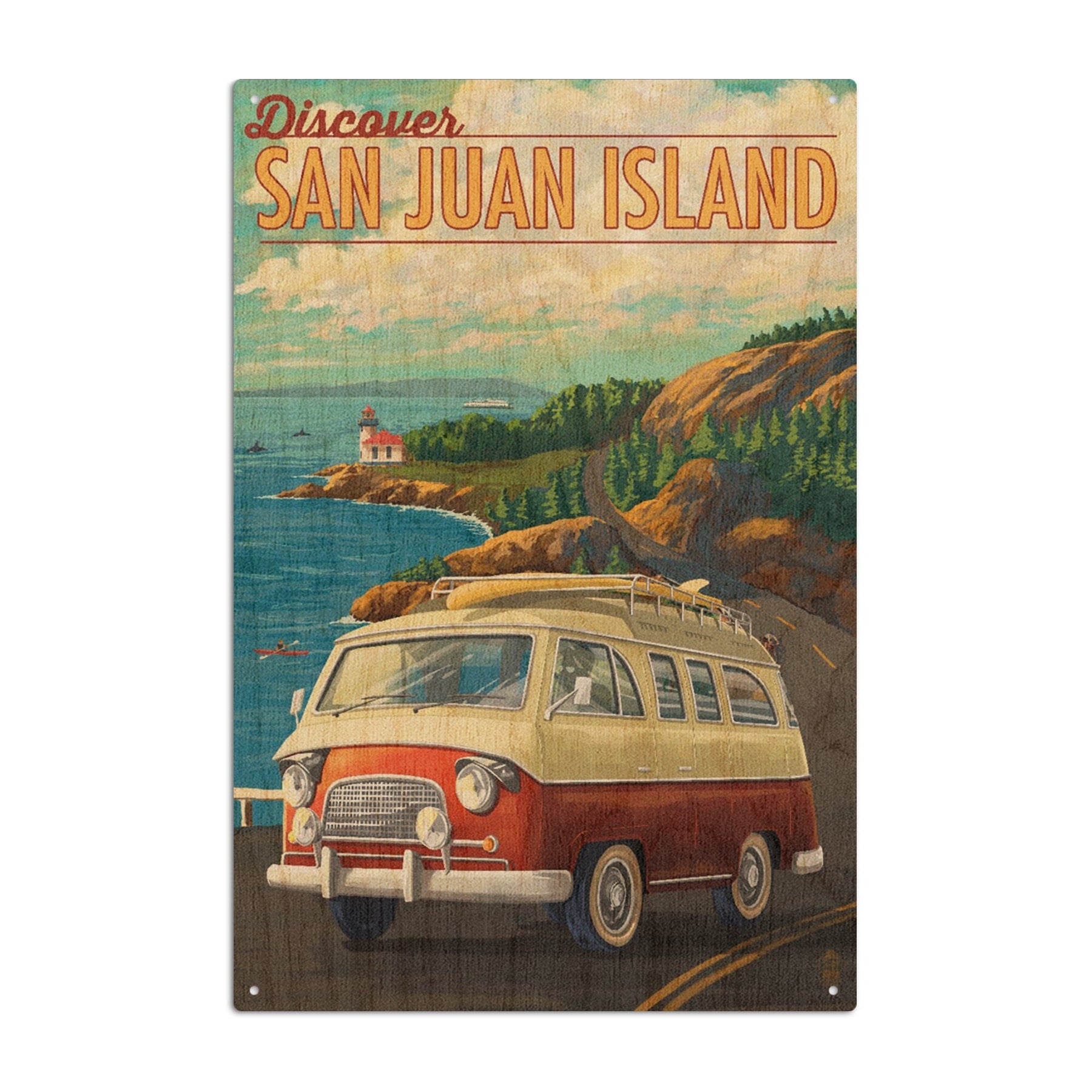 San Juan Island, Washington, LP Camper Van, Lantern Press Poster, Wood Signs and Postcards