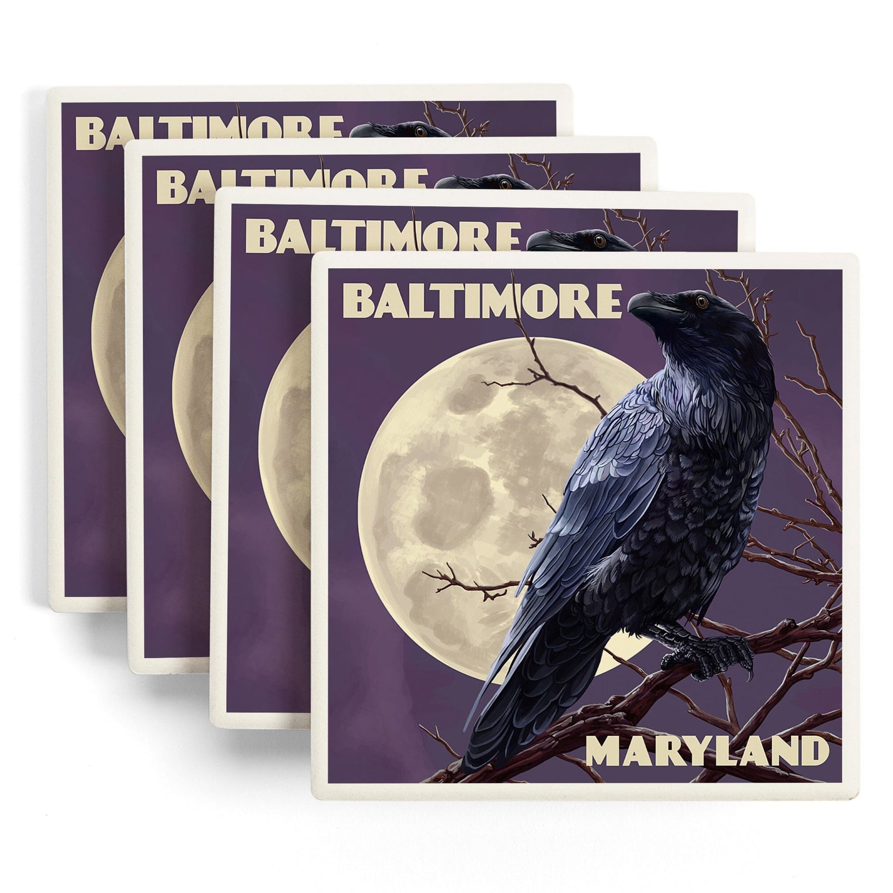 Baltimore, Maryland, Raven and Moon Purple Sky, Coasters Coasters Lantern Press