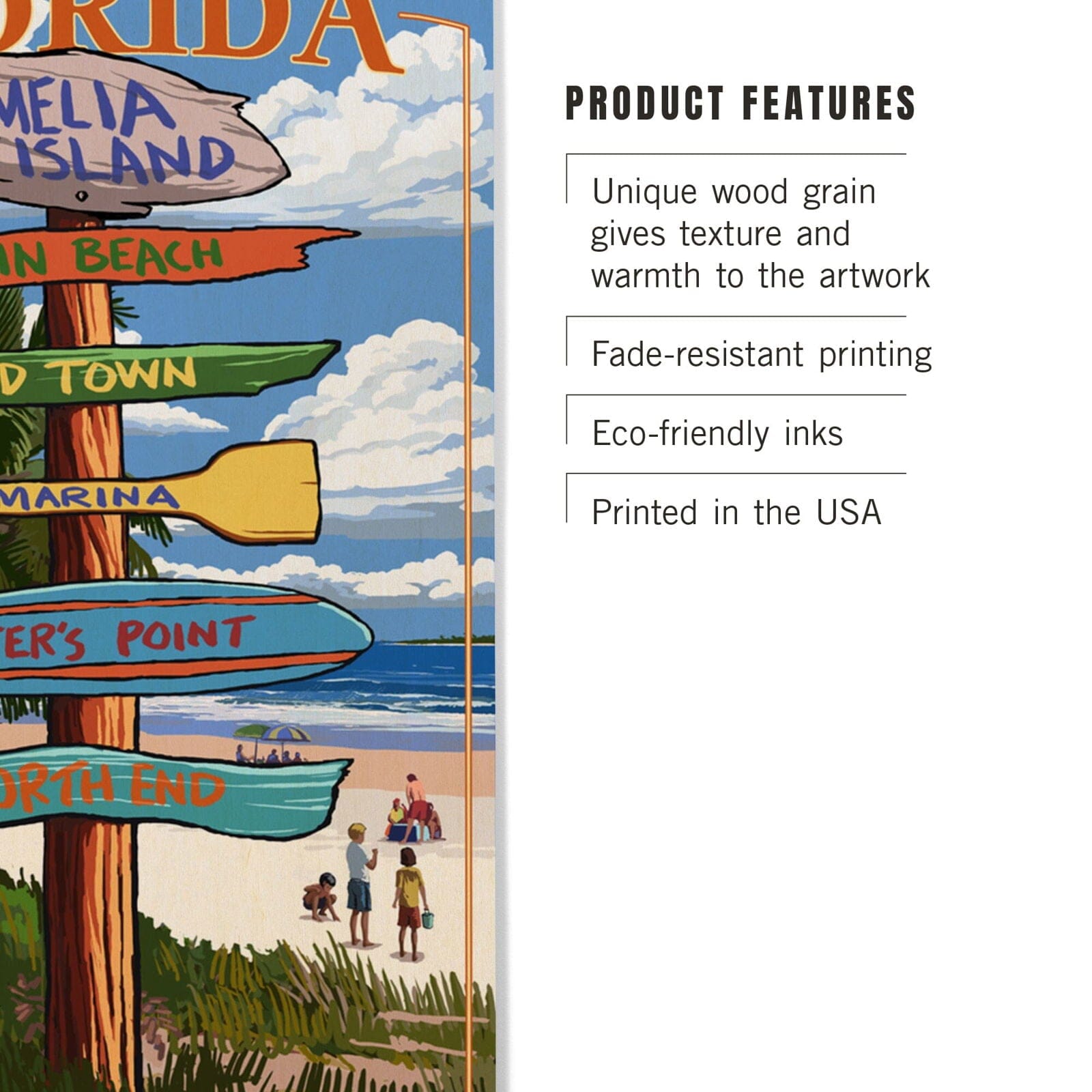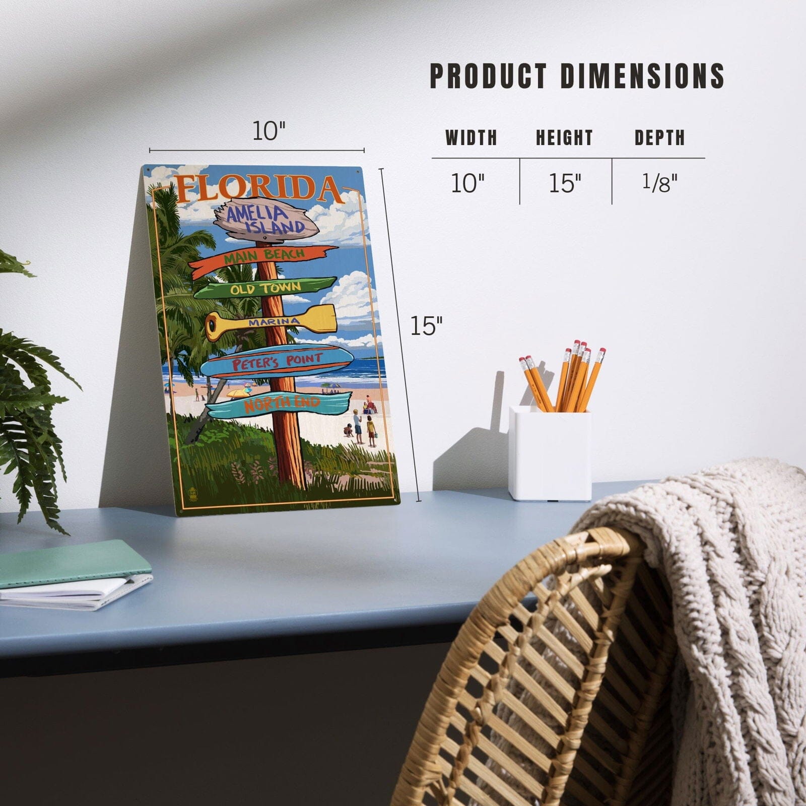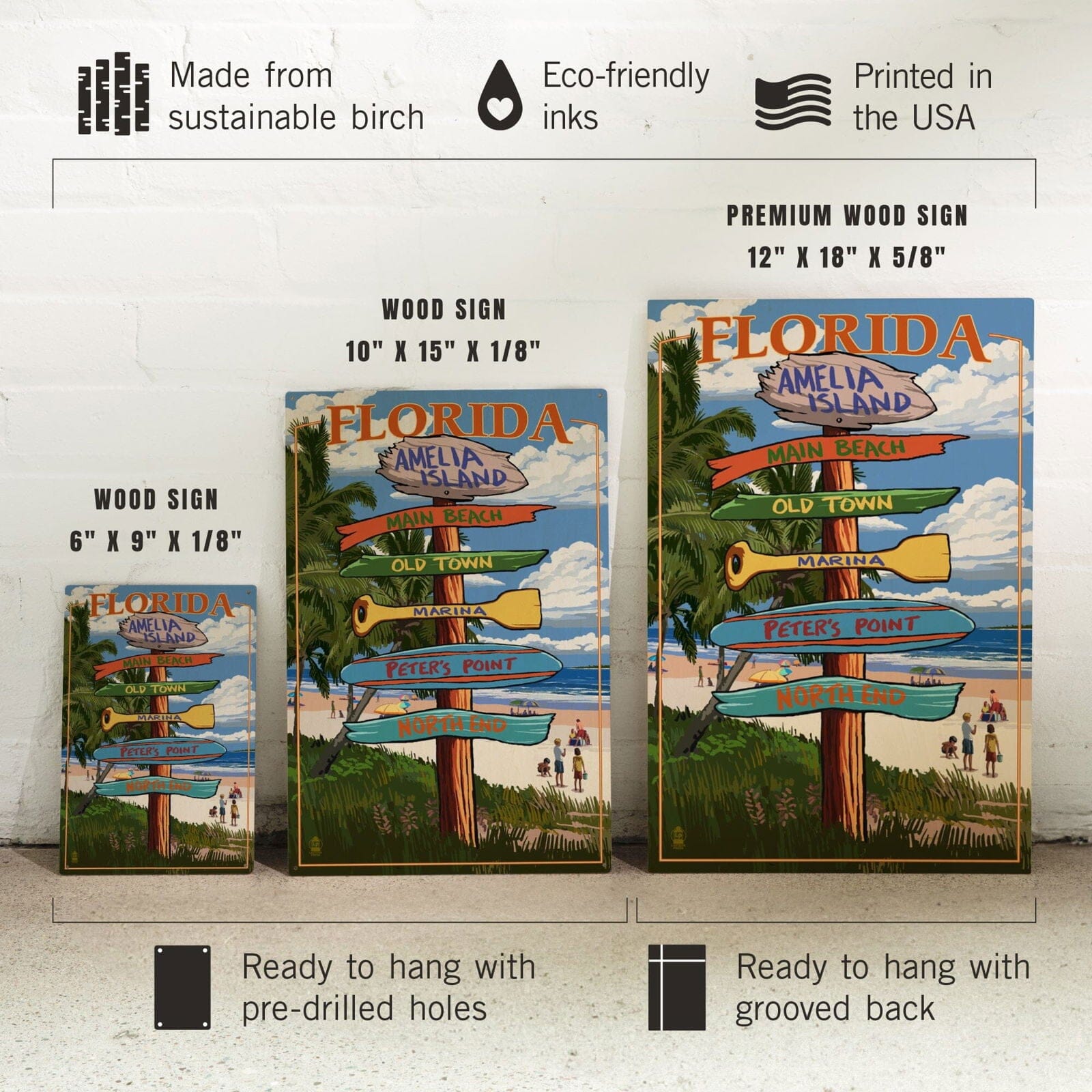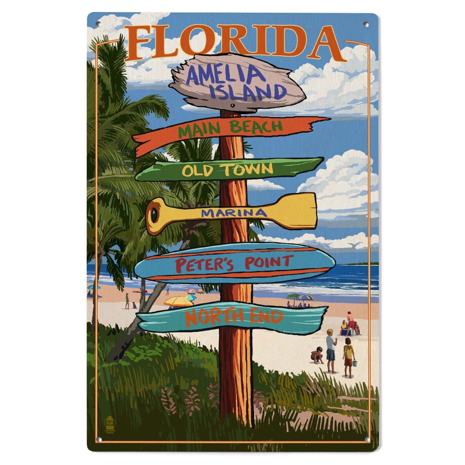 Amelia Island, Florida, Destinations Signpost, Lantern Press Poster, Wood Signs and Postcards Wood Lantern Press