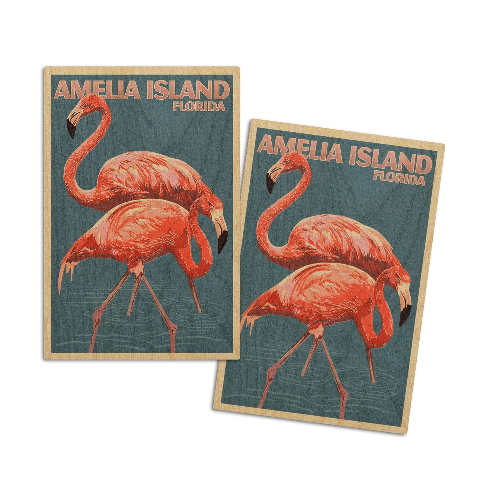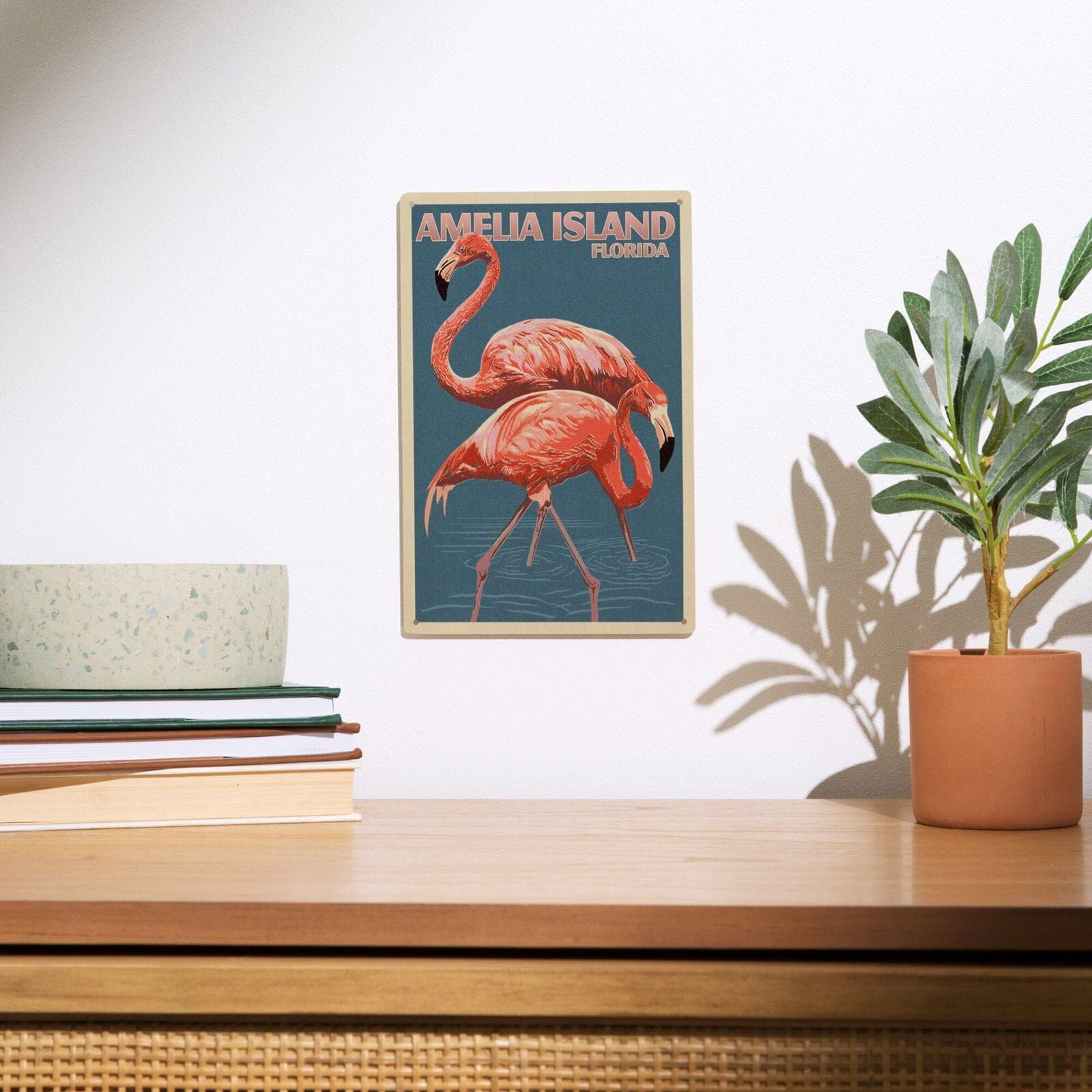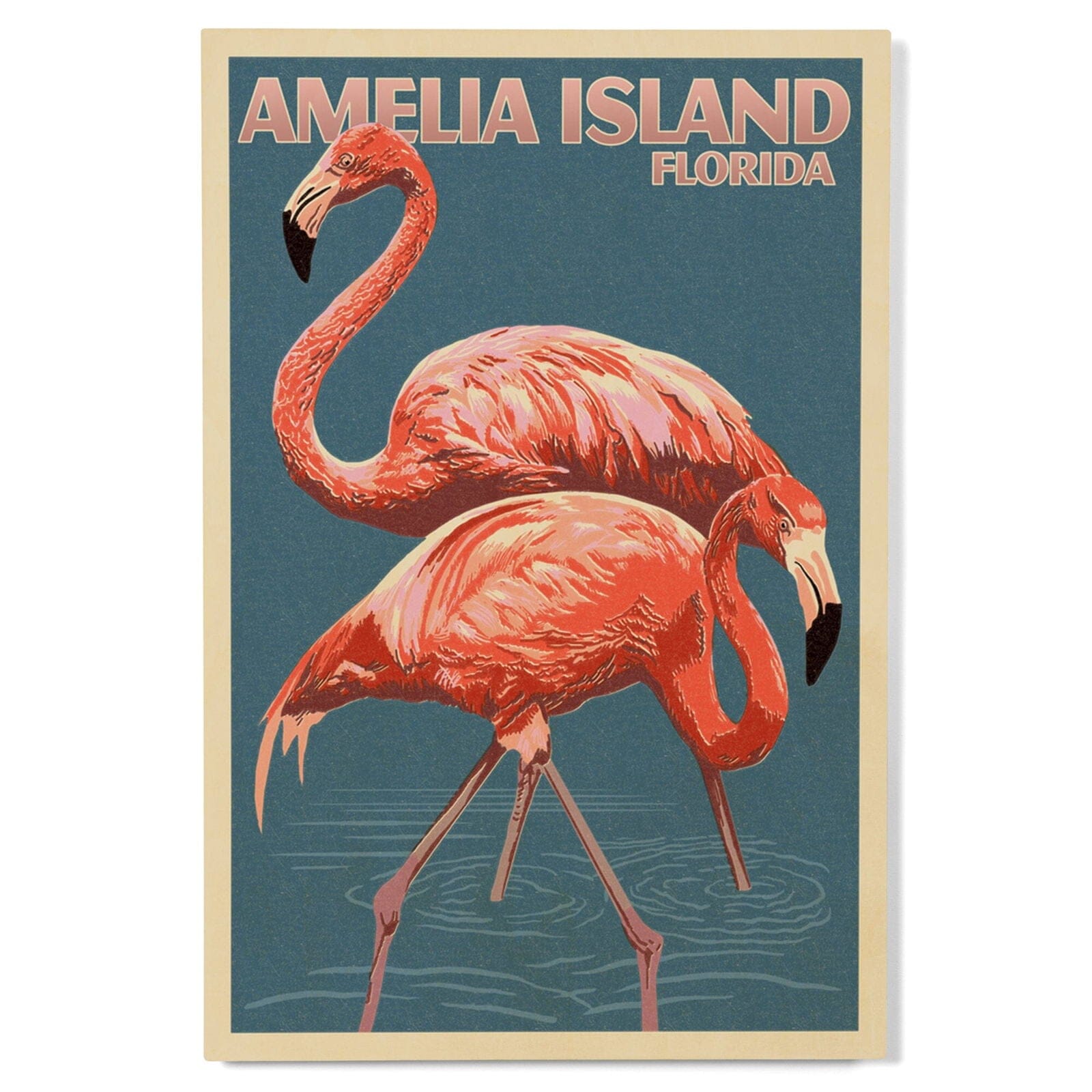 Amelia Island, Florida, Flamingo, Letterpress, Lantern Press Artwork, Wood Signs and Postcards