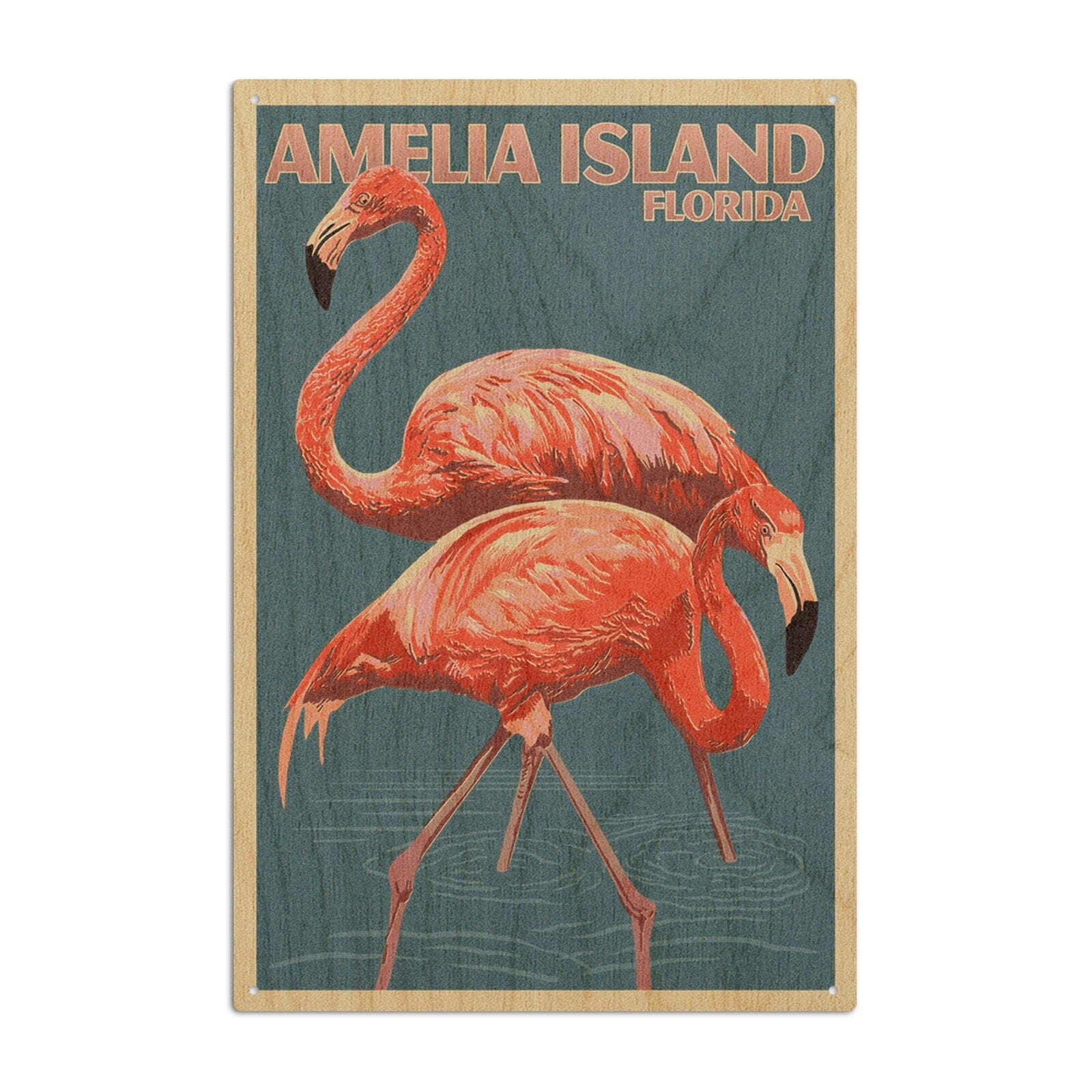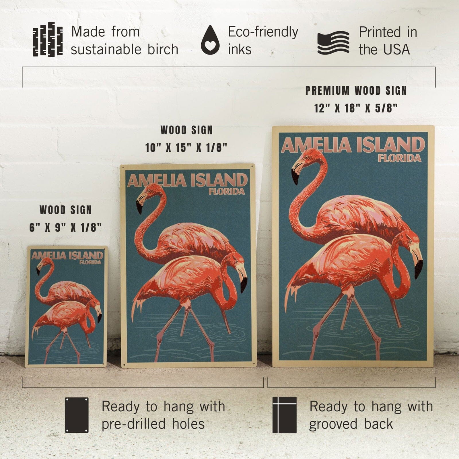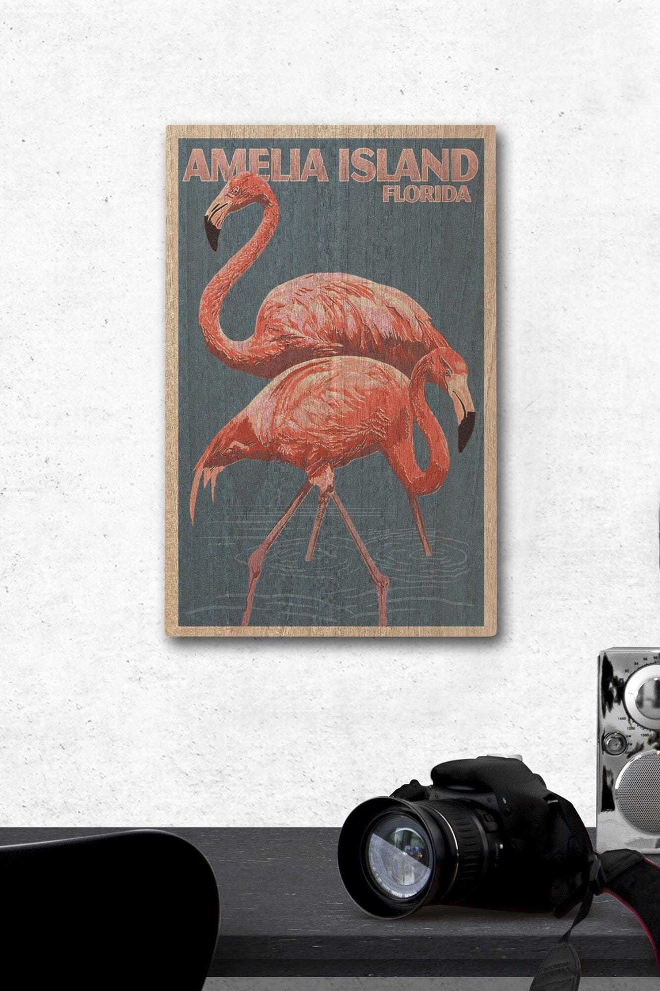 Amelia Island, Florida, Flamingo, Letterpress, Lantern Press Artwork, Wood Signs and Postcards