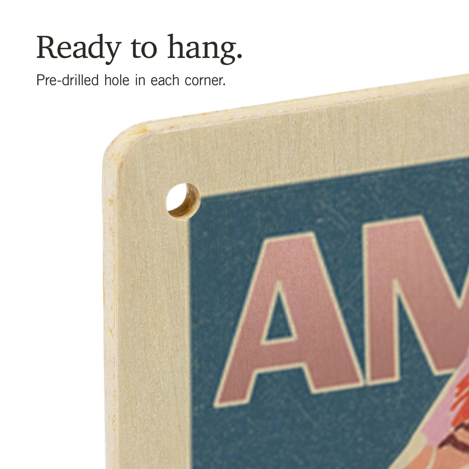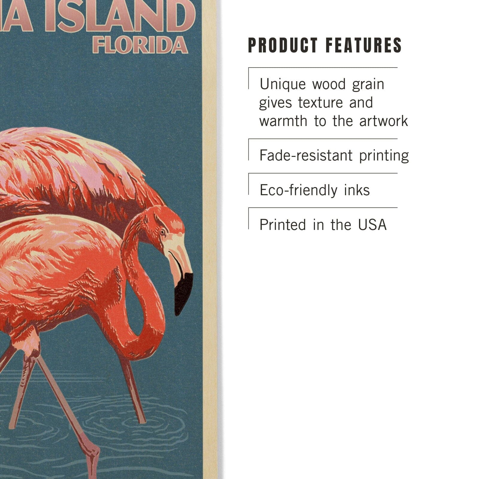 Amelia Island, Florida, Flamingo, Letterpress, Lantern Press Artwork, Wood Signs and Postcards Wood Lantern Press