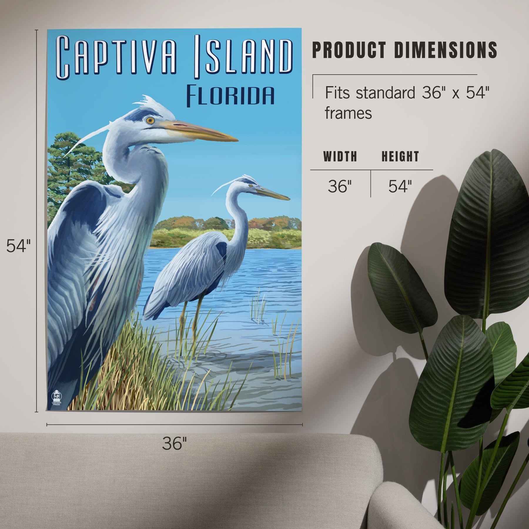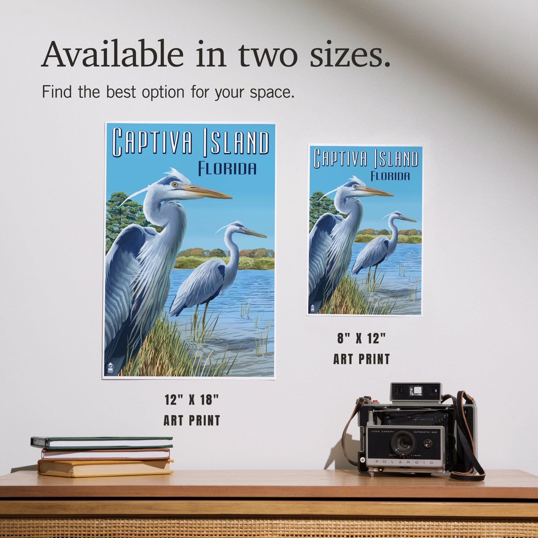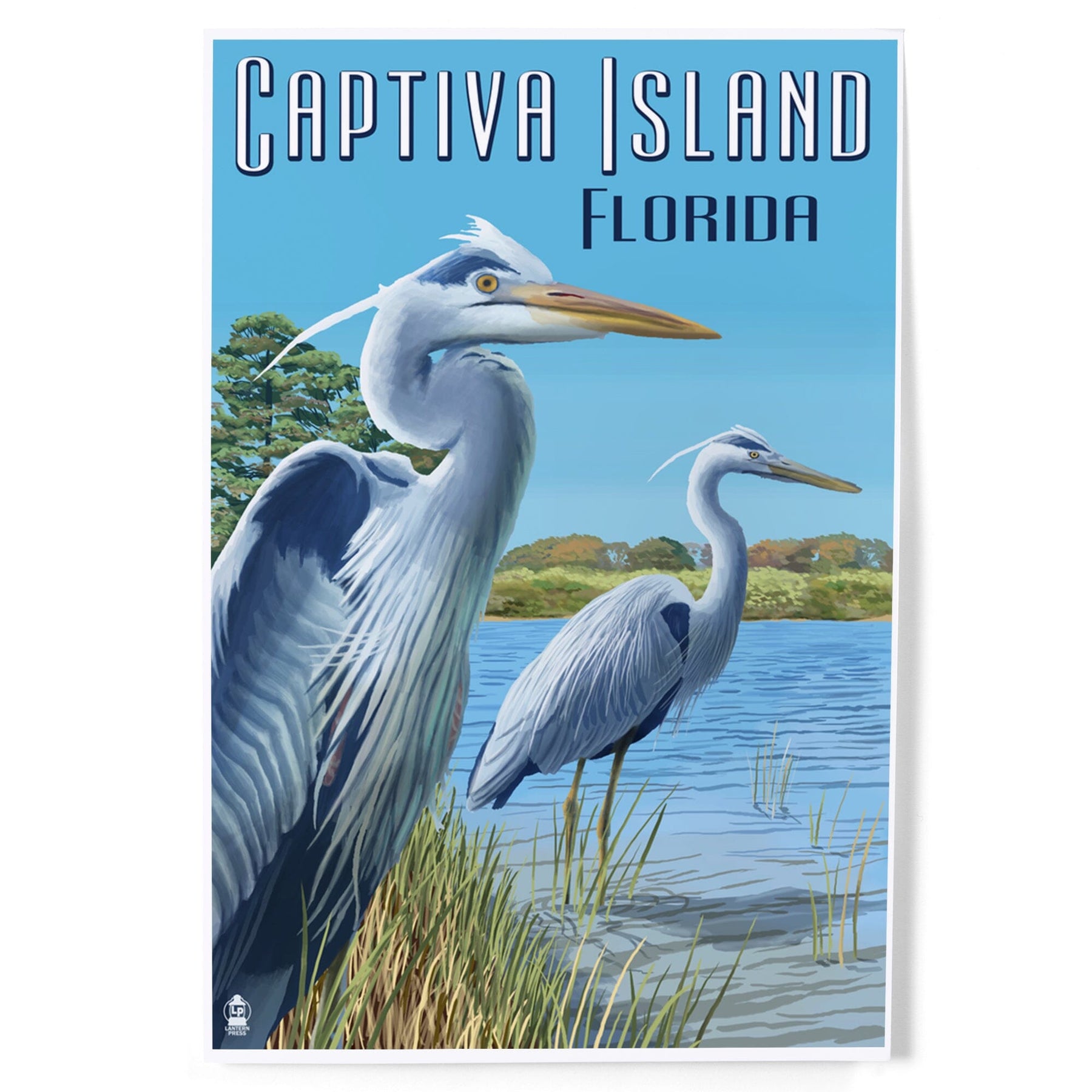 Captiva Island, Florida, Blue Herons in grass, Art & Giclee Prints - Lantern Press