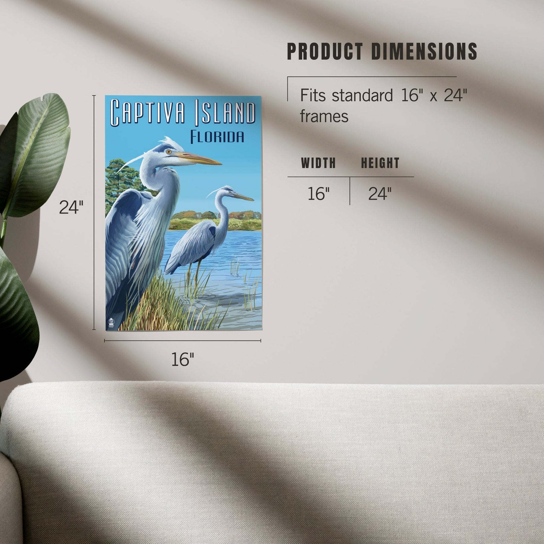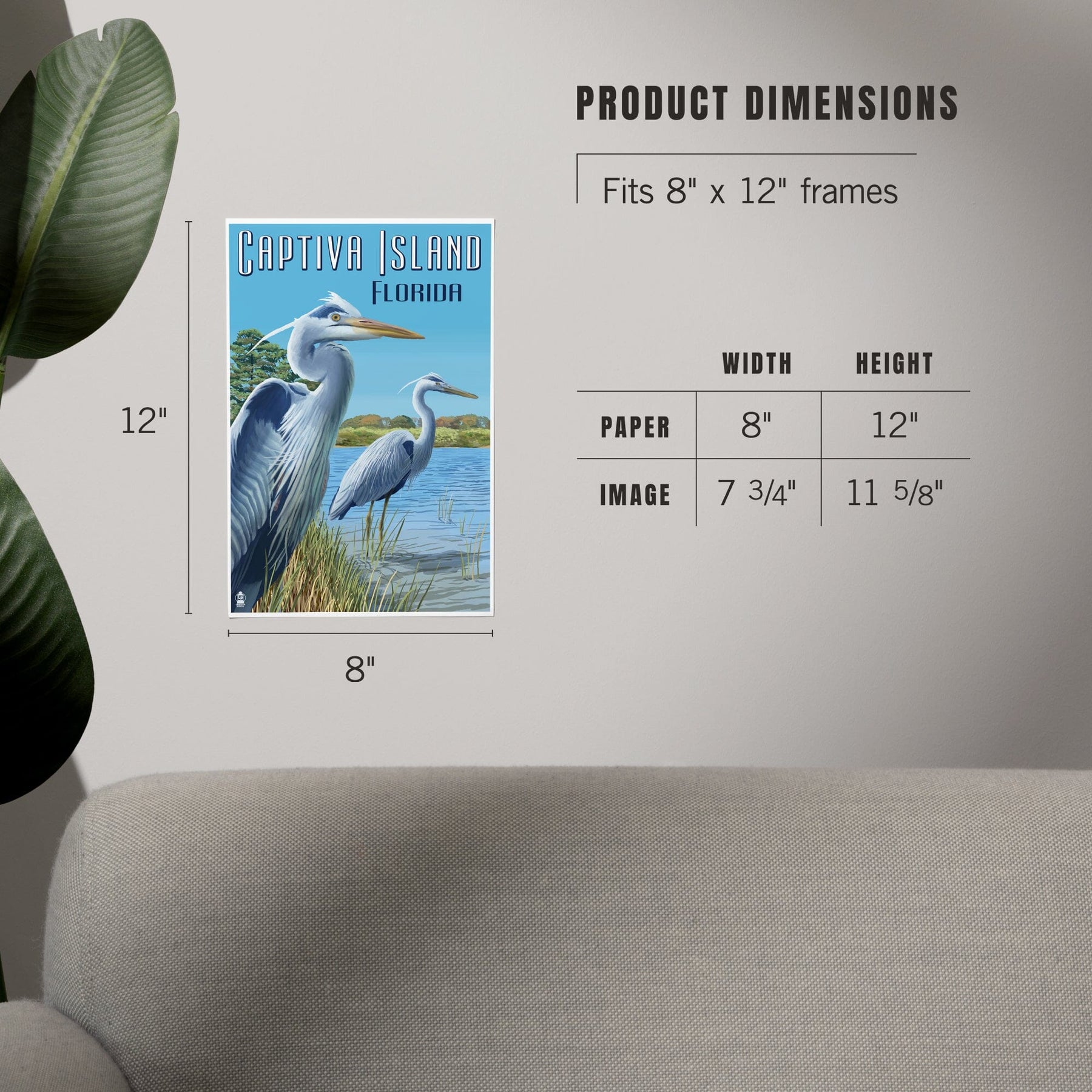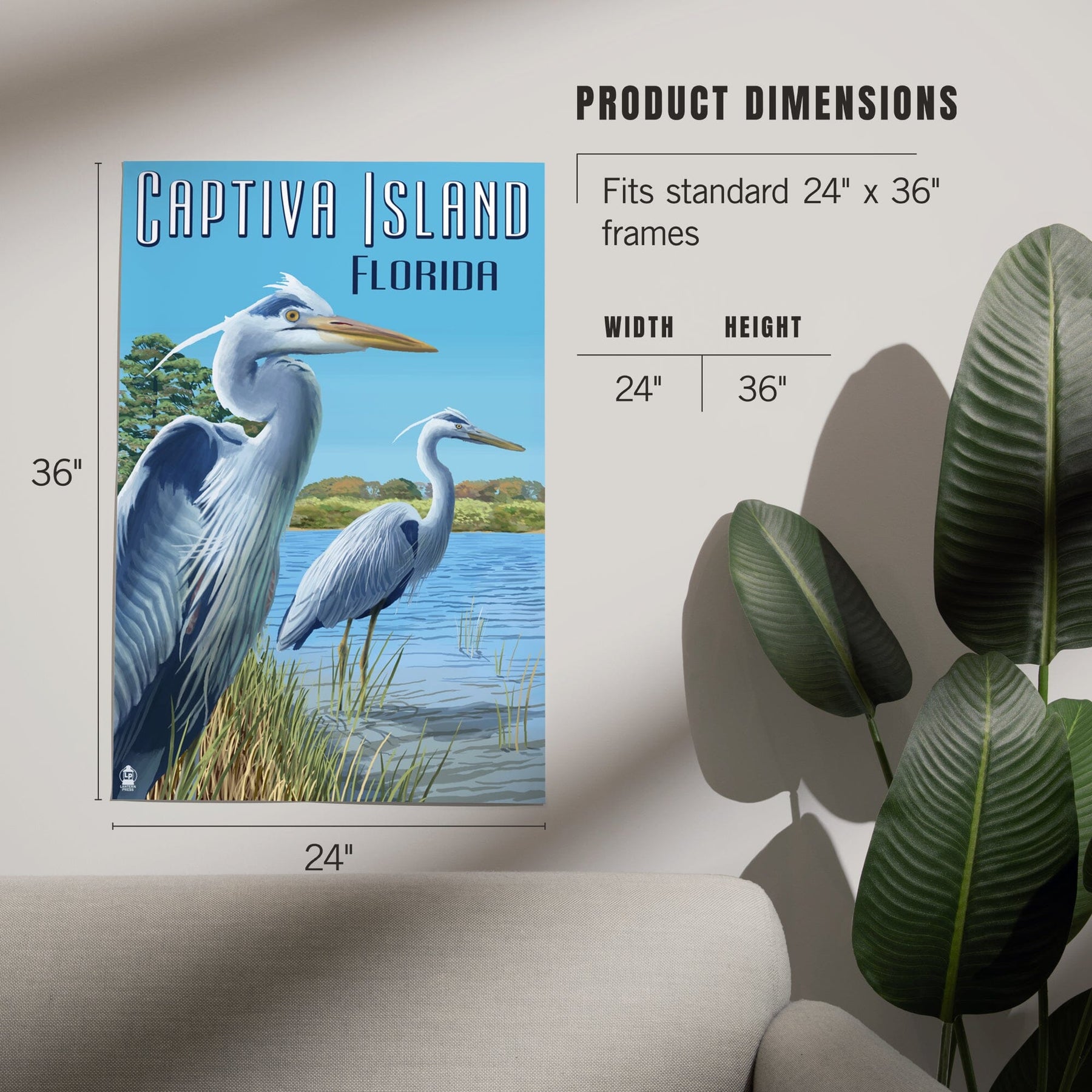 Captiva Island, Florida, Blue Herons in grass, Art & Giclee Prints - Lantern Press