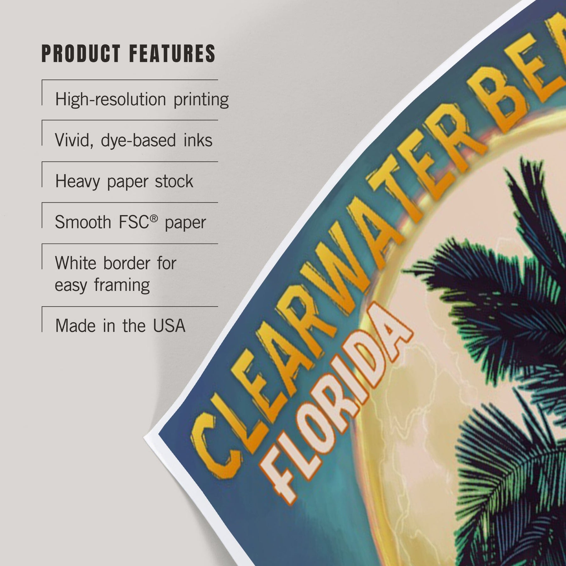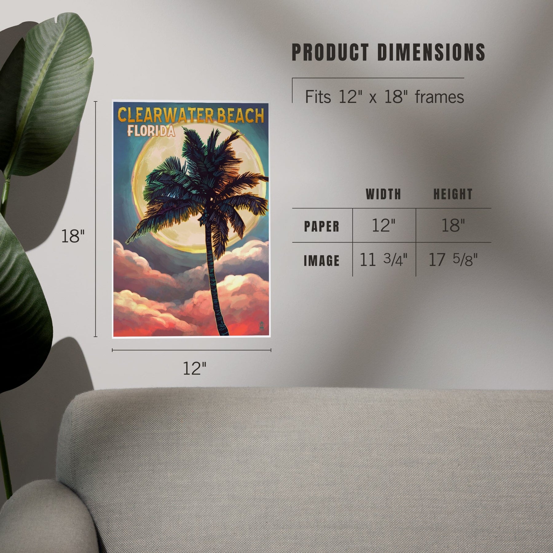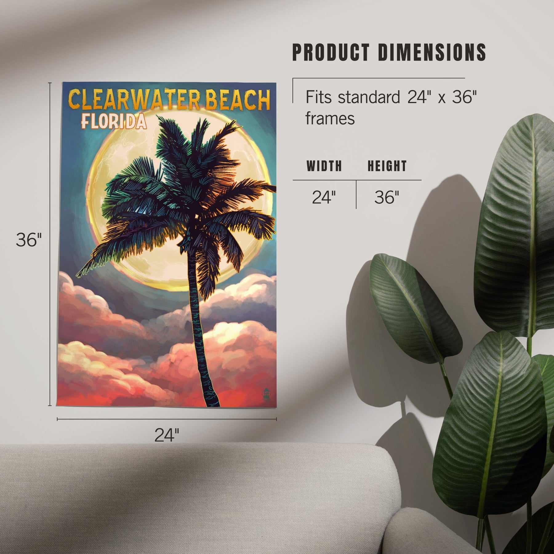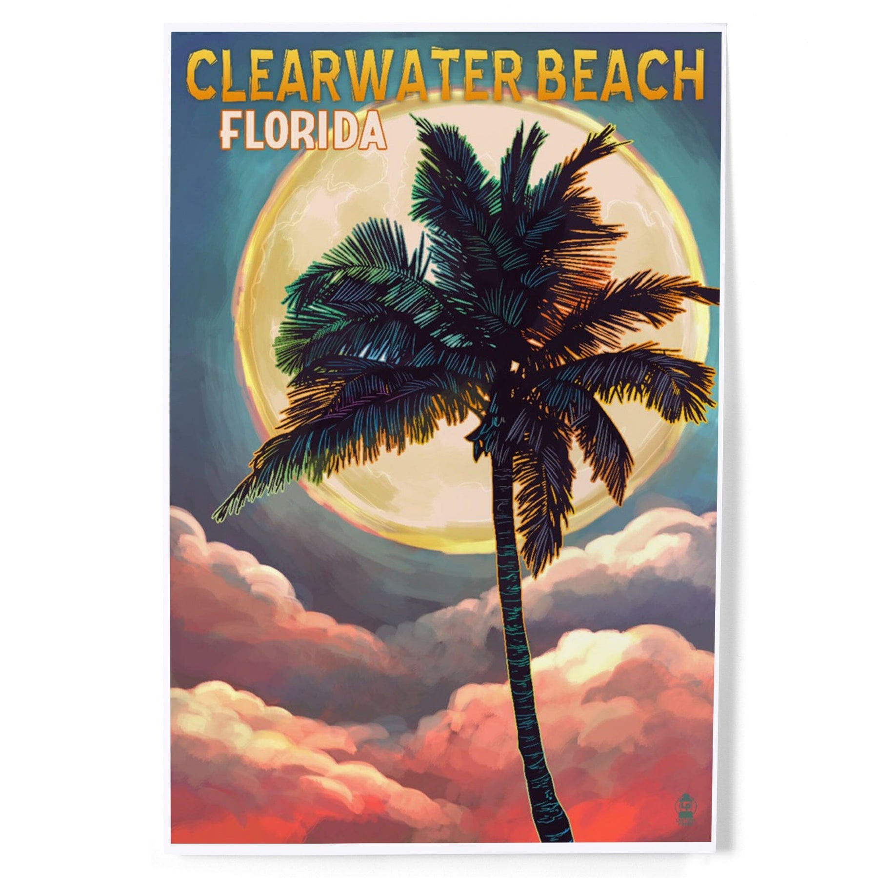 Clearwater Beach, Florida, Palm and Moon, Art & Giclee Prints - Lantern Press