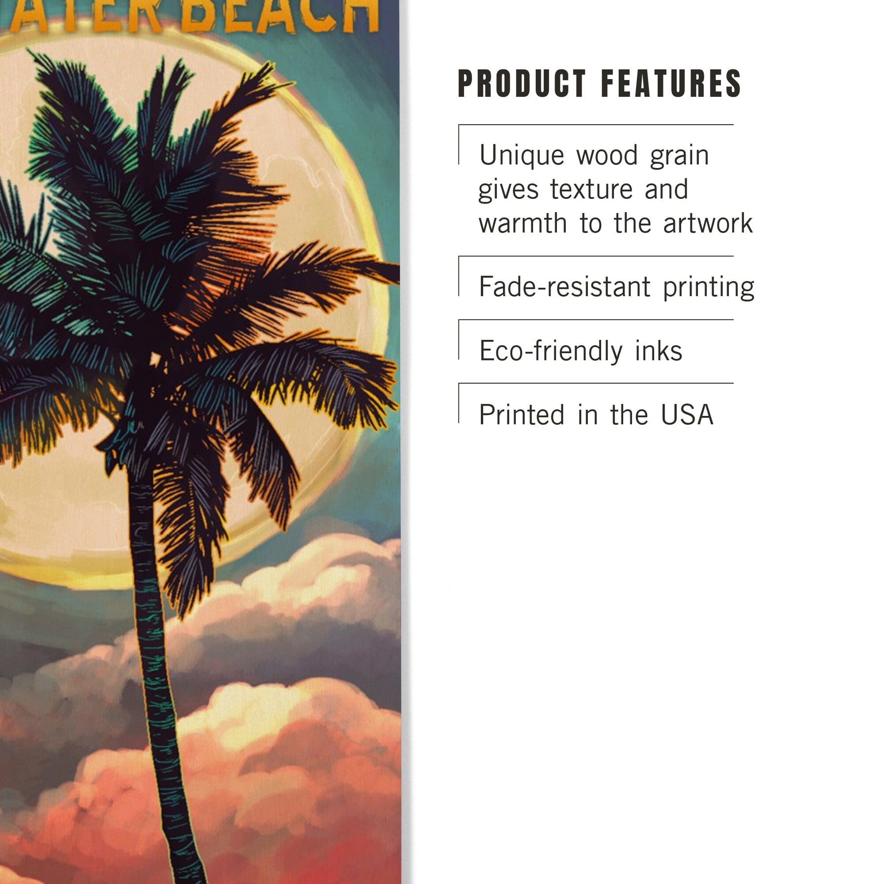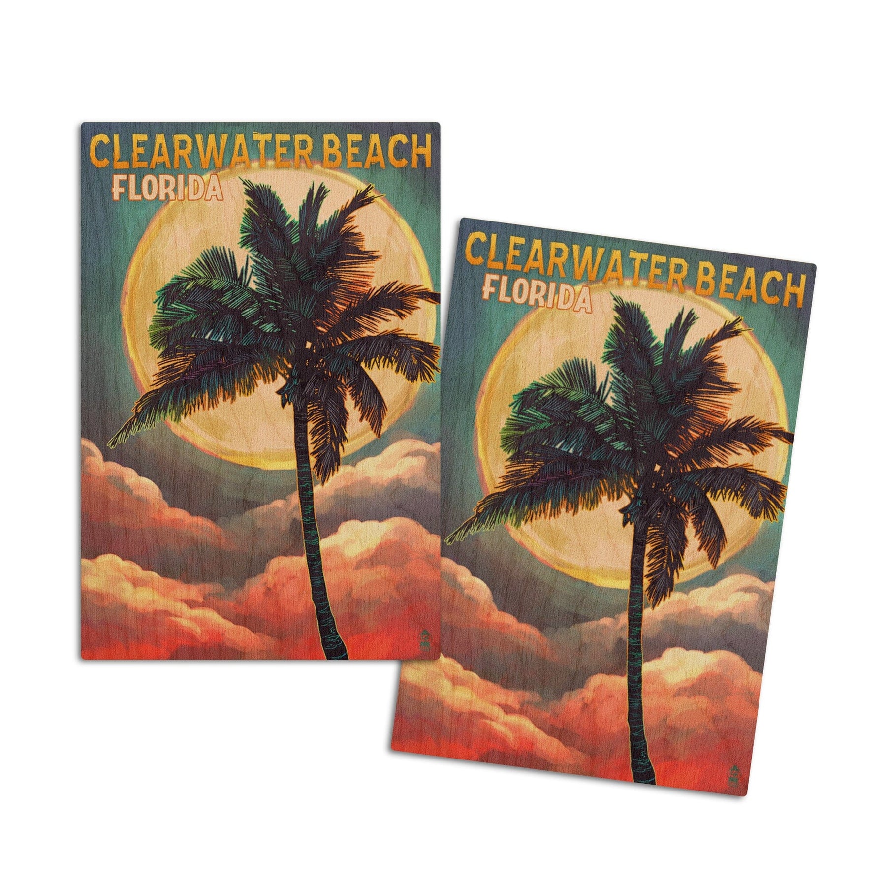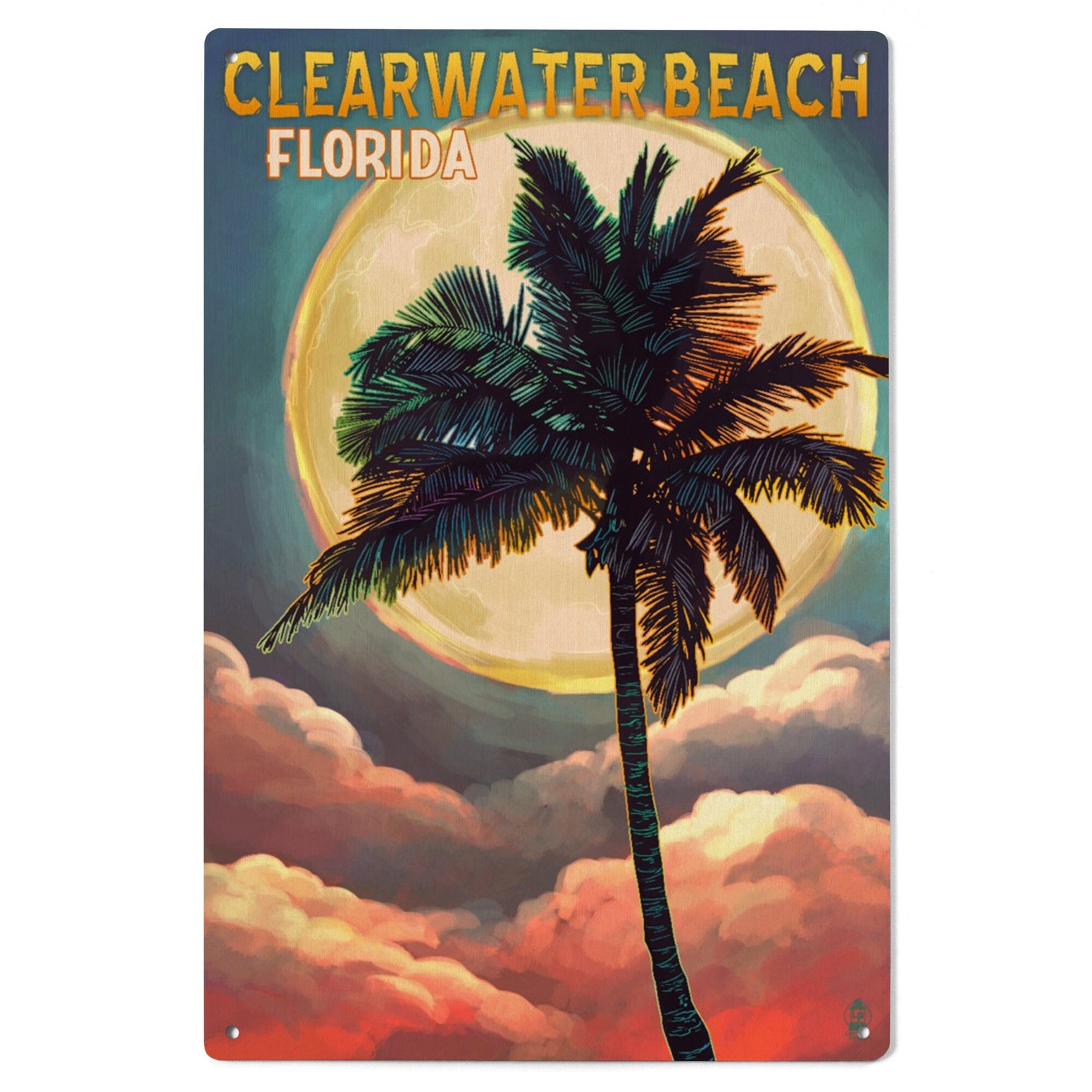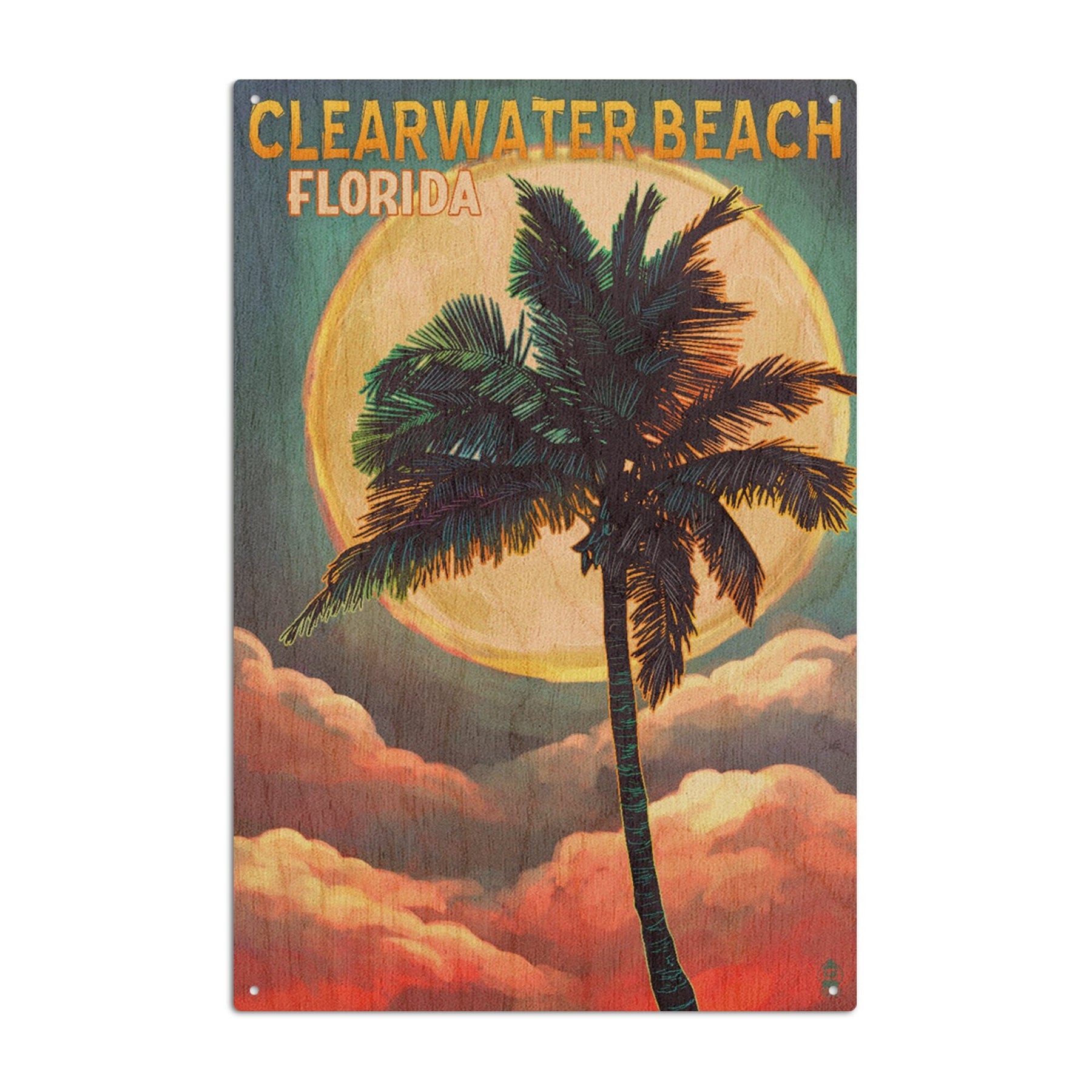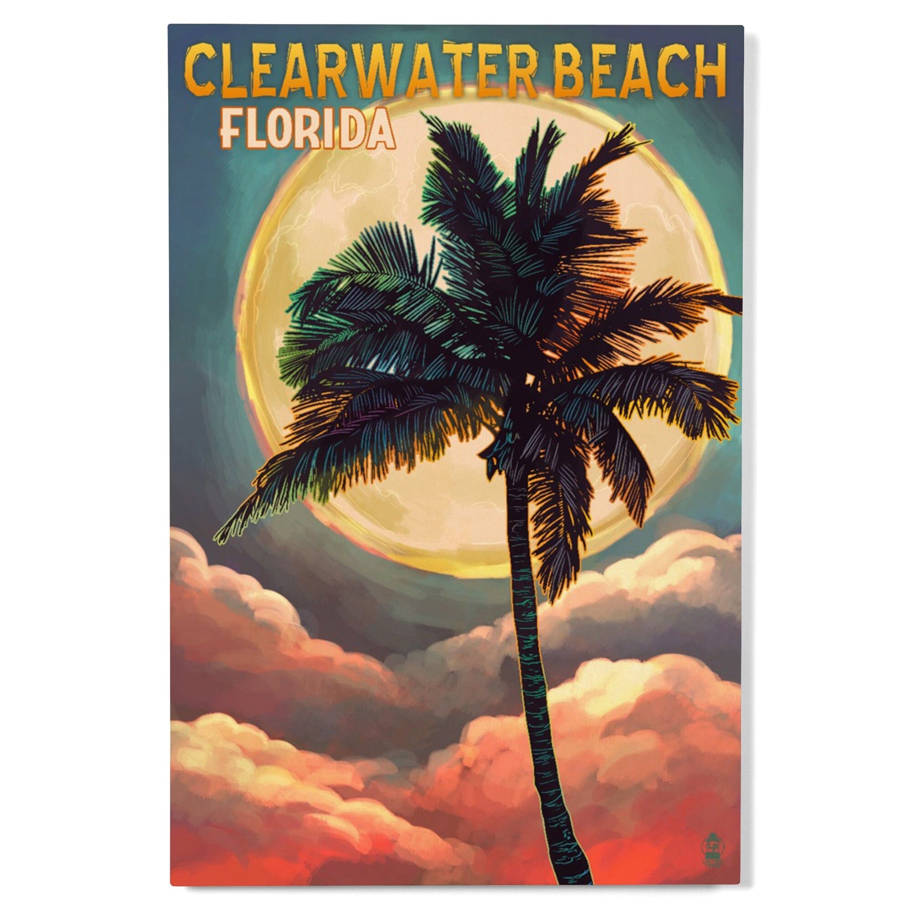 Clearwater Beach, Florida, Palm and Moon, Lantern Press Artwork, Wood Signs and Postcards - Lantern Press
