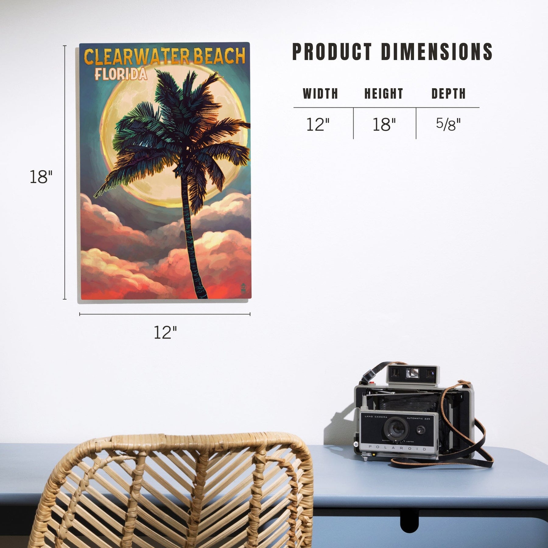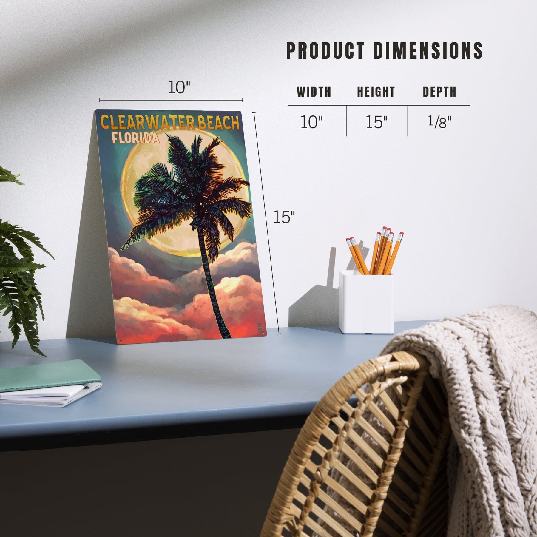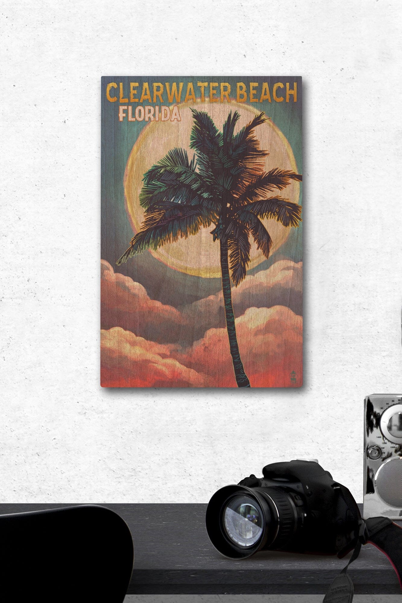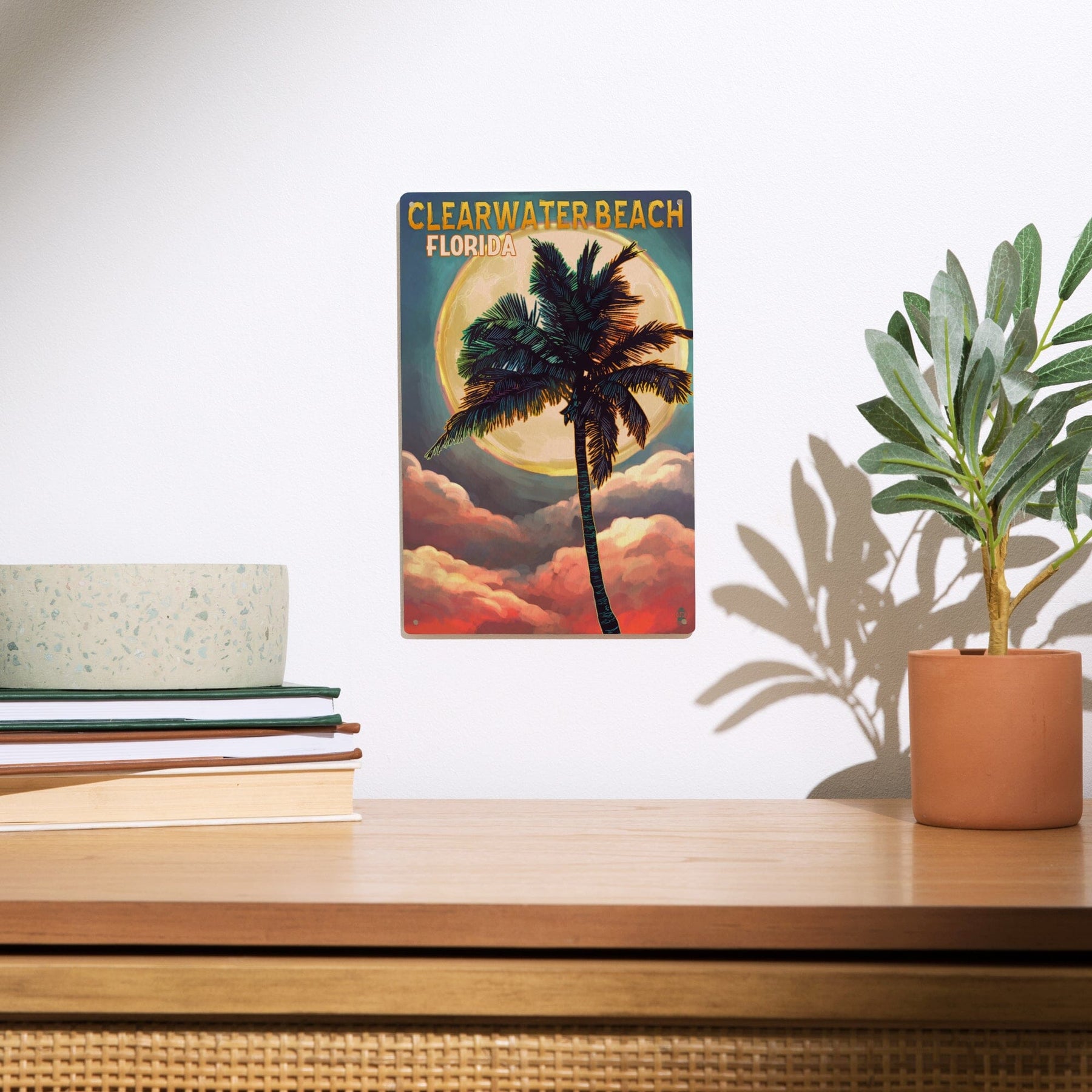 Clearwater Beach, Florida, Palm and Moon, Lantern Press Artwork, Wood Signs and Postcards