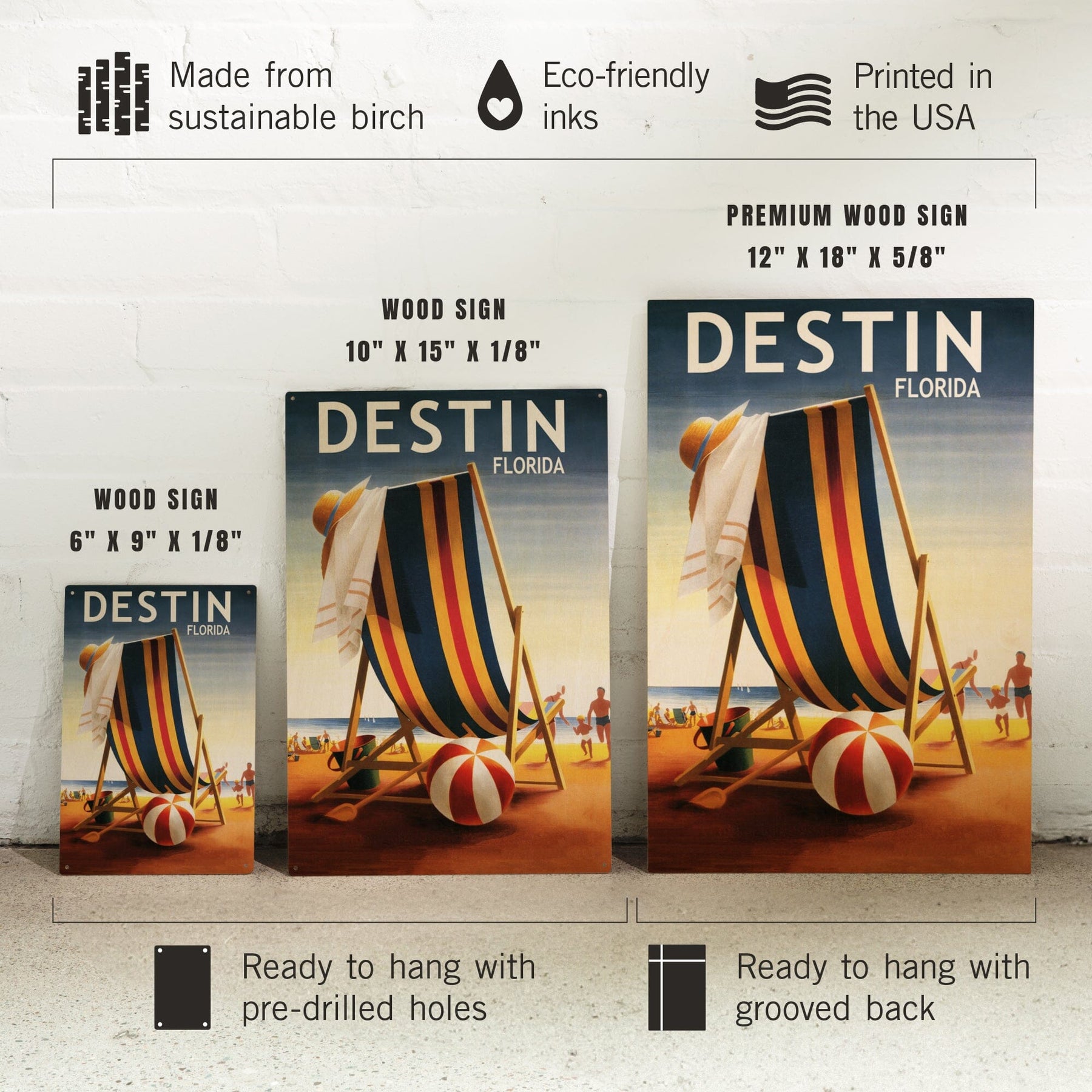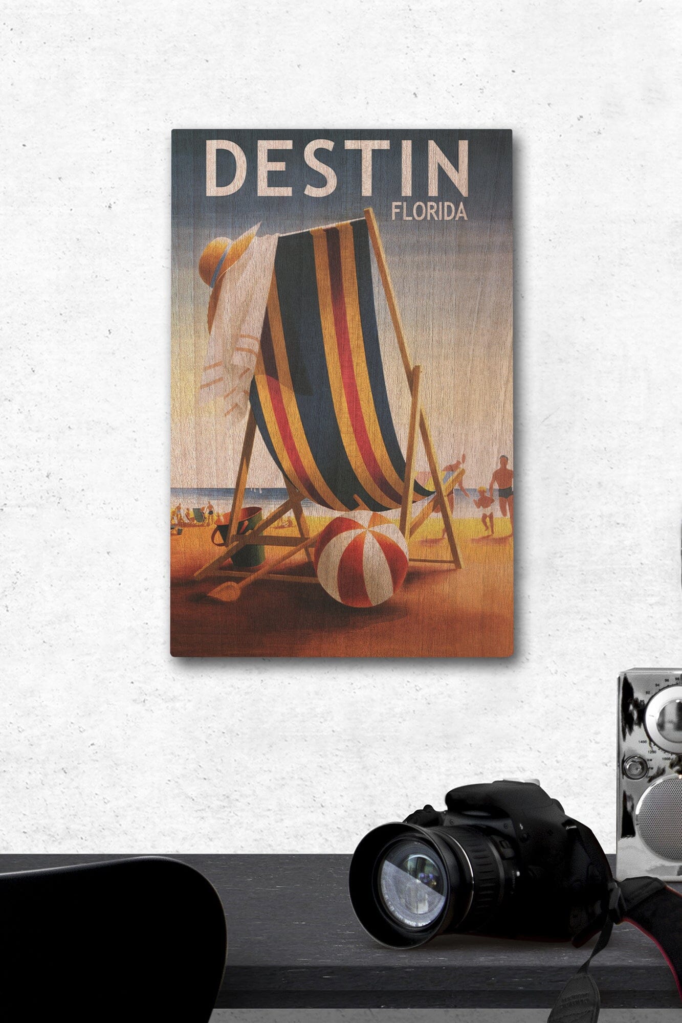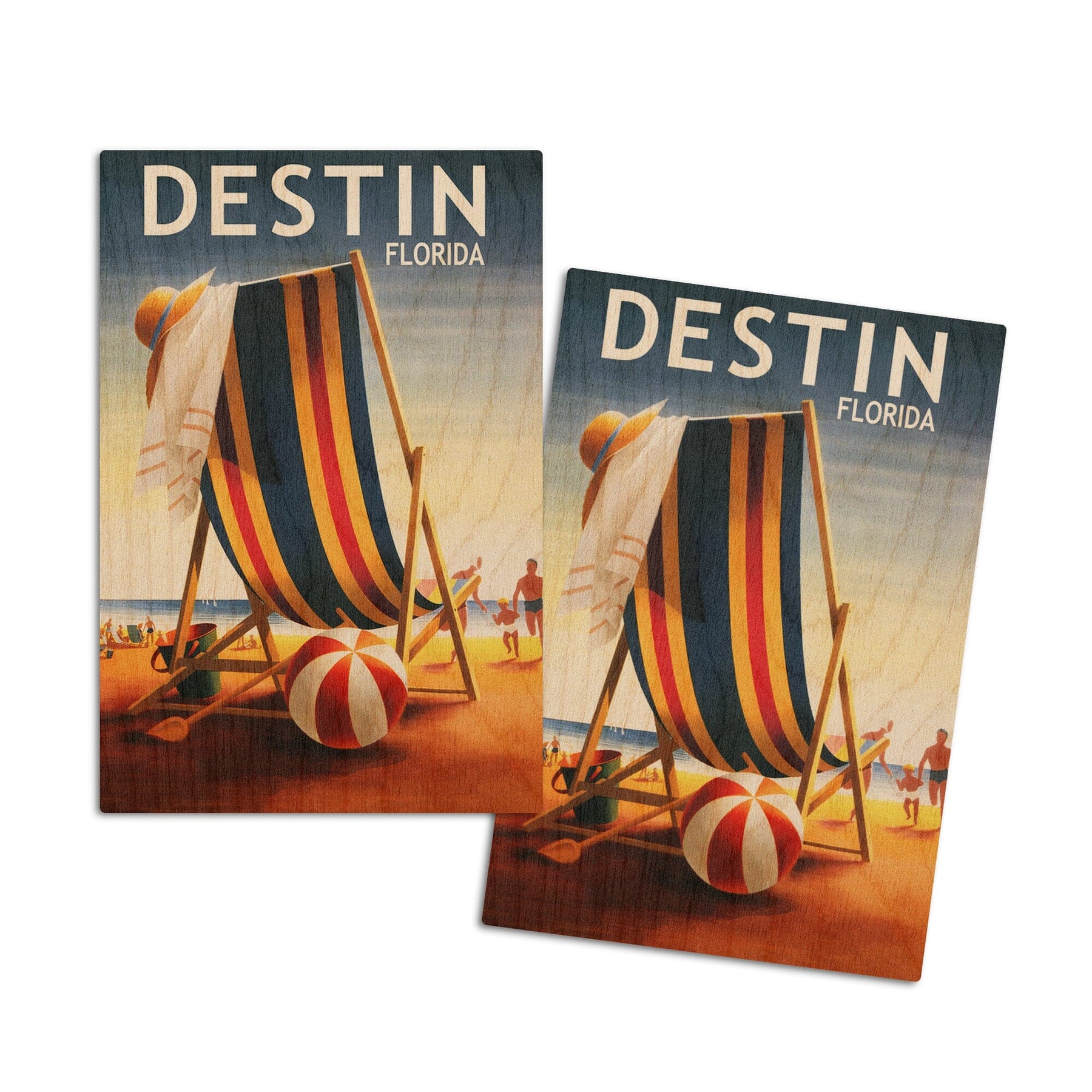 Destin, Florida, Beach Chair & Ball, Lantern Press Artwork, Wood Signs and Postcards