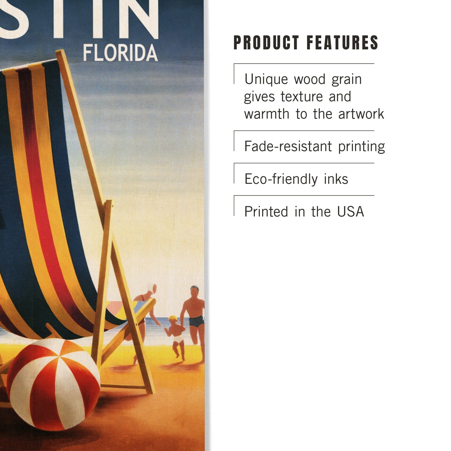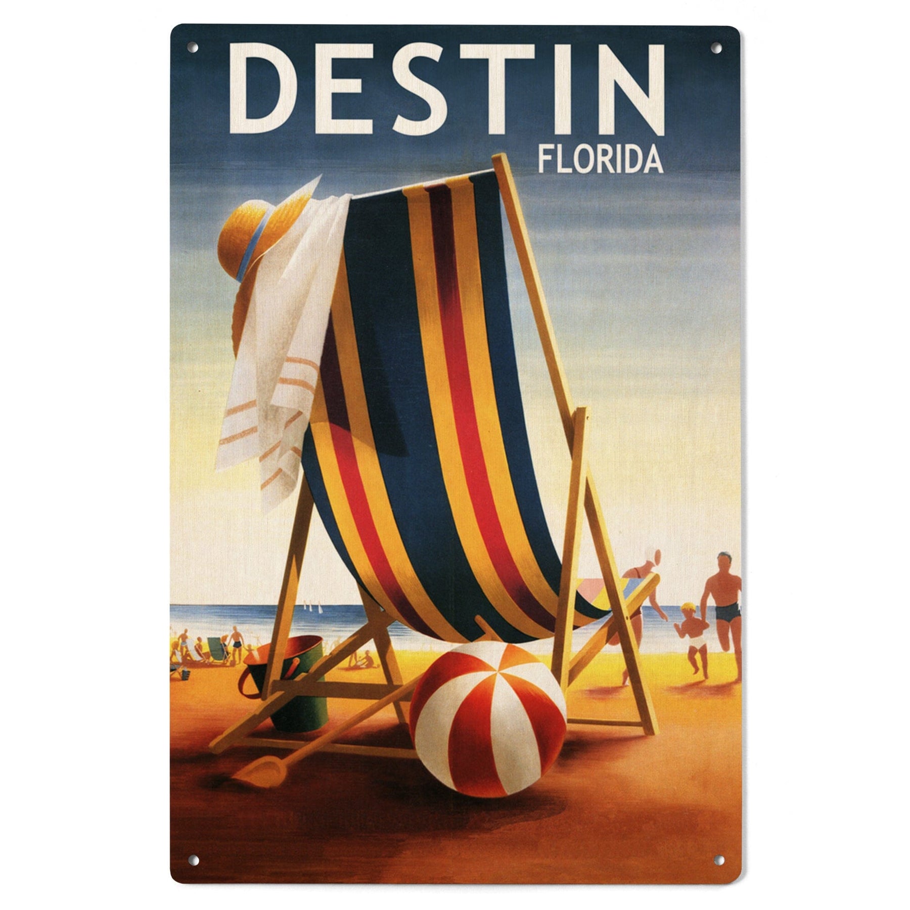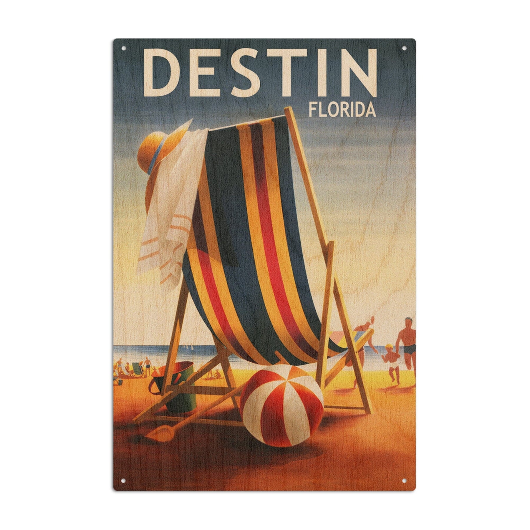 Destin, Florida, Beach Chair & Ball, Lantern Press Artwork, Wood Signs and Postcards