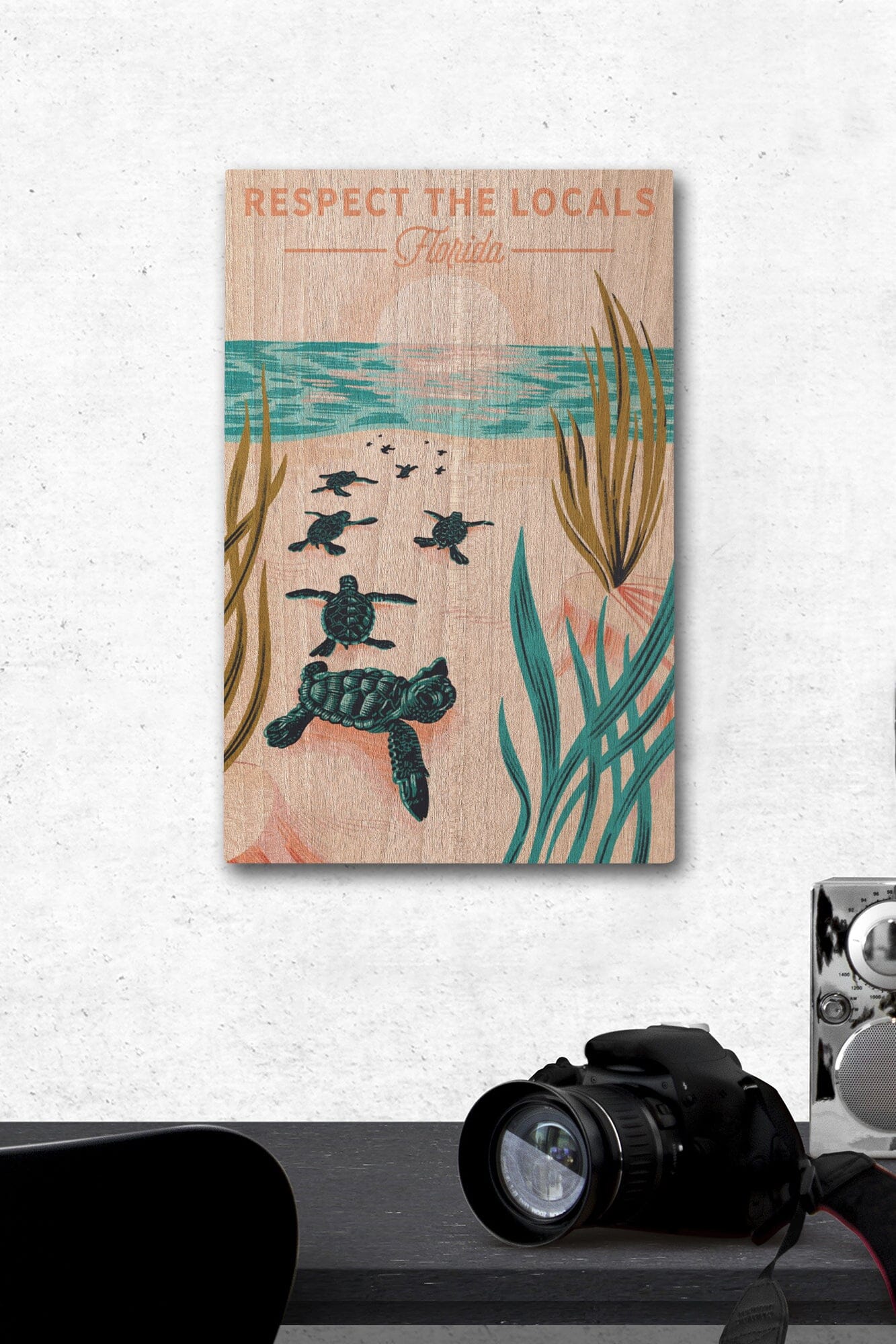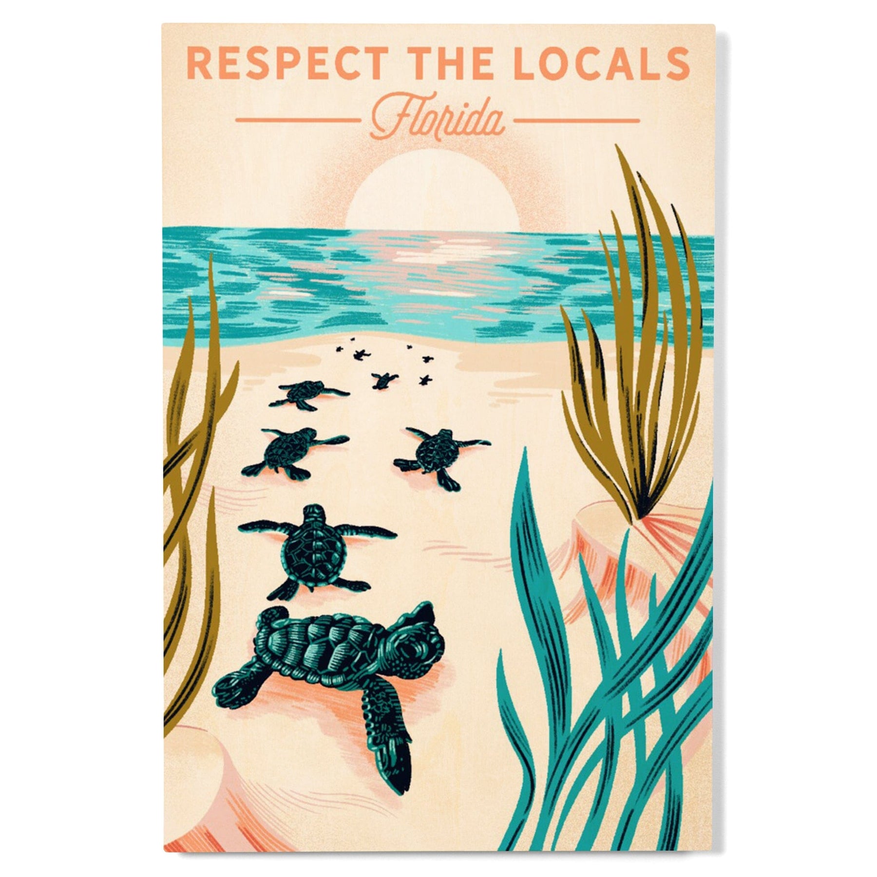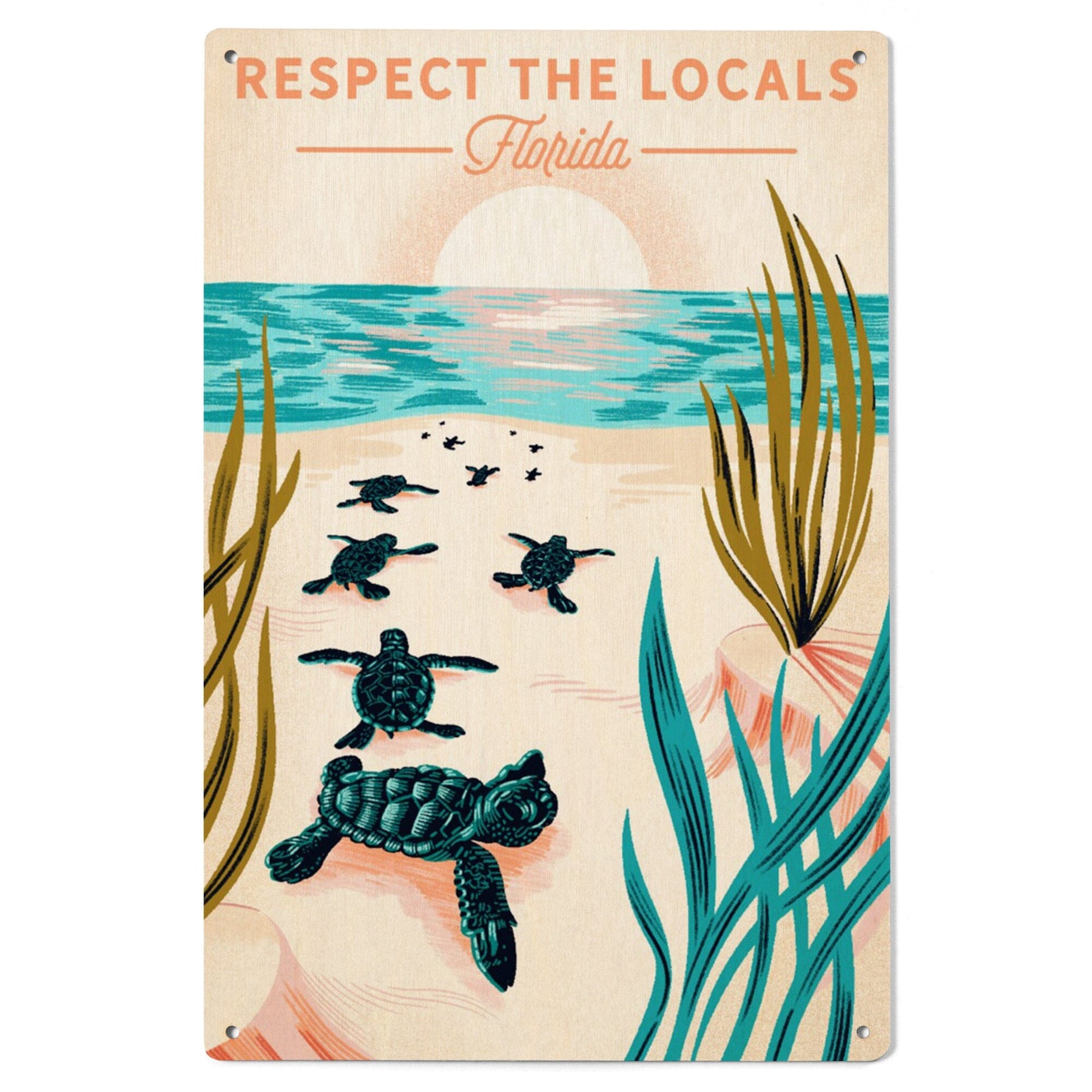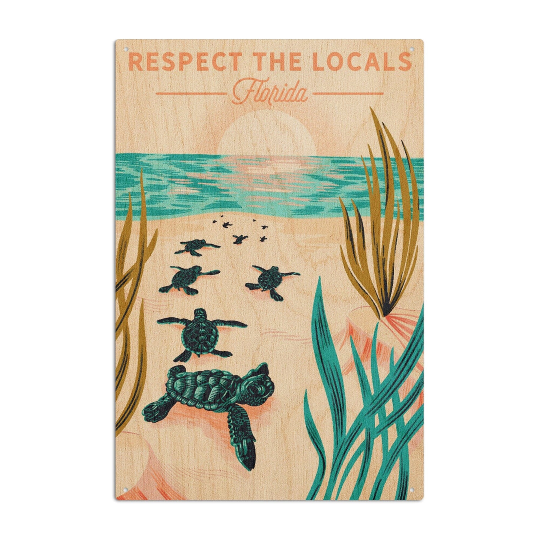 Florida, Courageous Explorer Collection, Turtle, Respect the Locals, Wood Signs and Postcards - Lantern Press