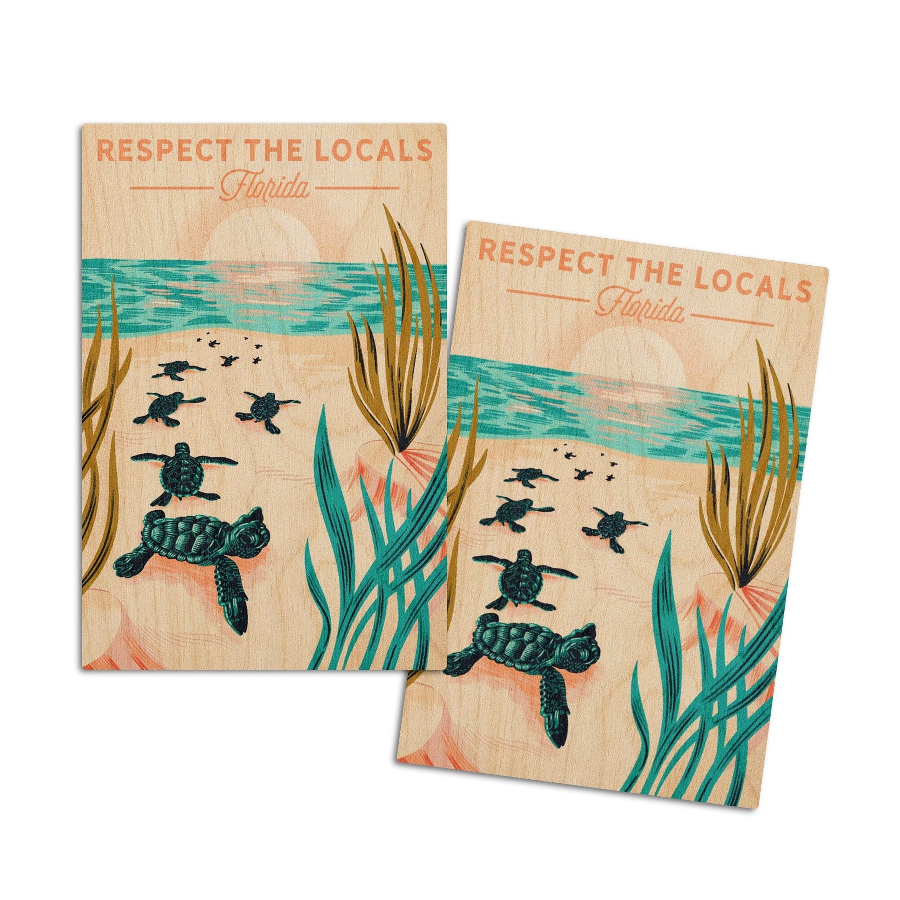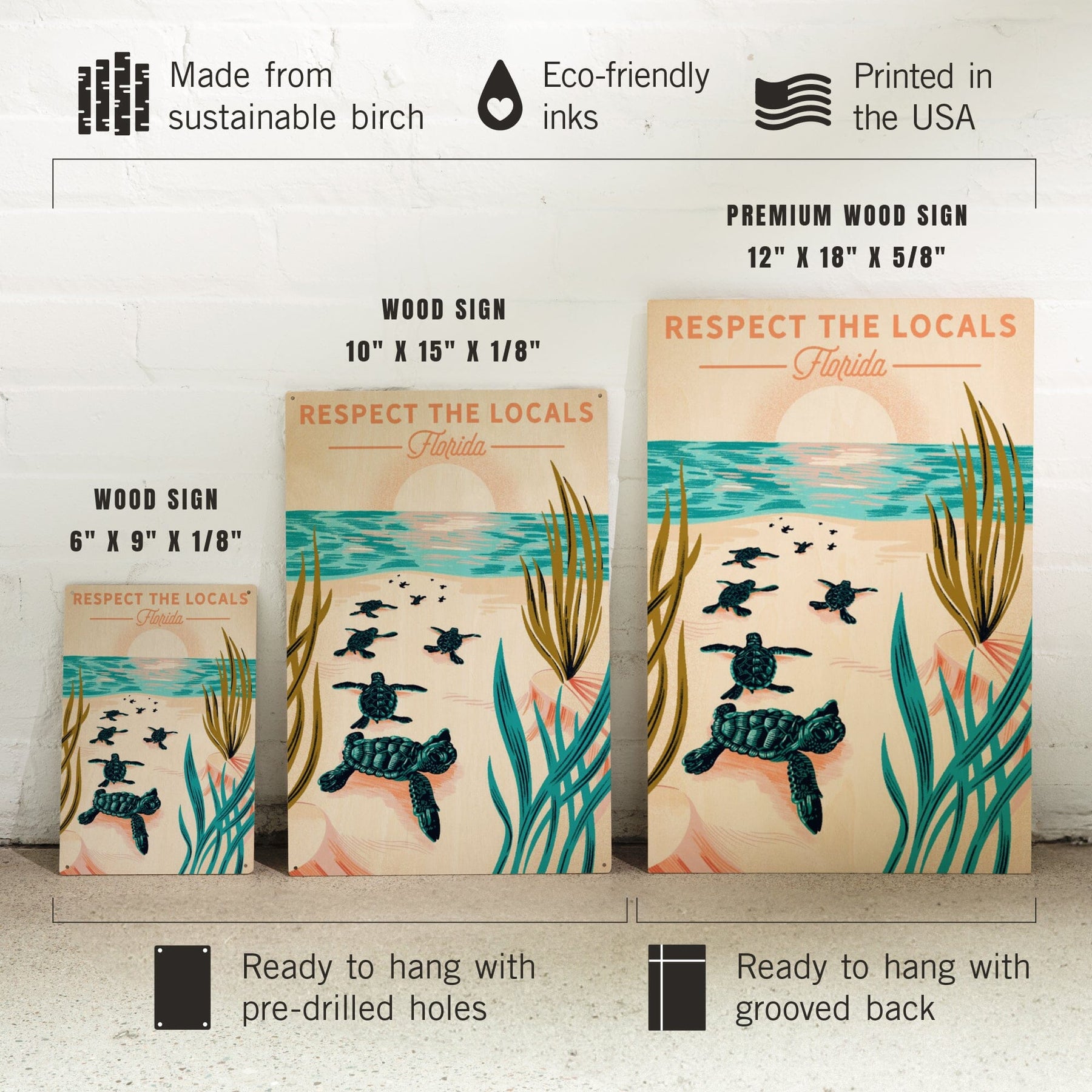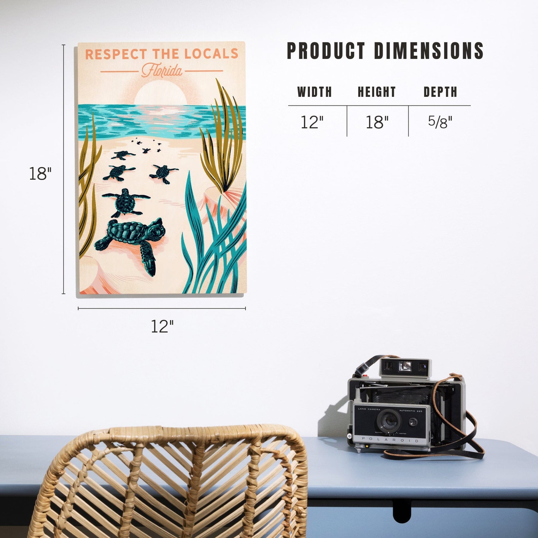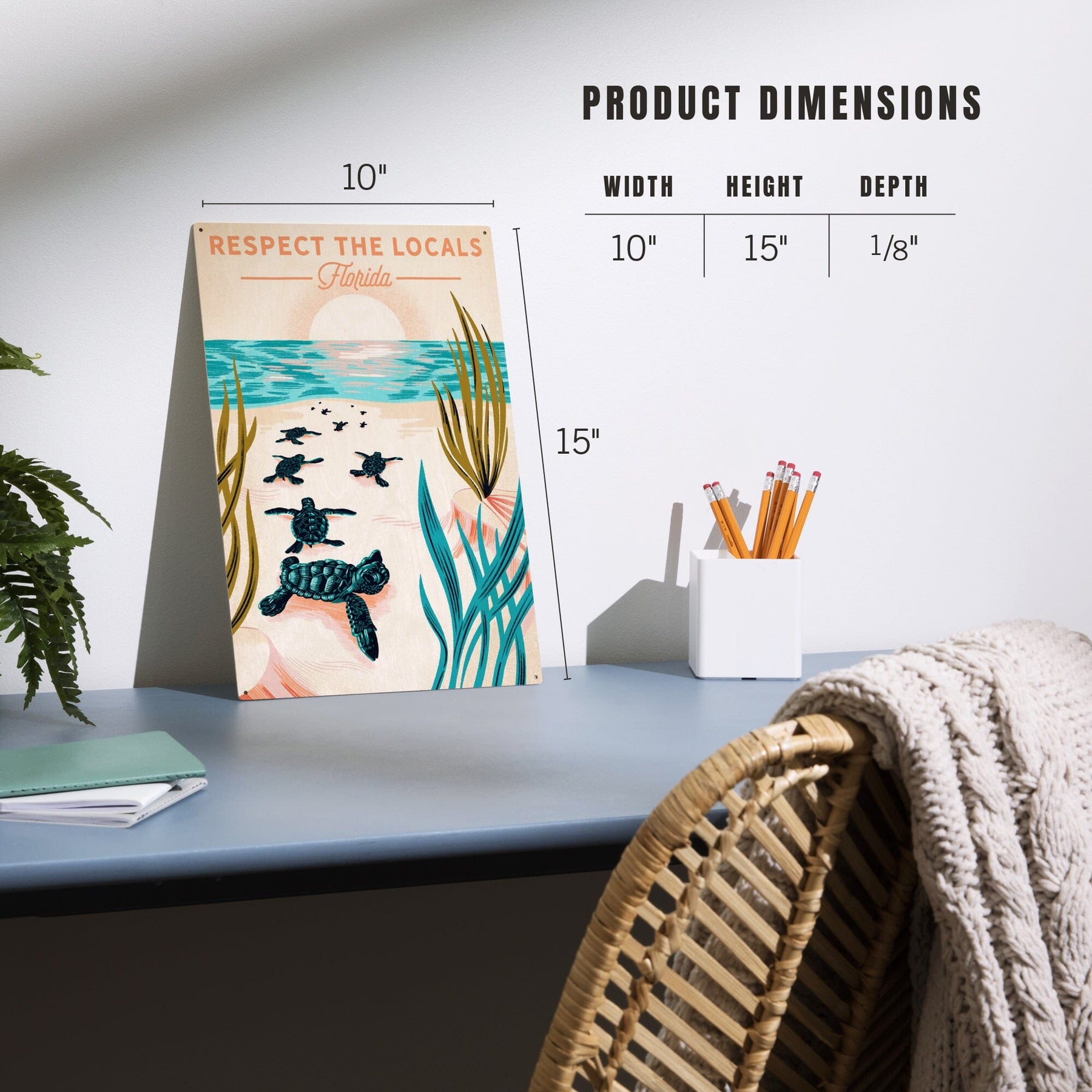 Florida, Courageous Explorer Collection, Turtle, Respect the Locals, Wood Signs and Postcards - Lantern Press