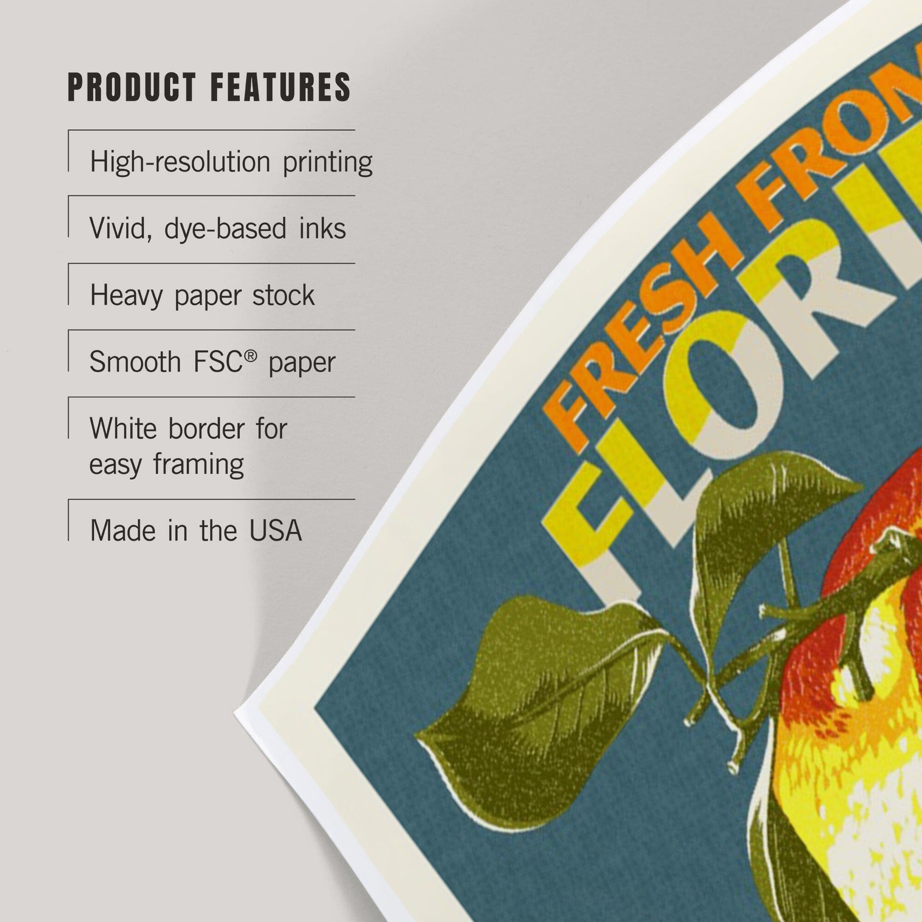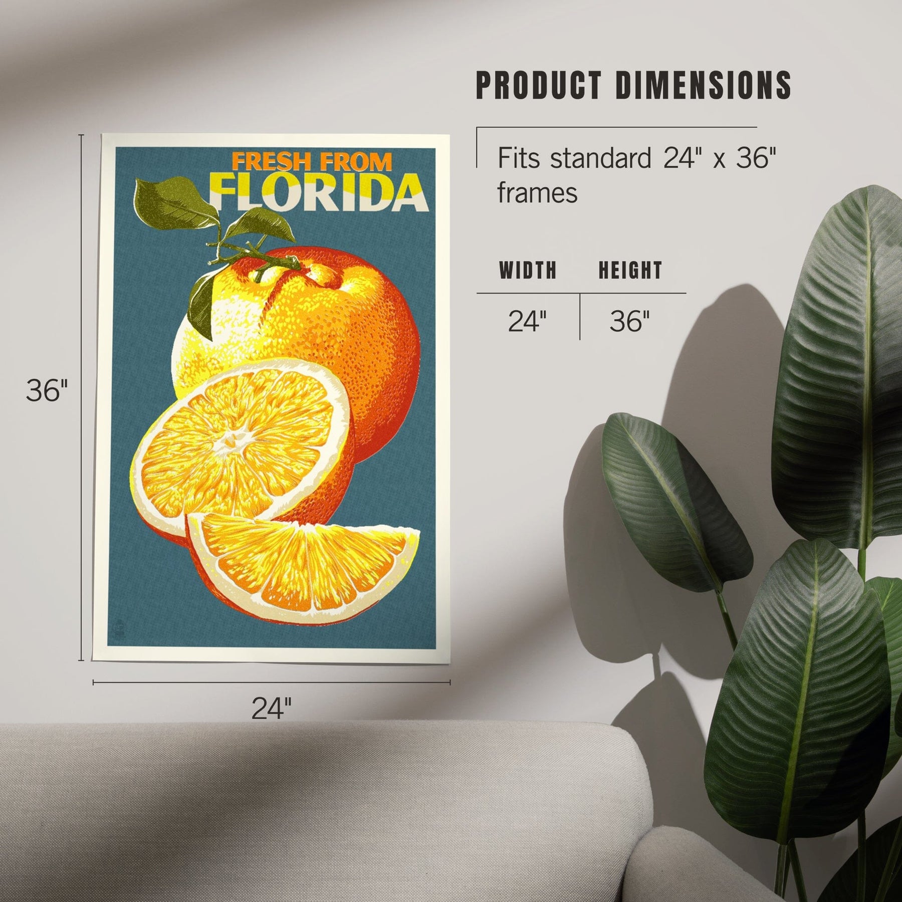 Florida, Fresh Oranges, Letterpress, Art & Giclee Prints - Lantern Press