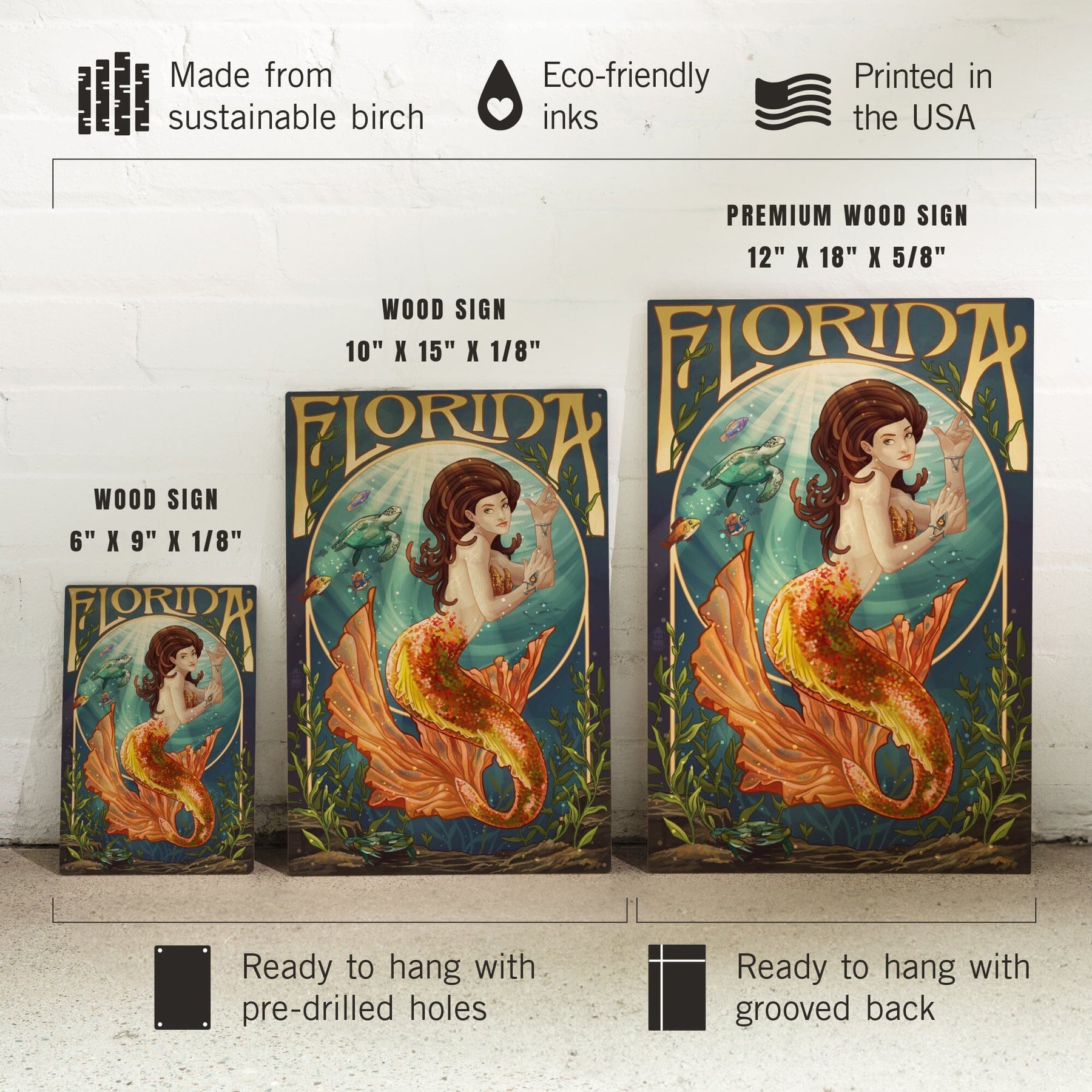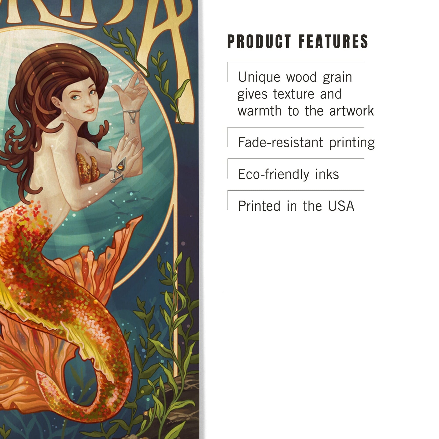 Florida, Mermaid, Lantern Press Artwork, Wood Signs and Postcards