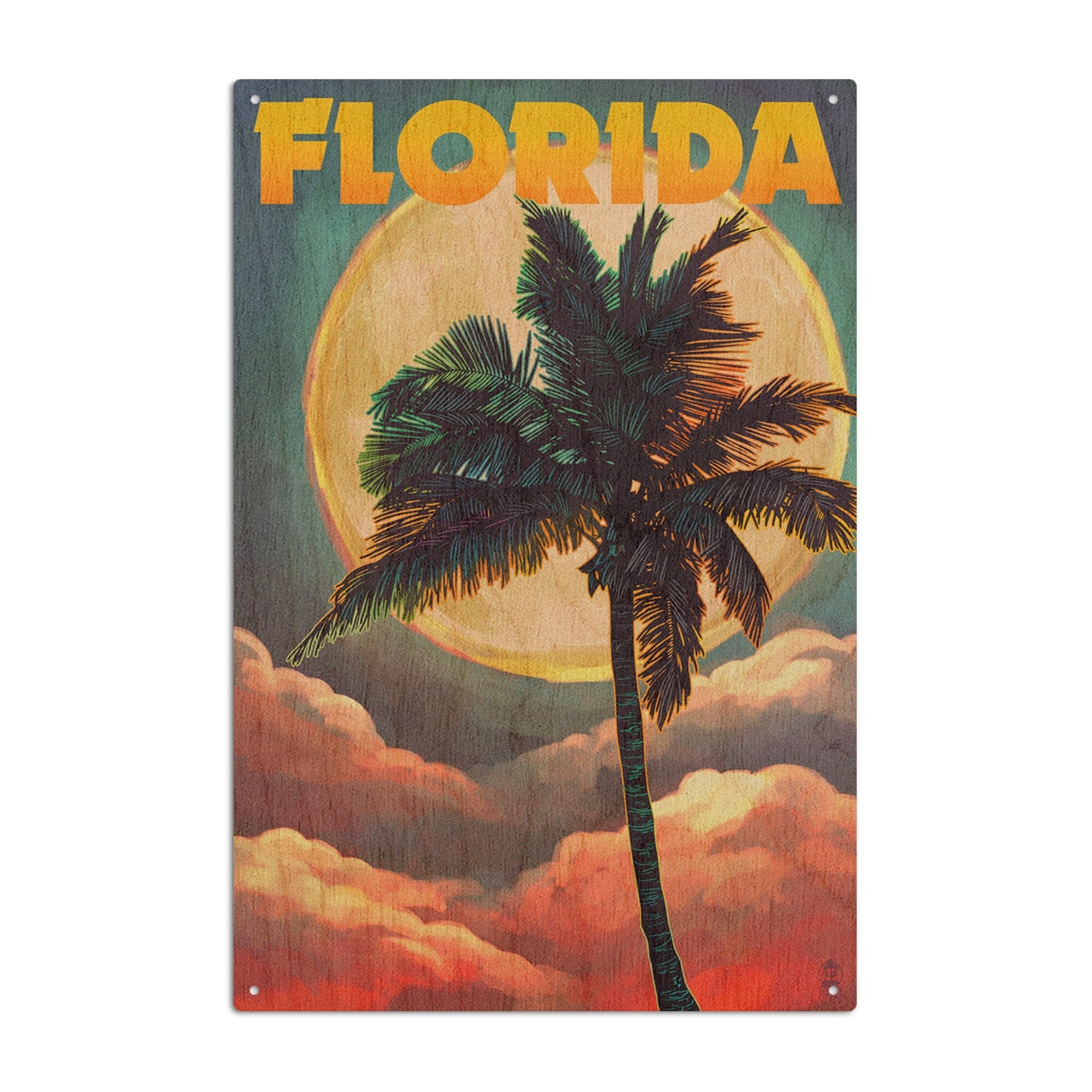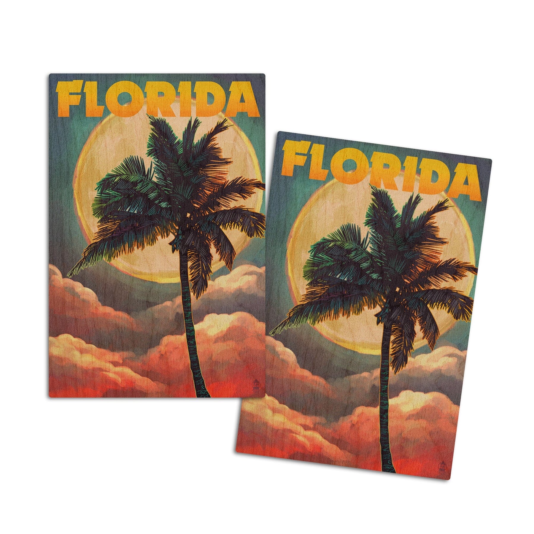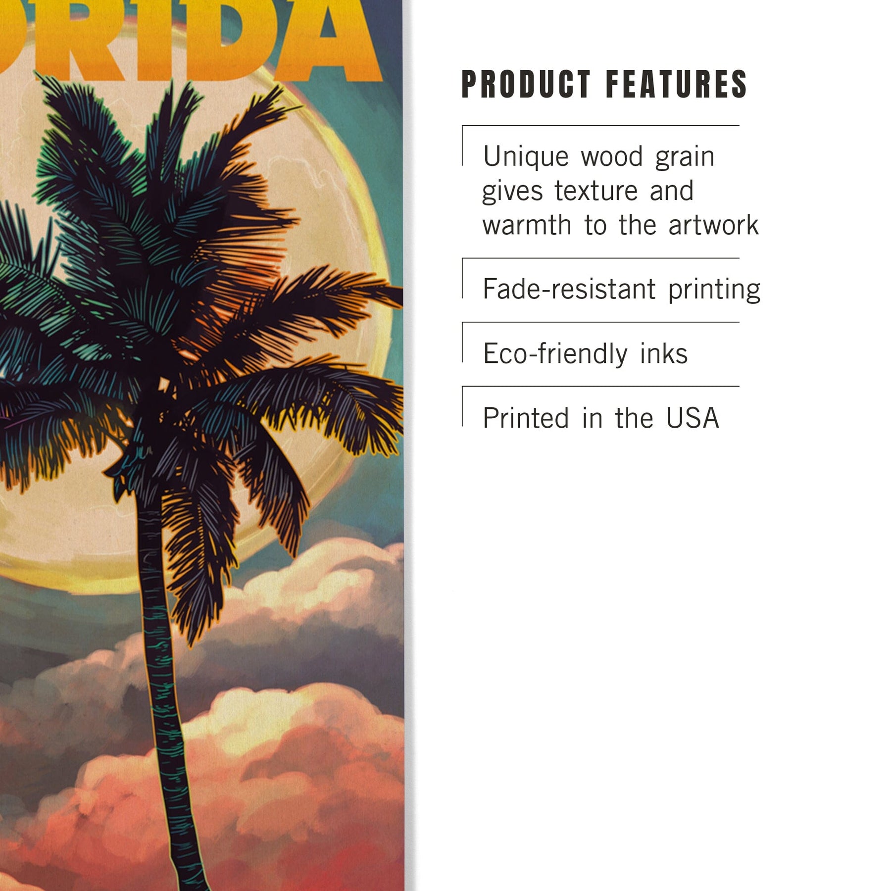 Florida, Sunset and Palm Tree, Lantern Press Artwork, Wood Signs and Postcards - Lantern Press
