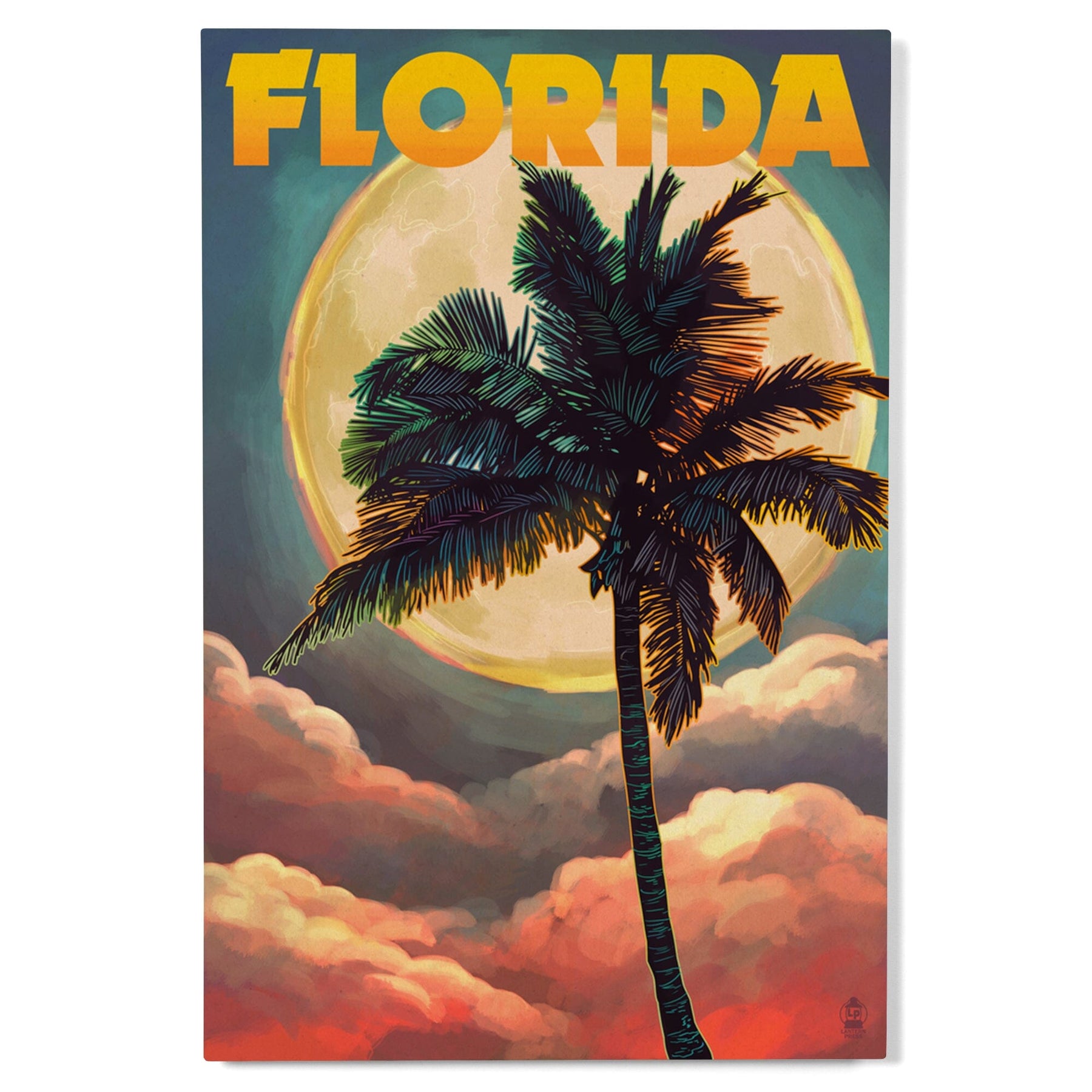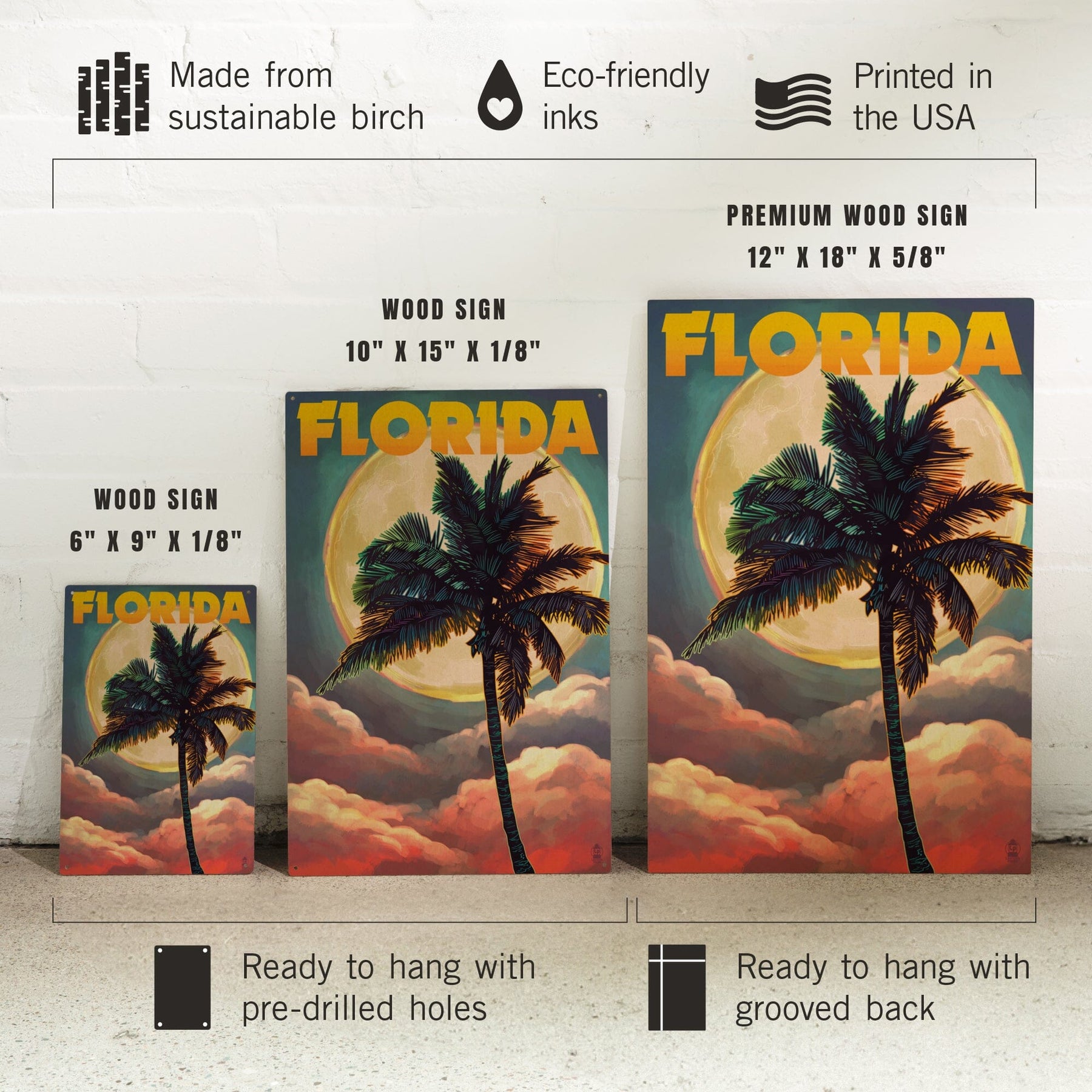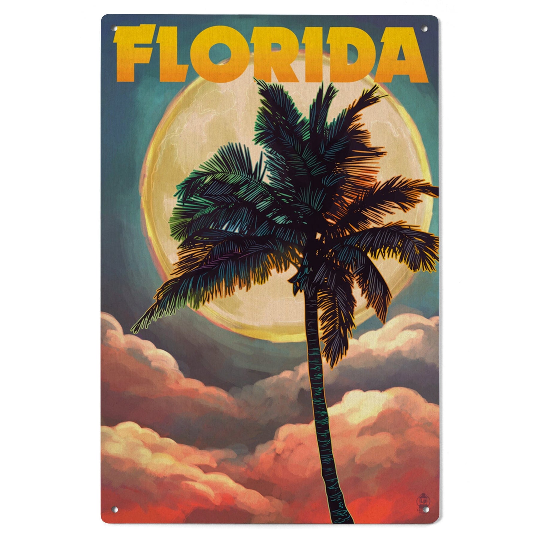 Florida, Sunset and Palm Tree, Lantern Press Artwork, Wood Signs and Postcards - Lantern Press
