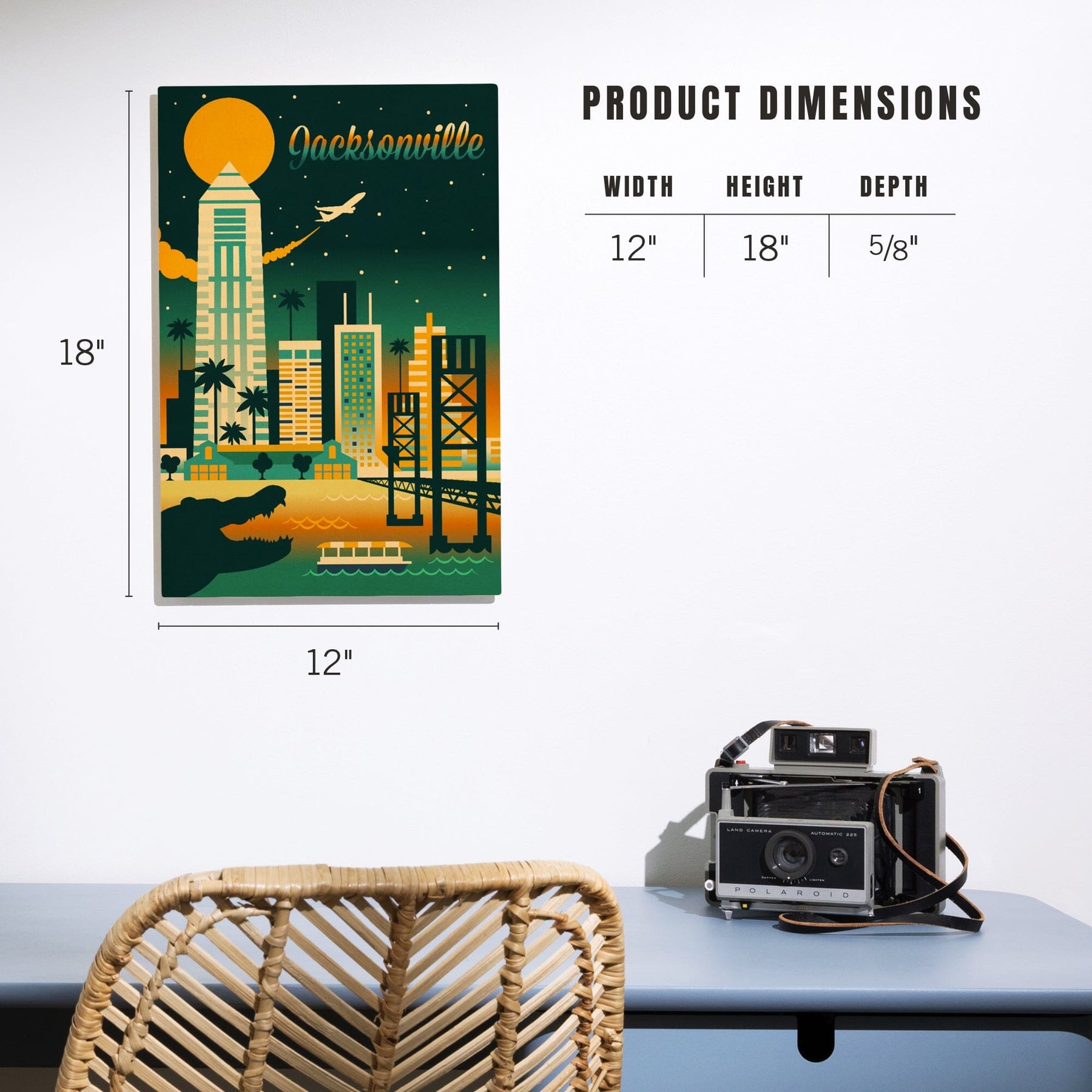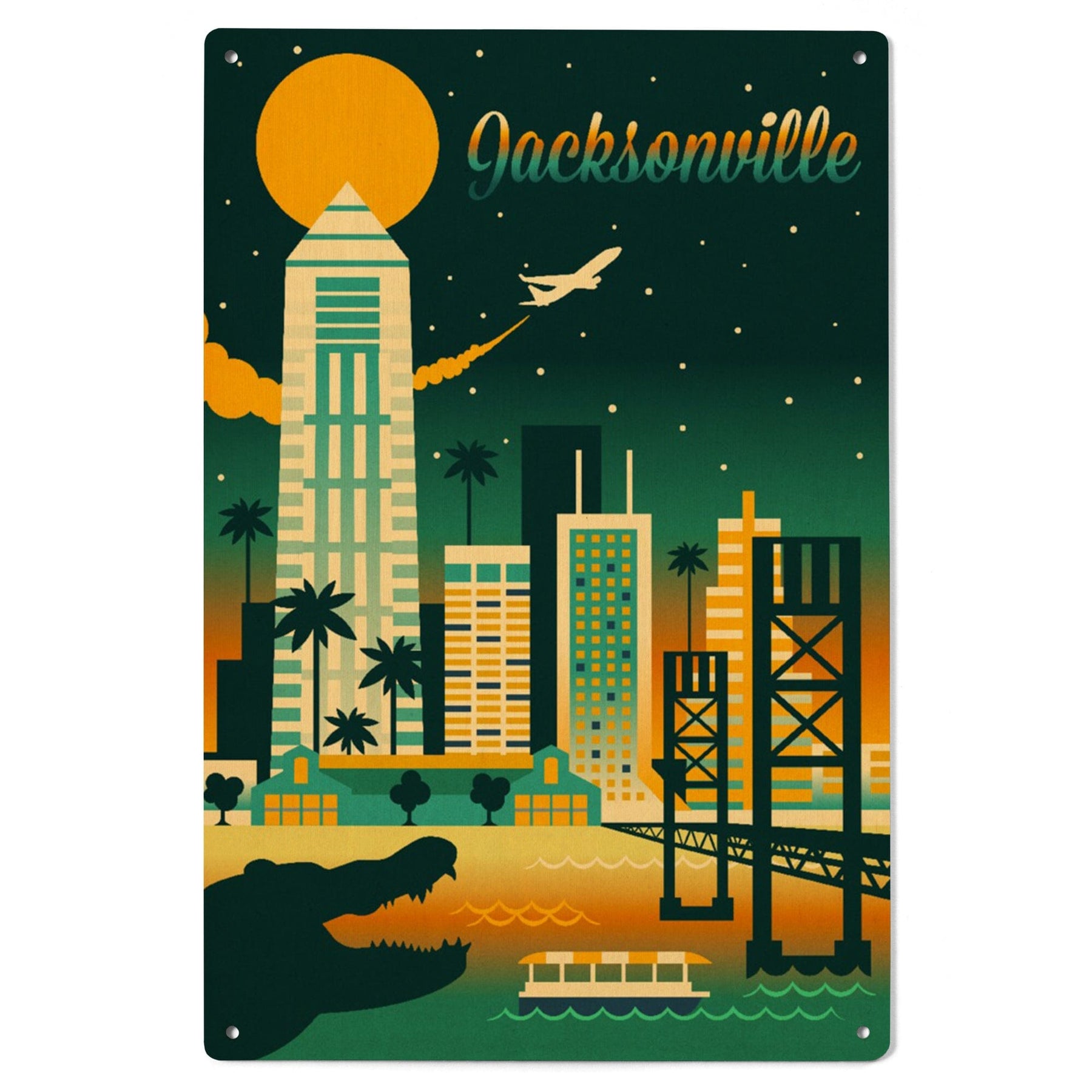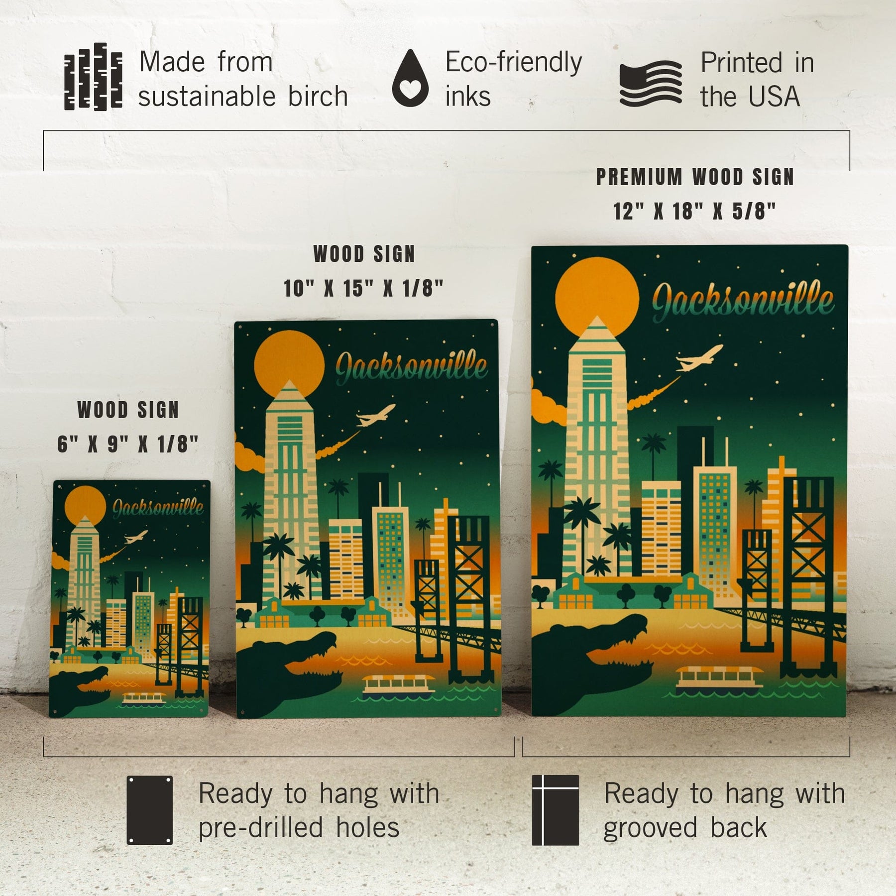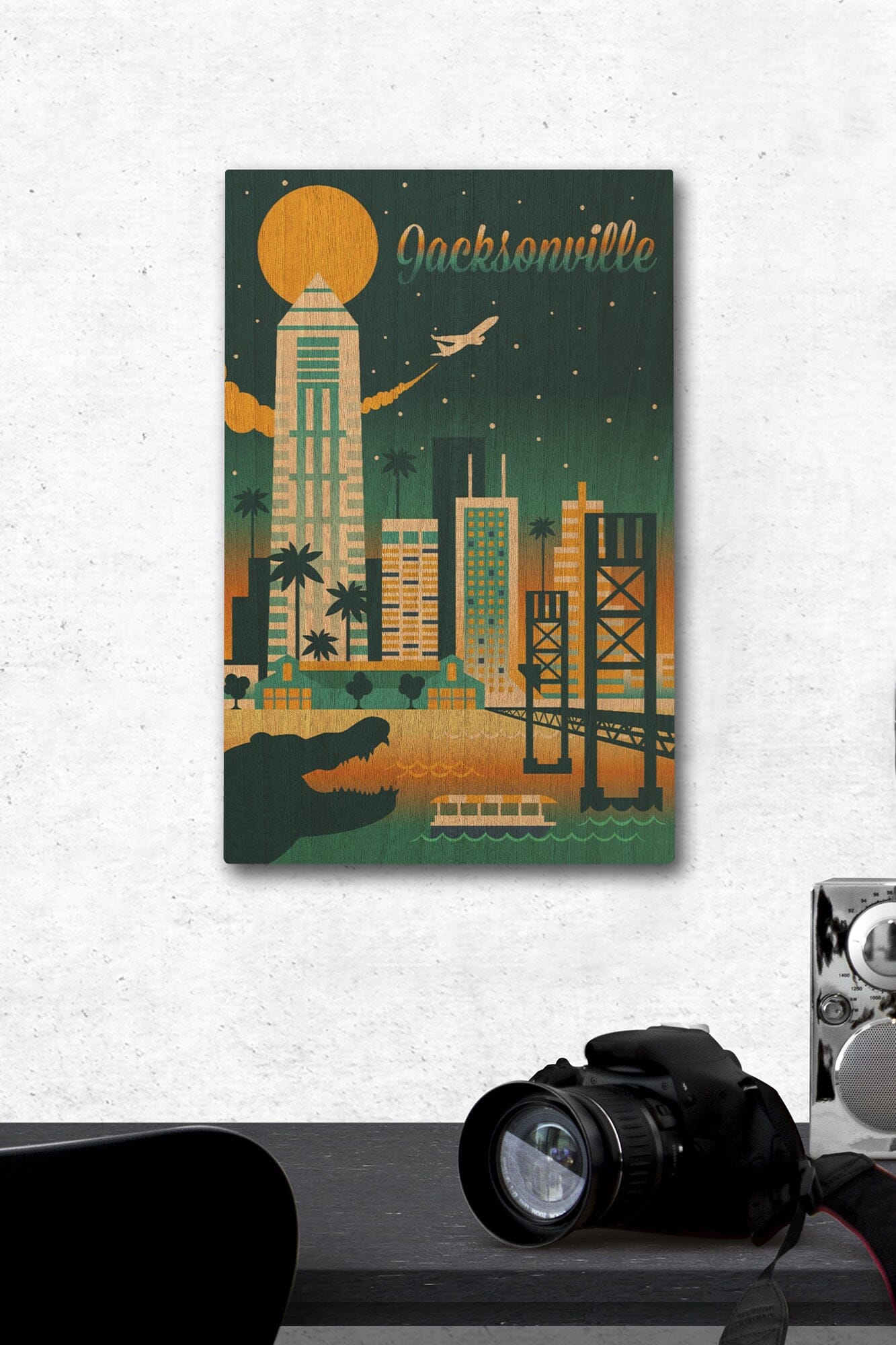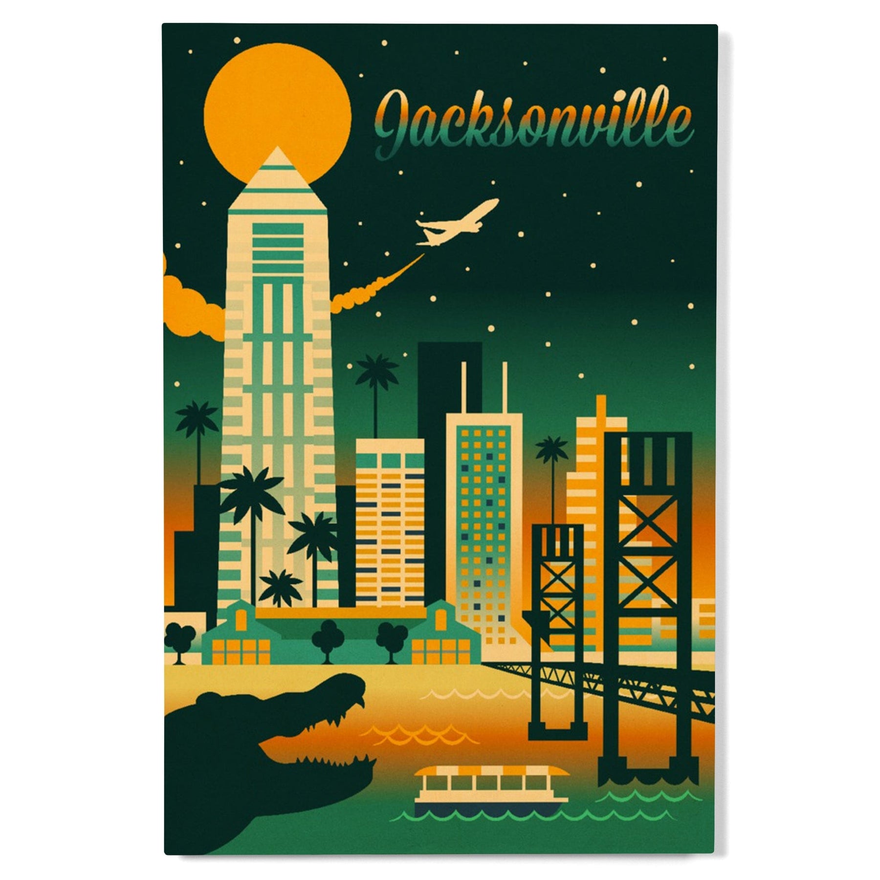 Jacksonville, Florida, Retro Skyline Chromatic Series, Lantern Press Artwork, Wood Signs and Postcards