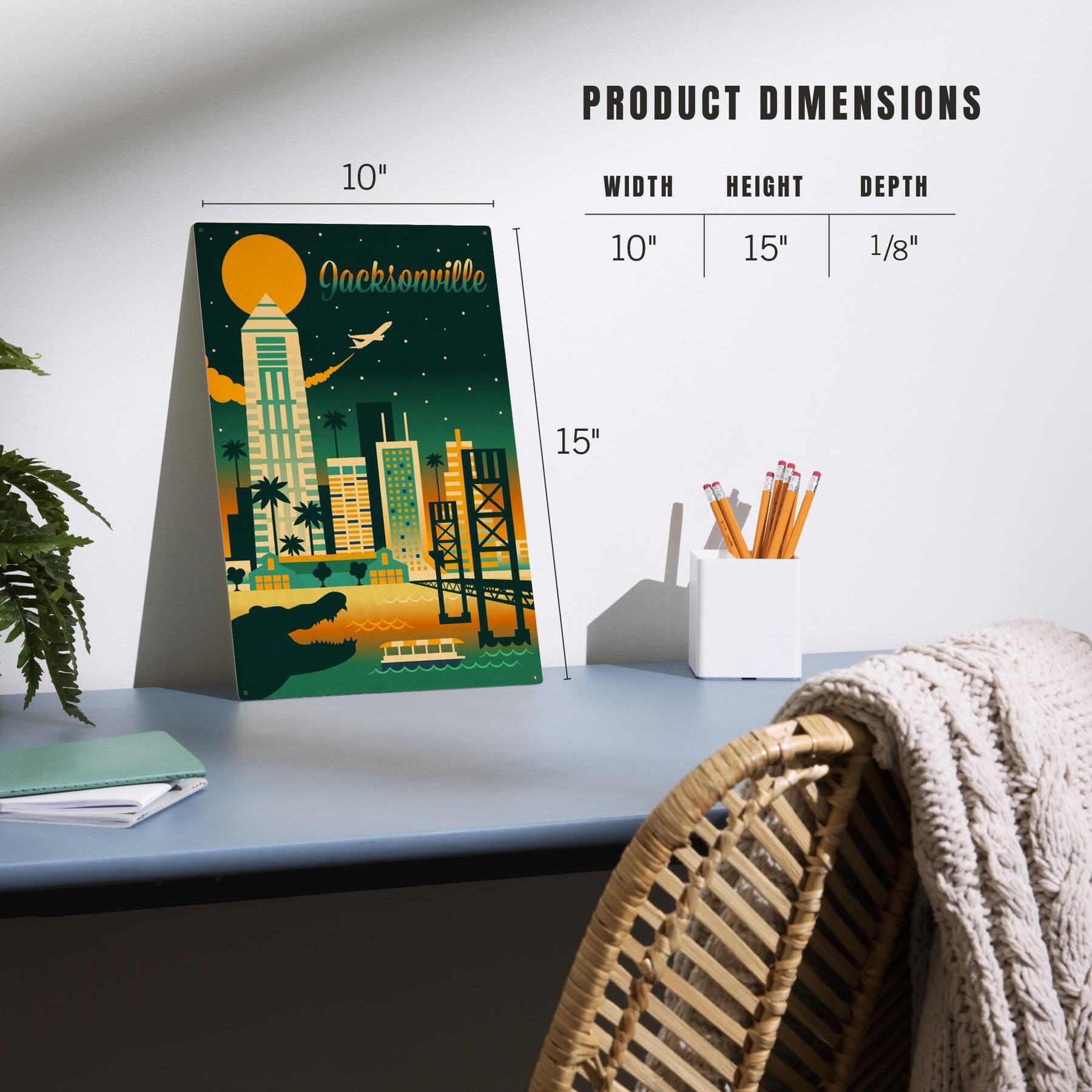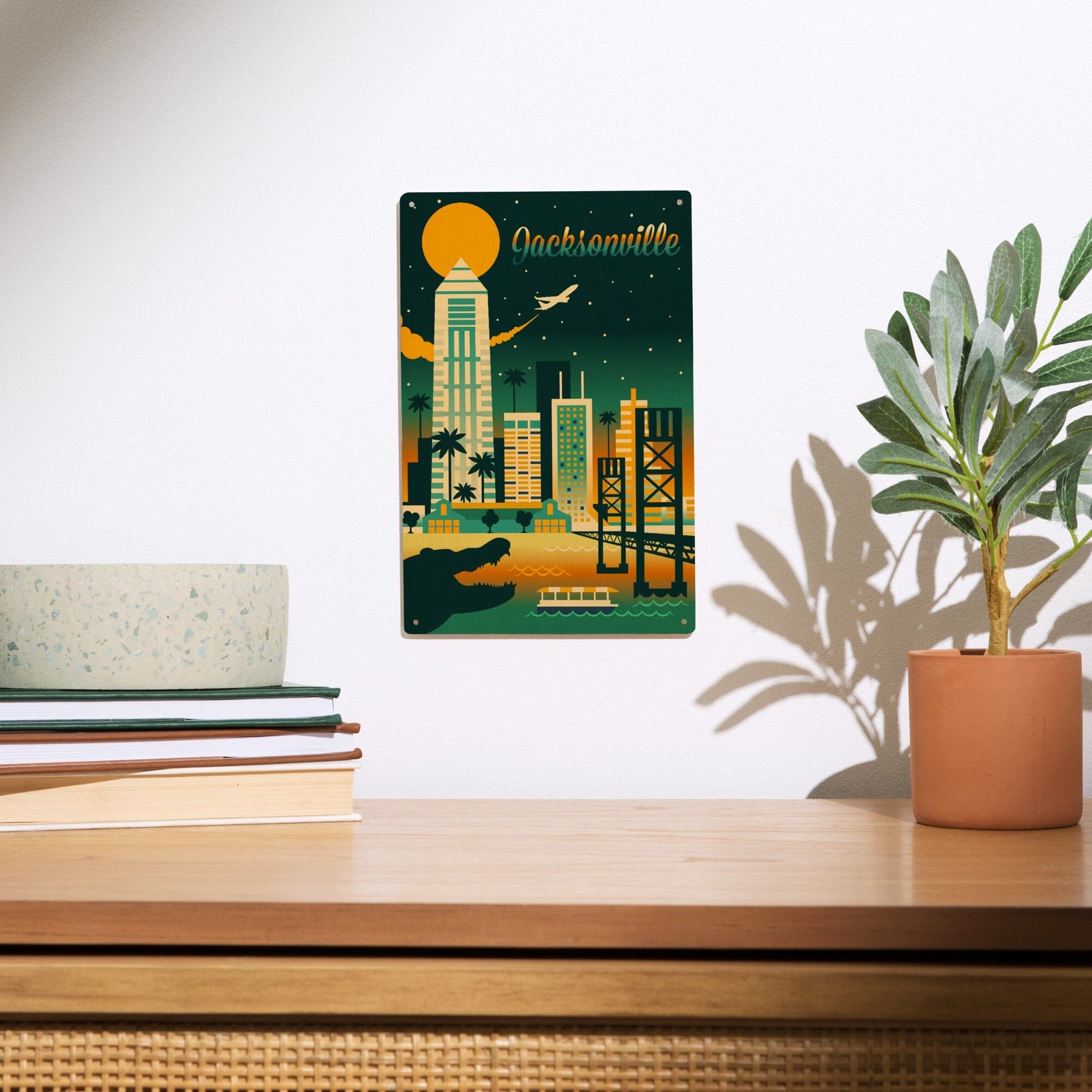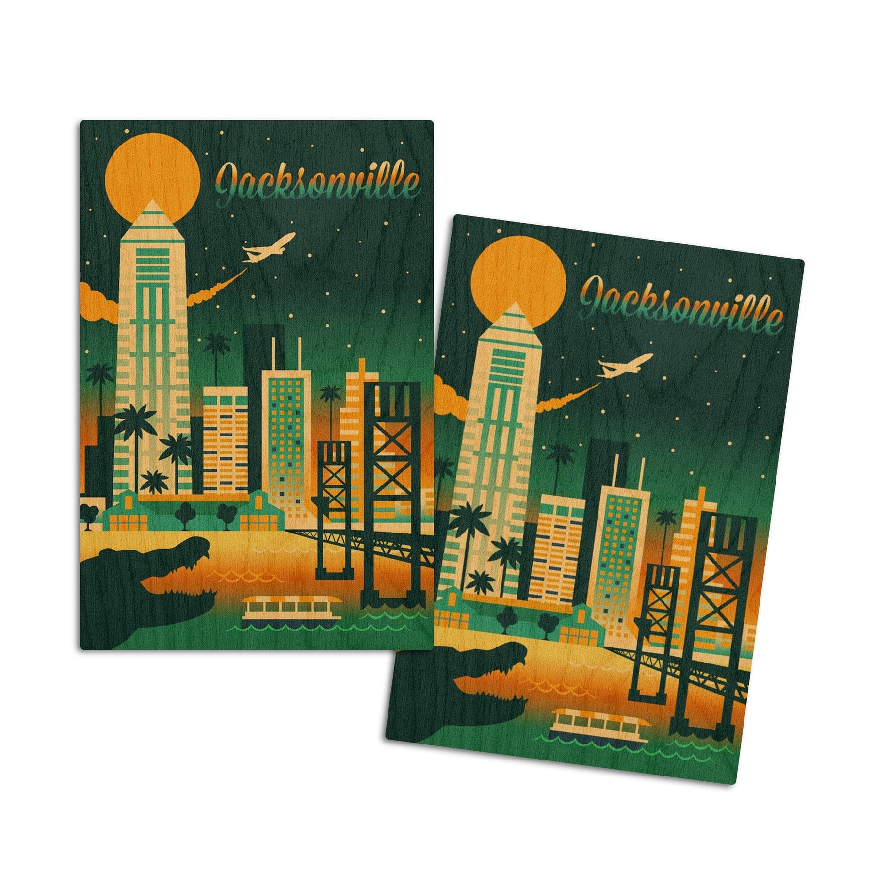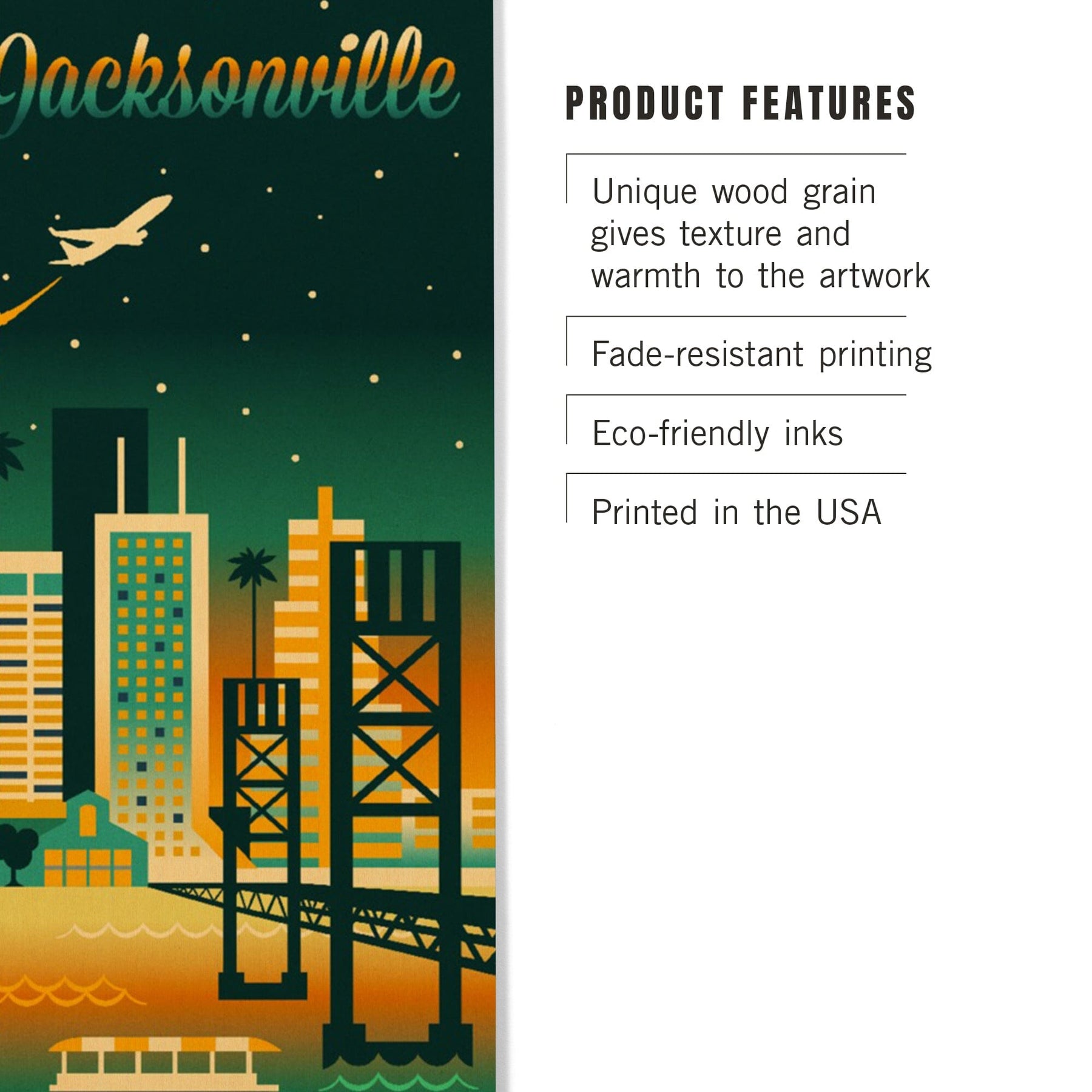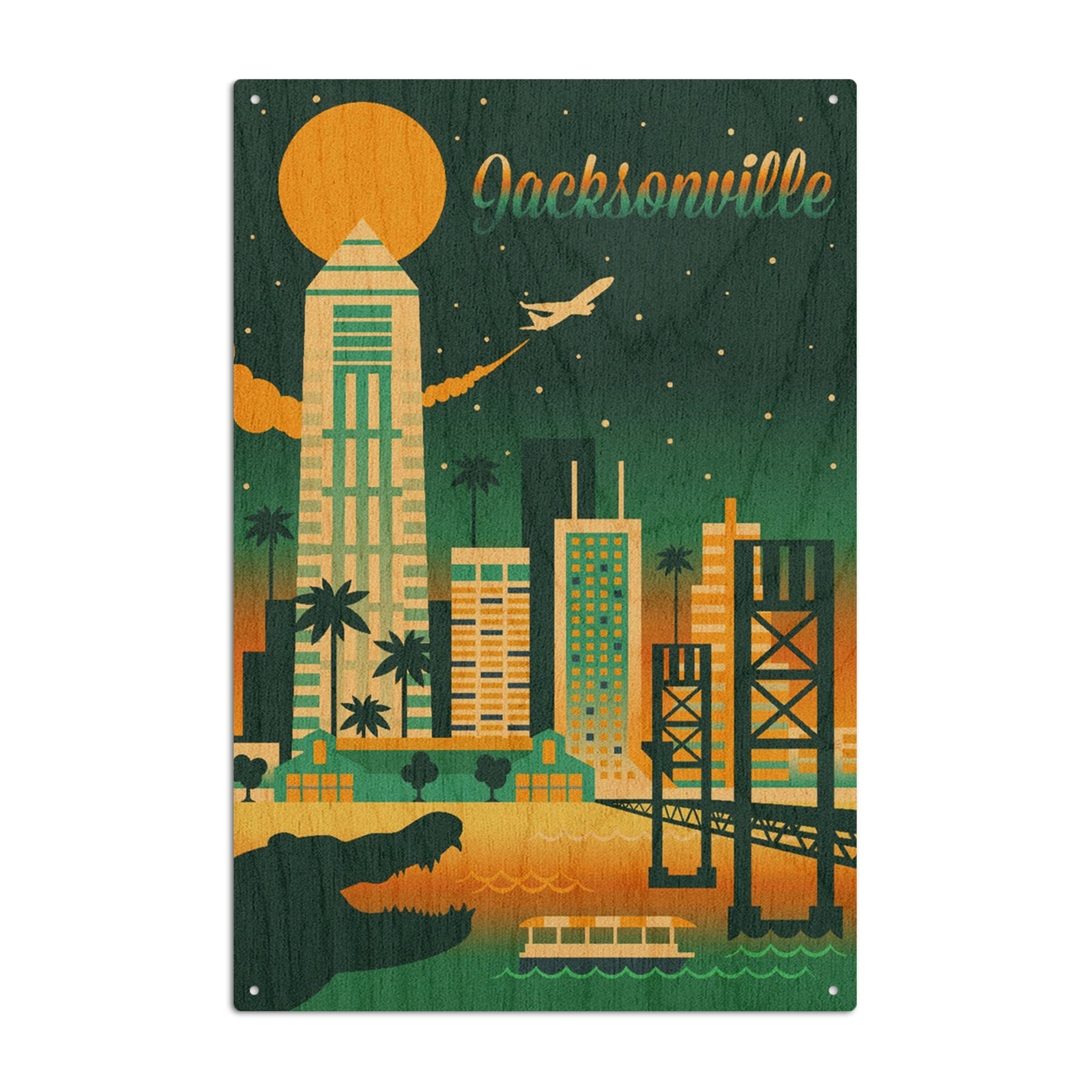 Jacksonville, Florida, Retro Skyline Chromatic Series, Lantern Press Artwork, Wood Signs and Postcards
