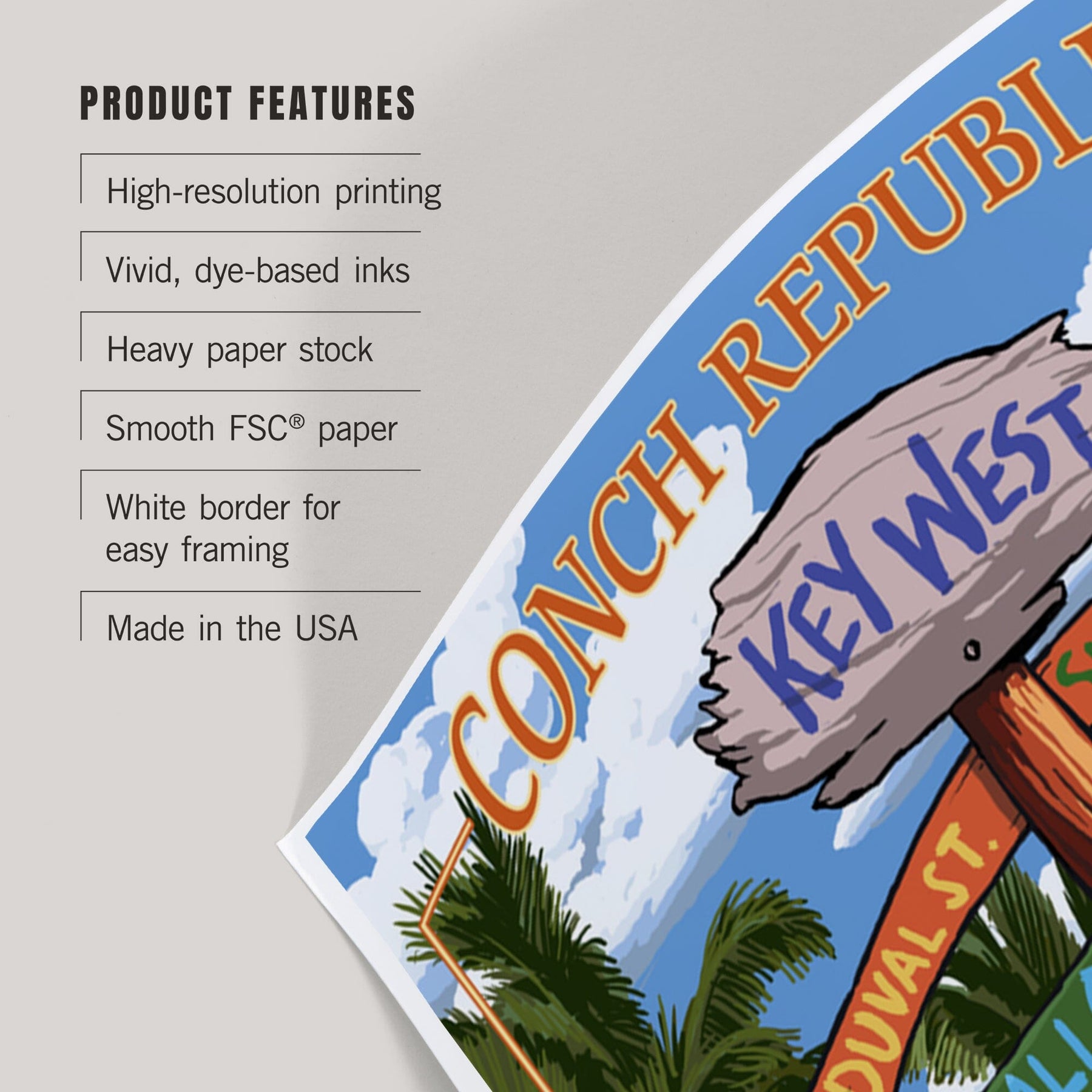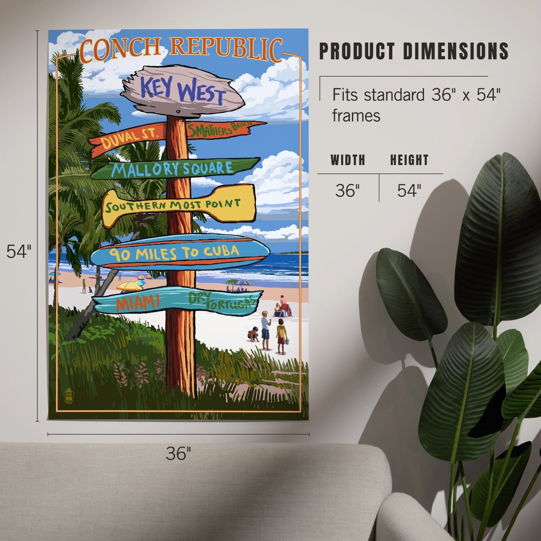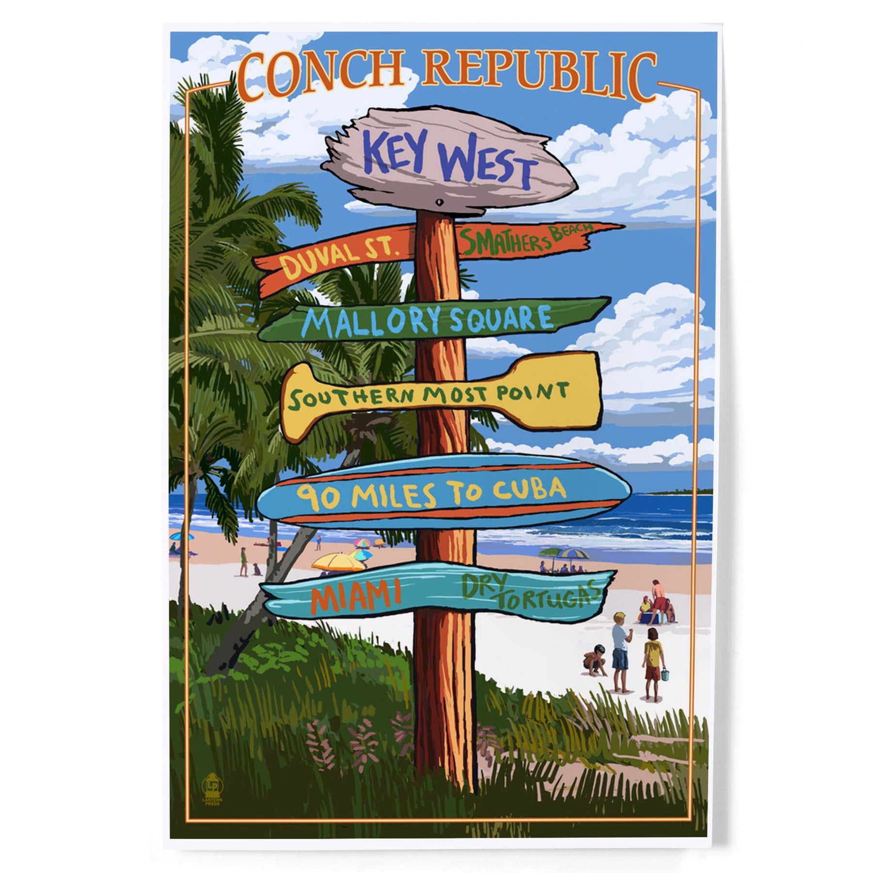 Key West, Florida, Conch Republic, Destinations Sign, Art & Giclee Prints - Lantern Press