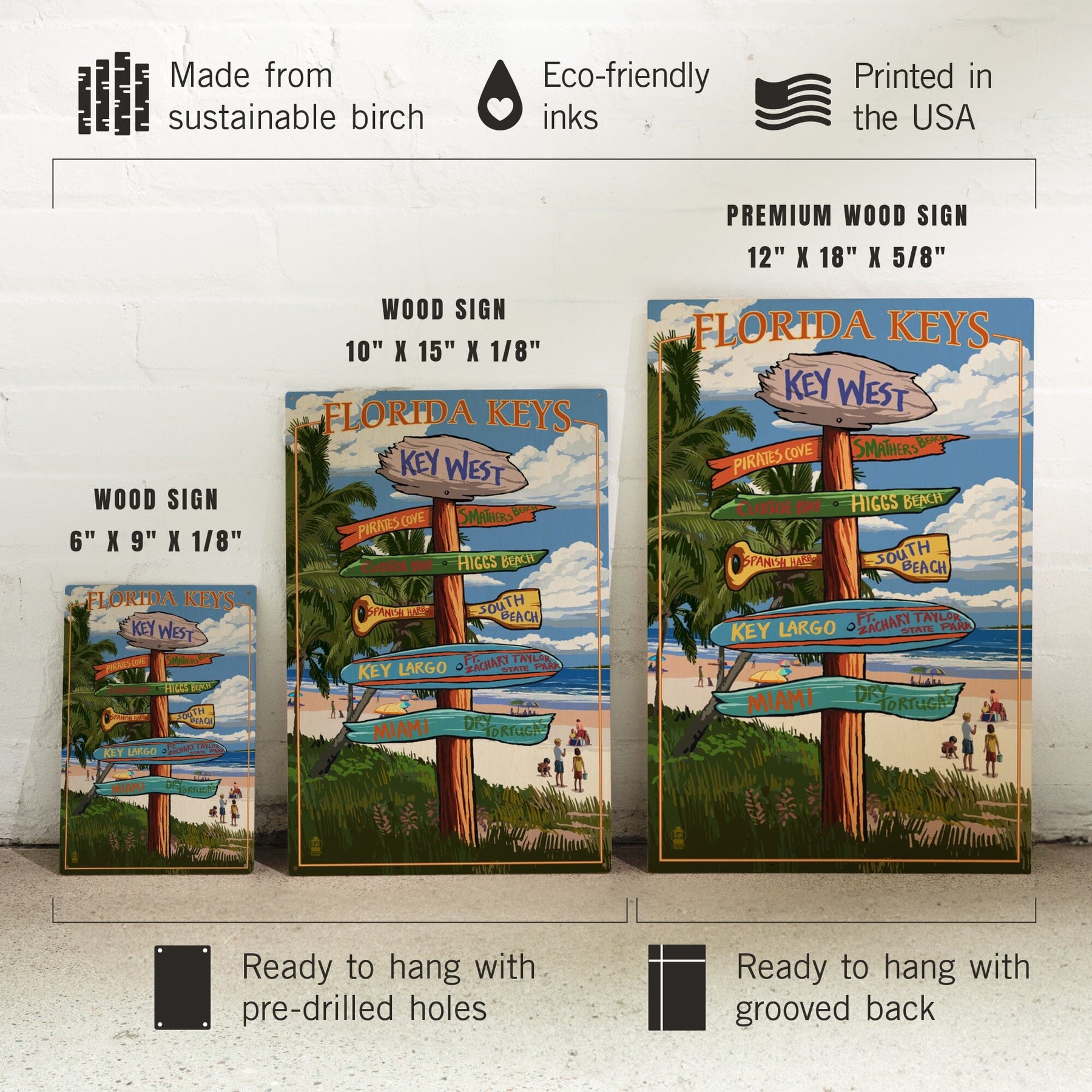 Key West, Florida, Destinations Sign, Lantern Press Artwork, Wood Signs and Postcards