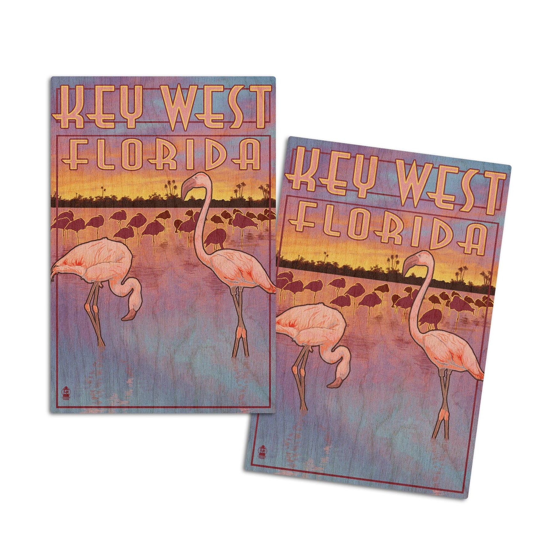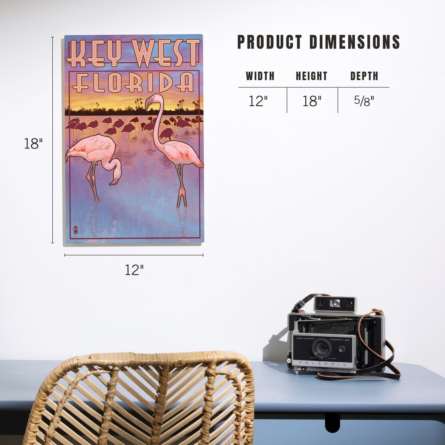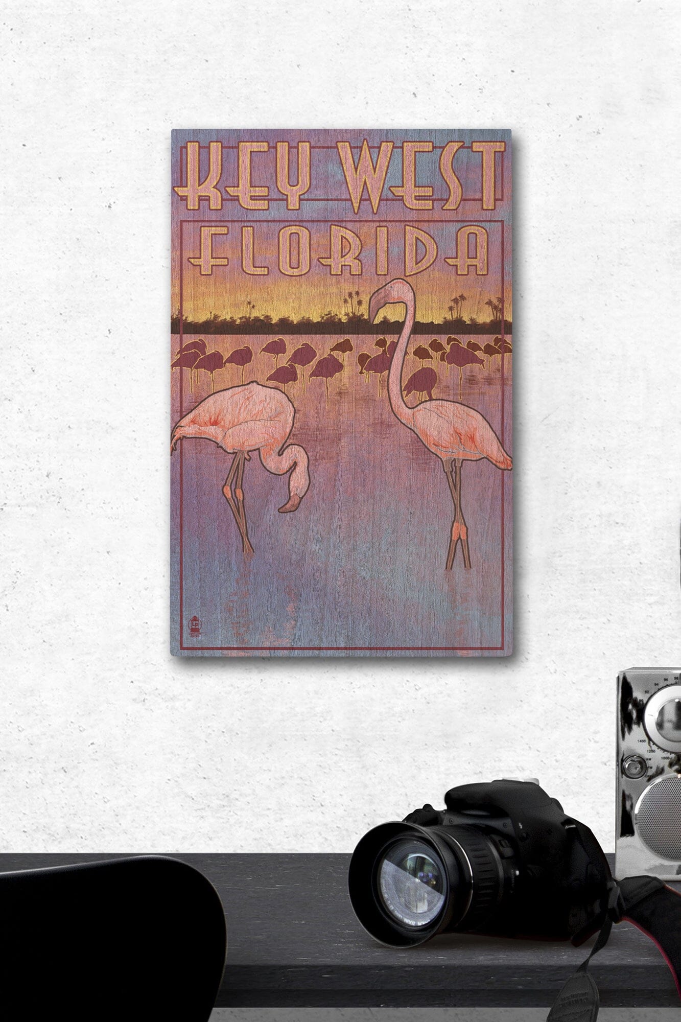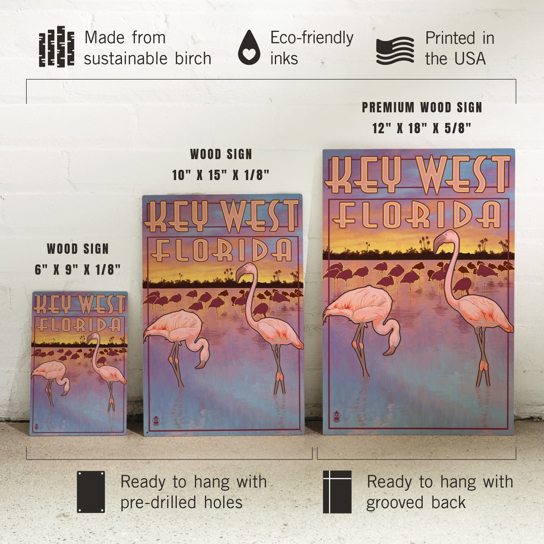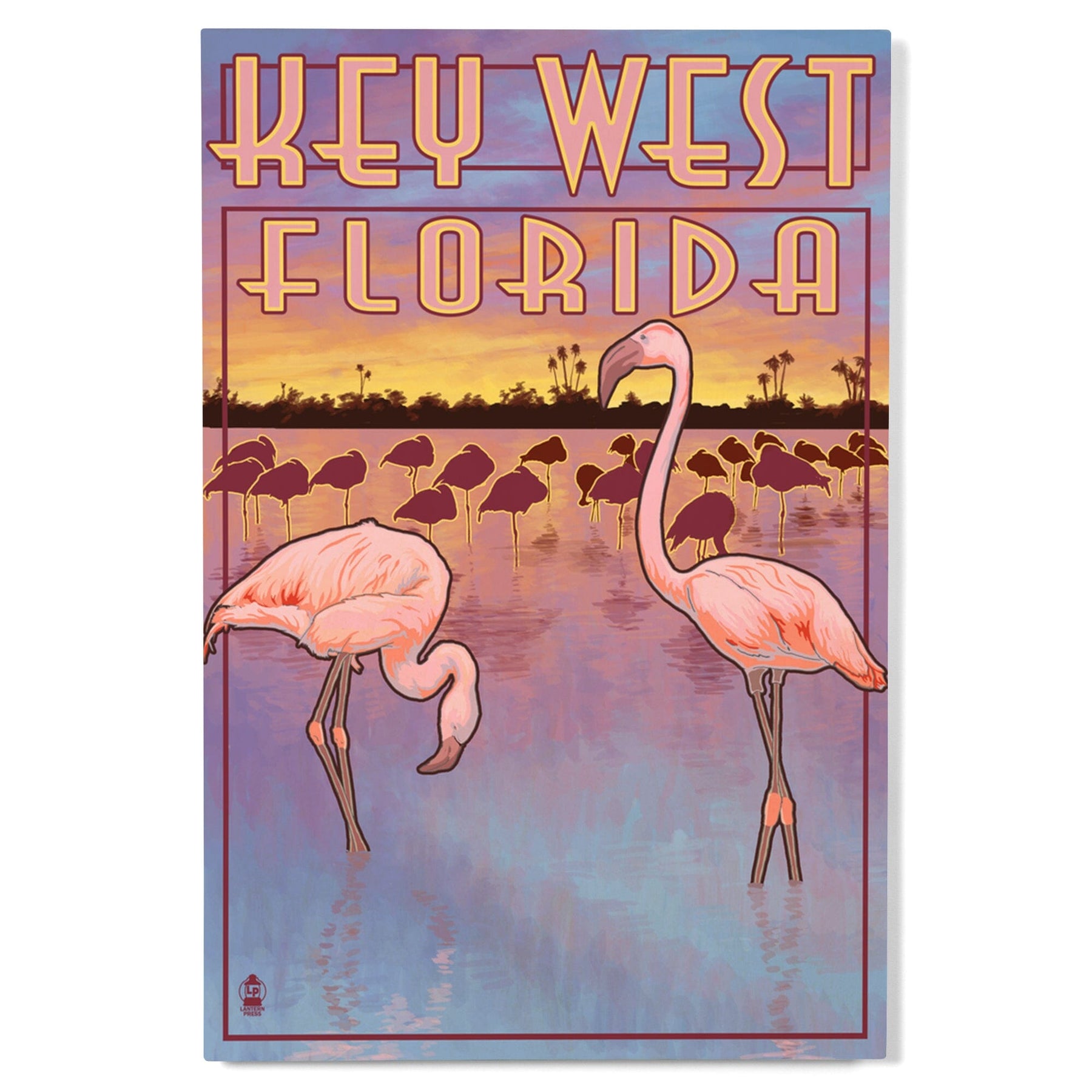 Key West, Florida, Flamingos at Sunset, Lantern Press Artwork, Wood Signs and Postcards