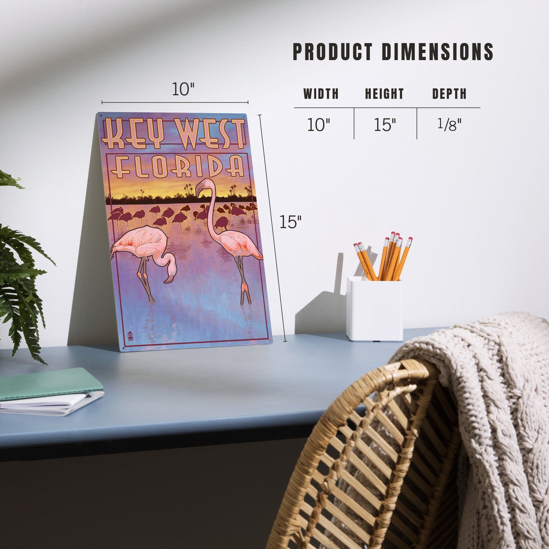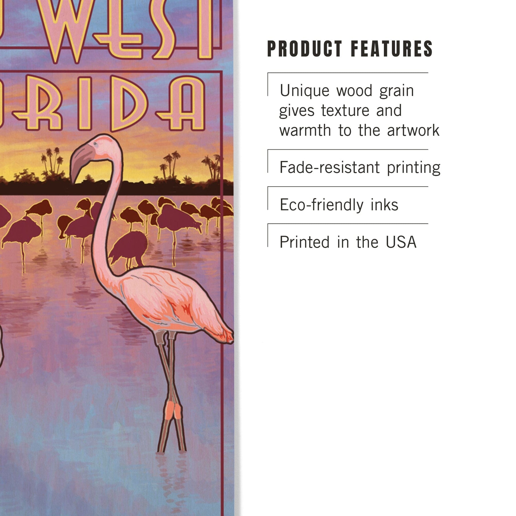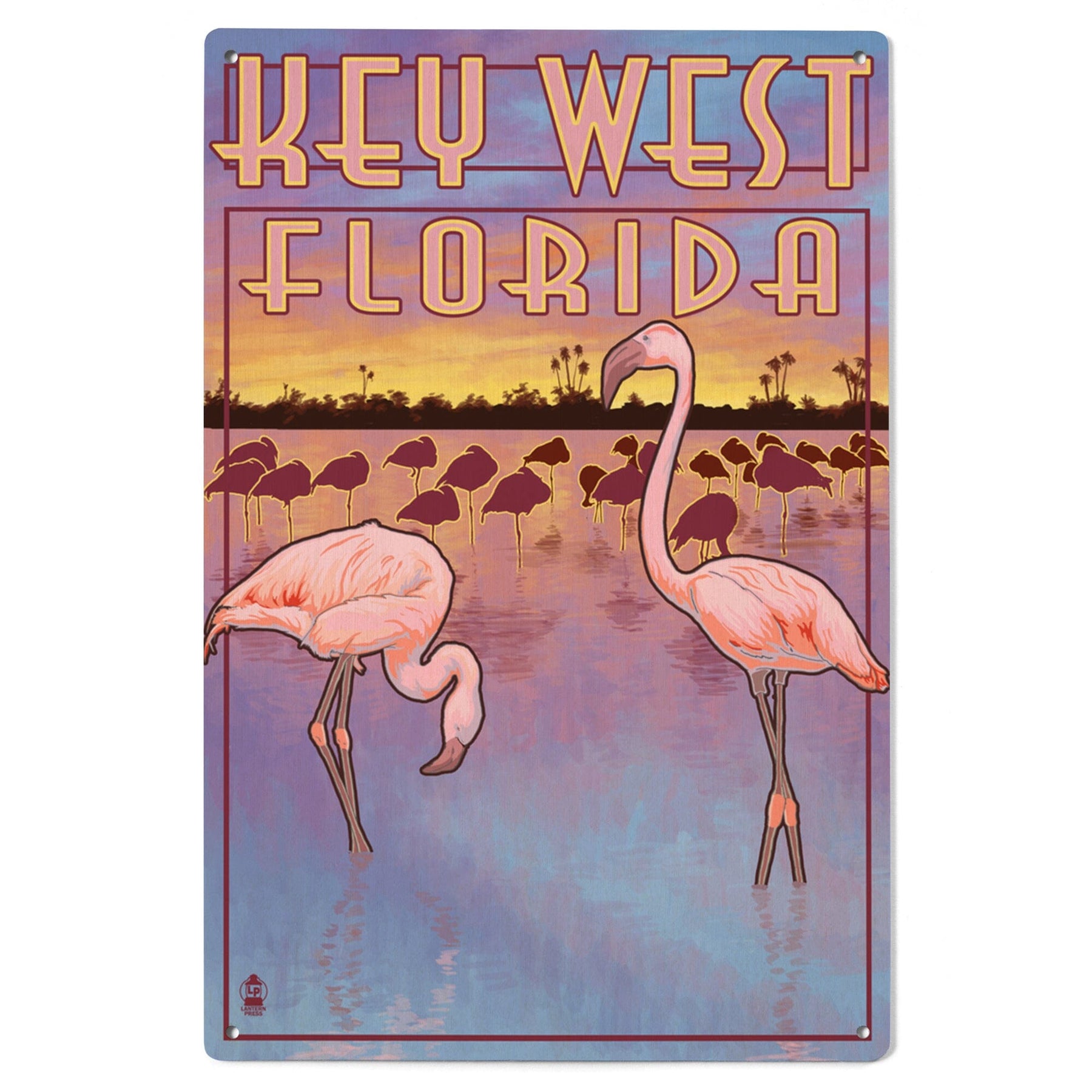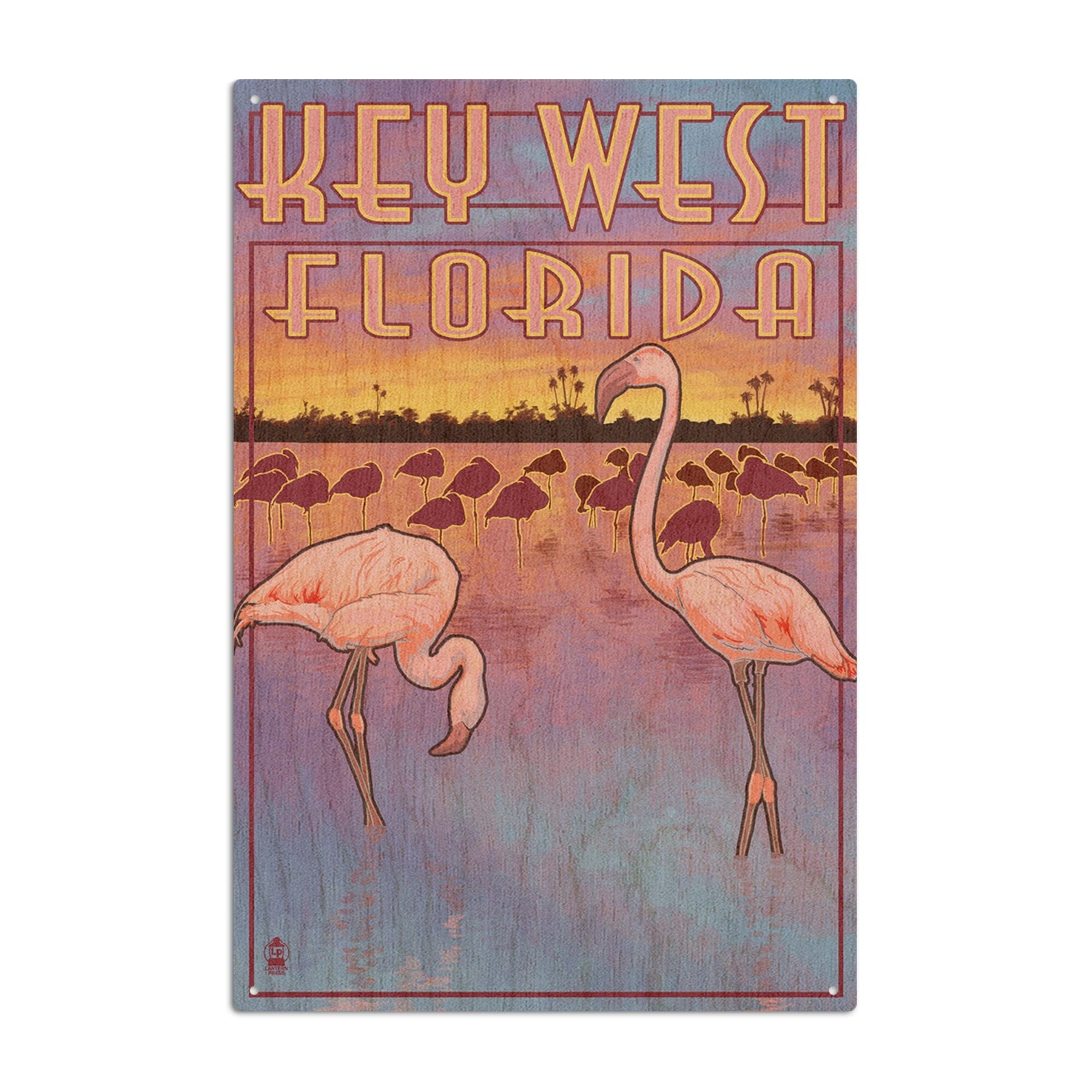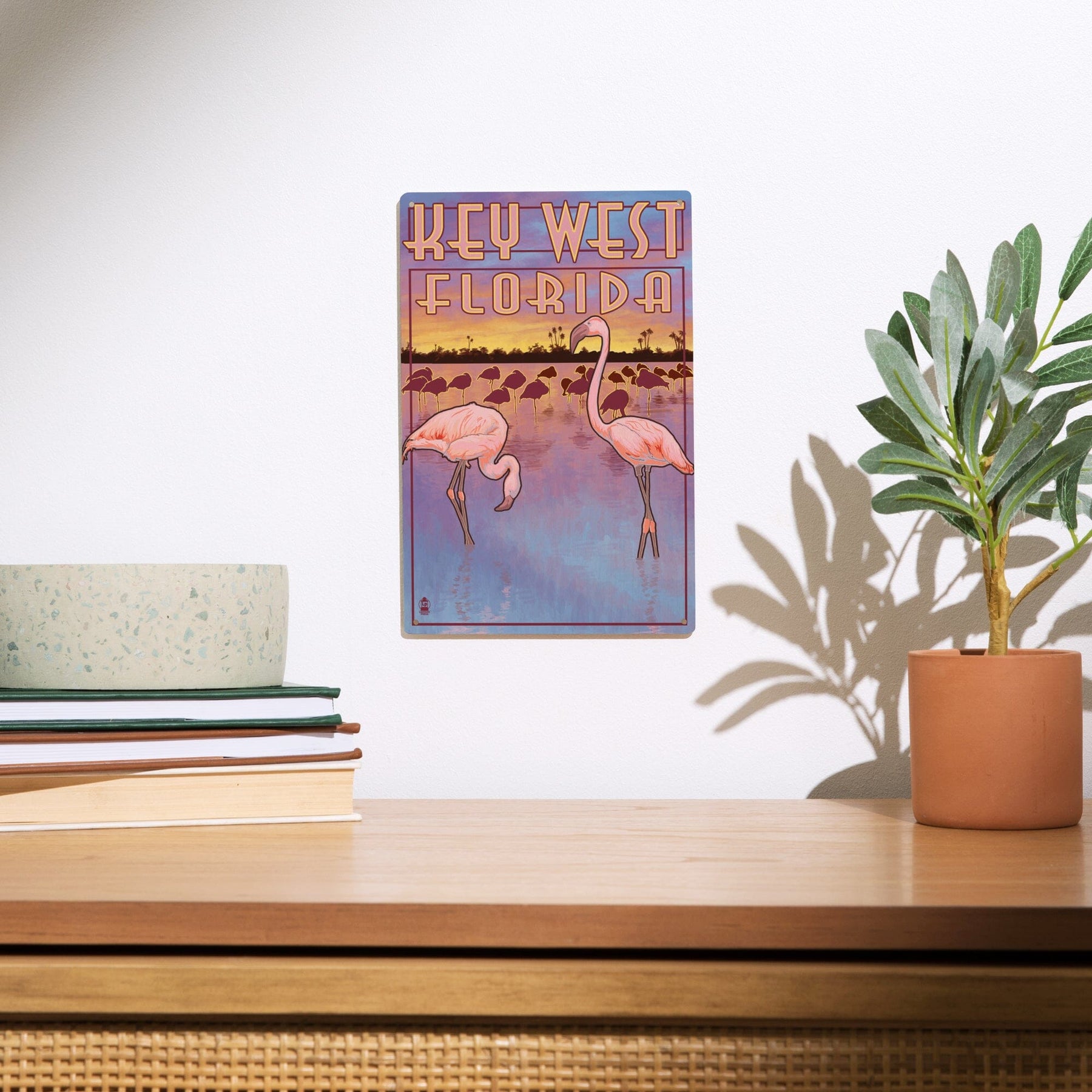 Key West, Florida, Flamingos at Sunset, Lantern Press Artwork, Wood Signs and Postcards
