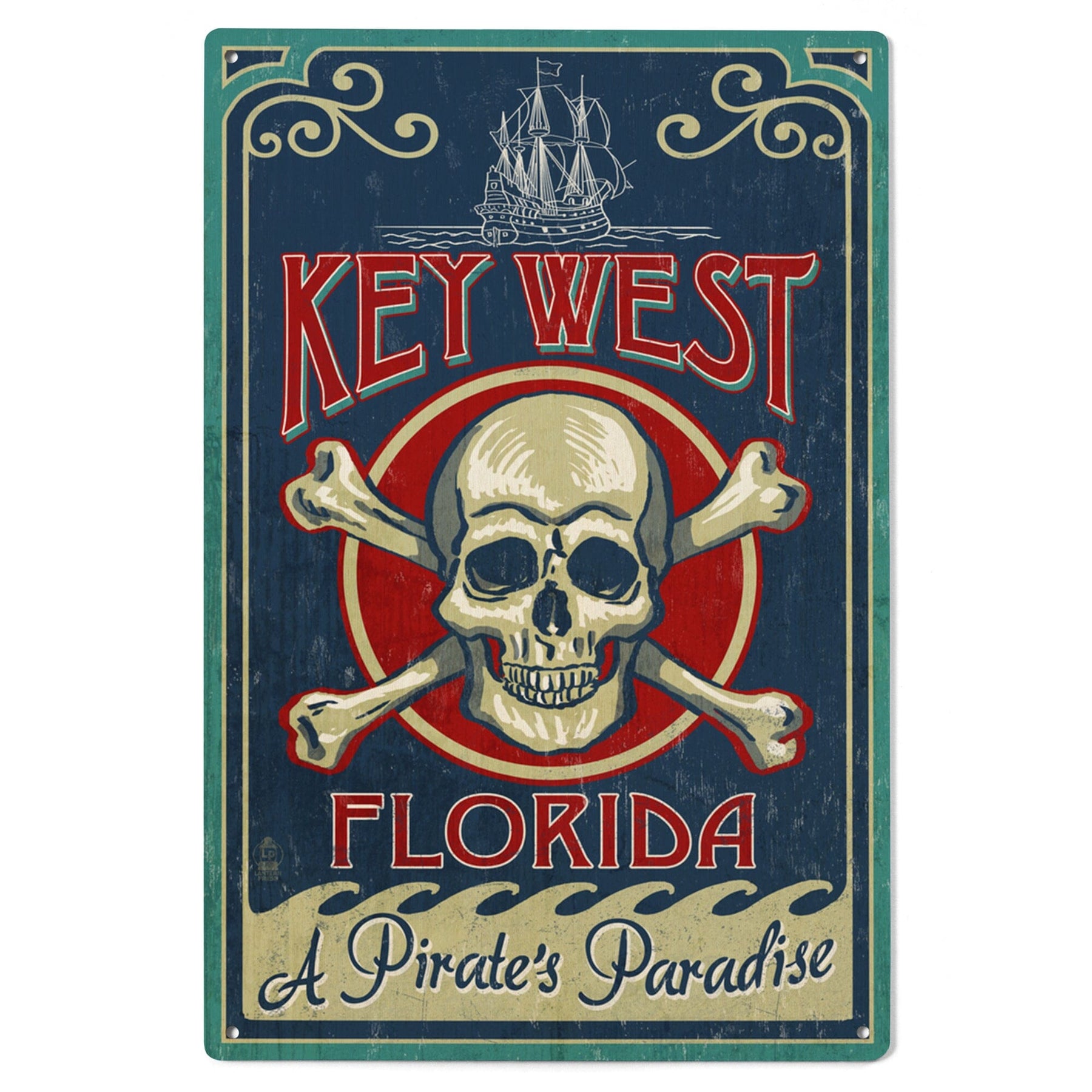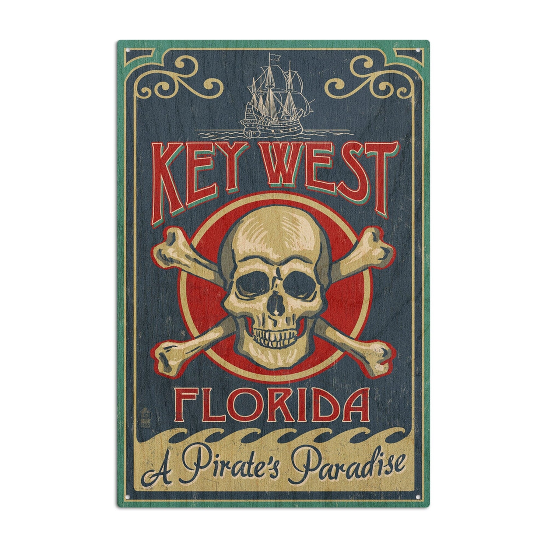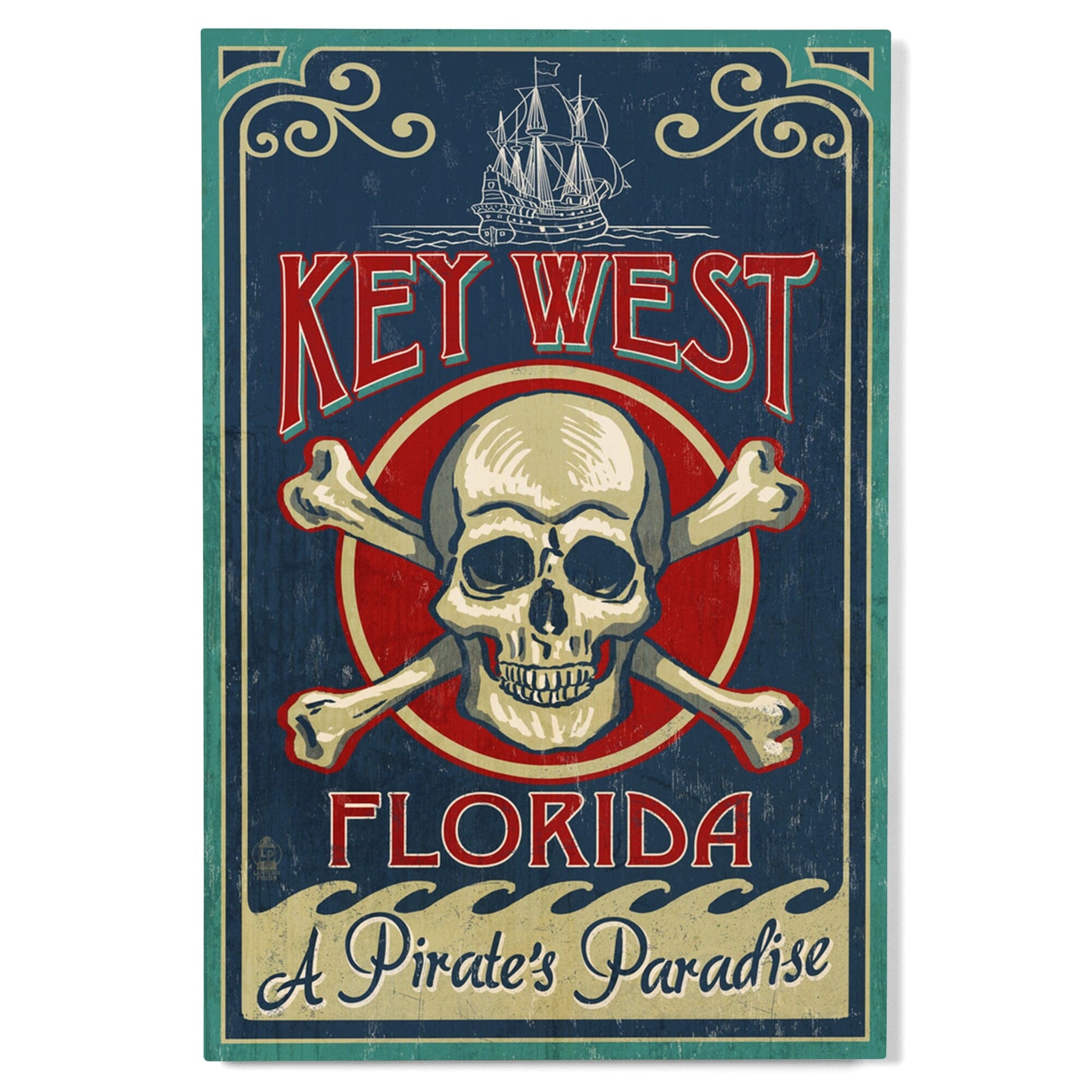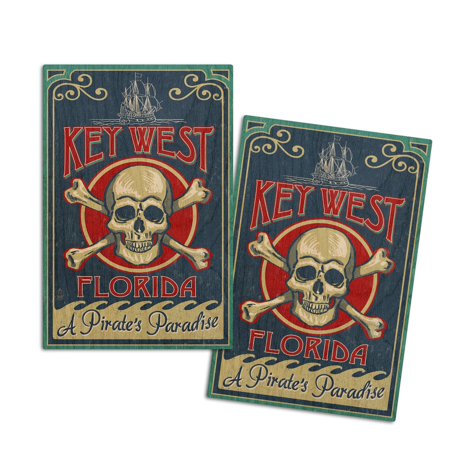 Key West, Florida, Skull & Crossbones, Lantern Press Artwork, Wood Signs and Postcards