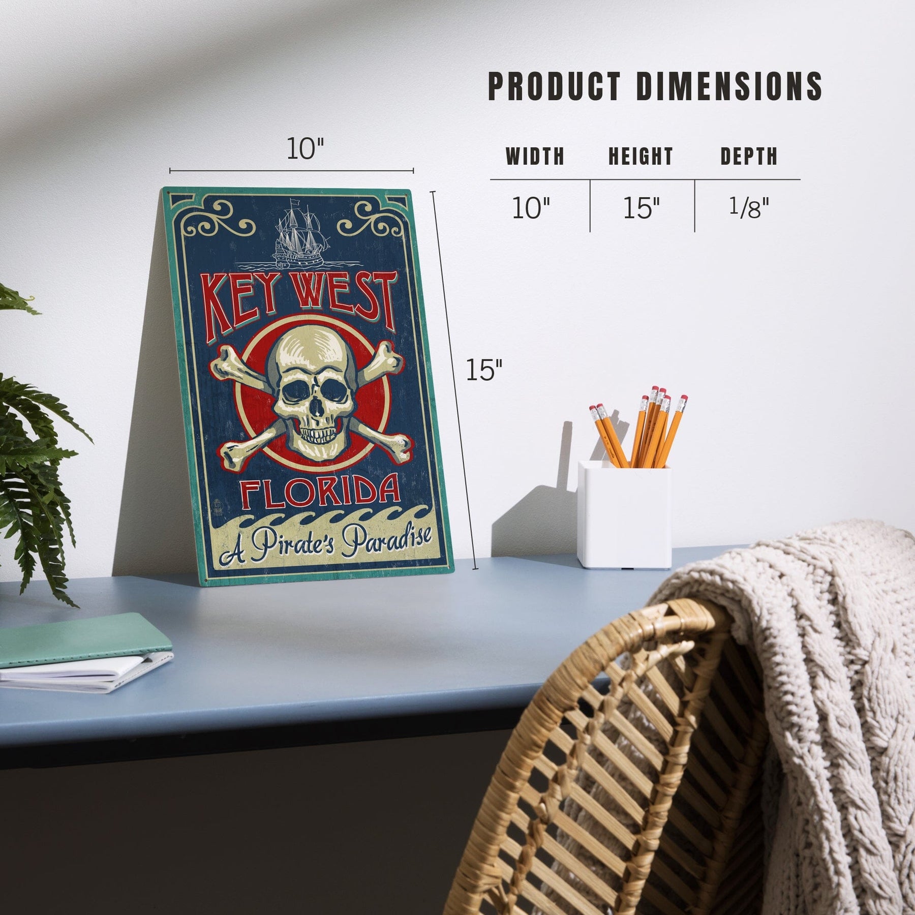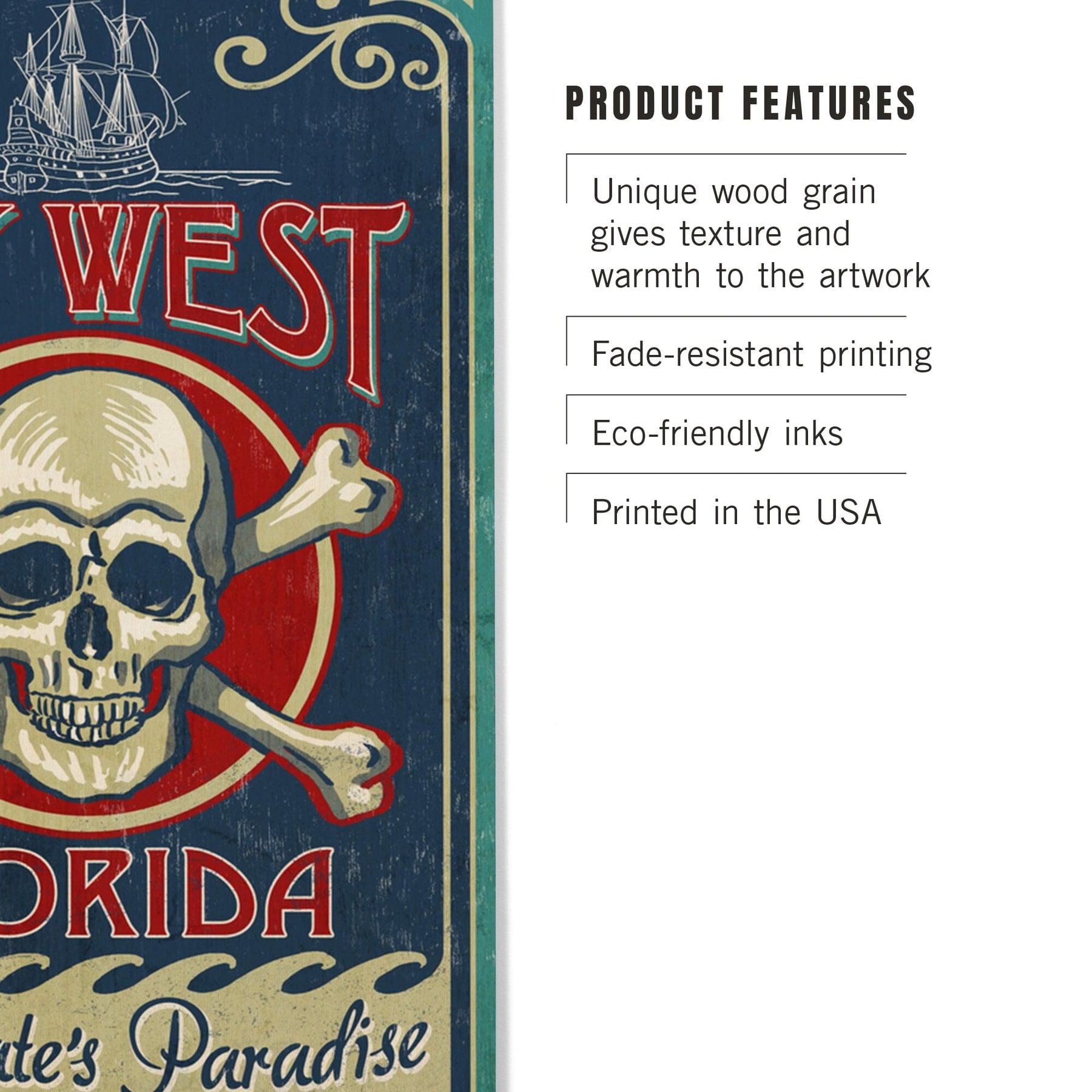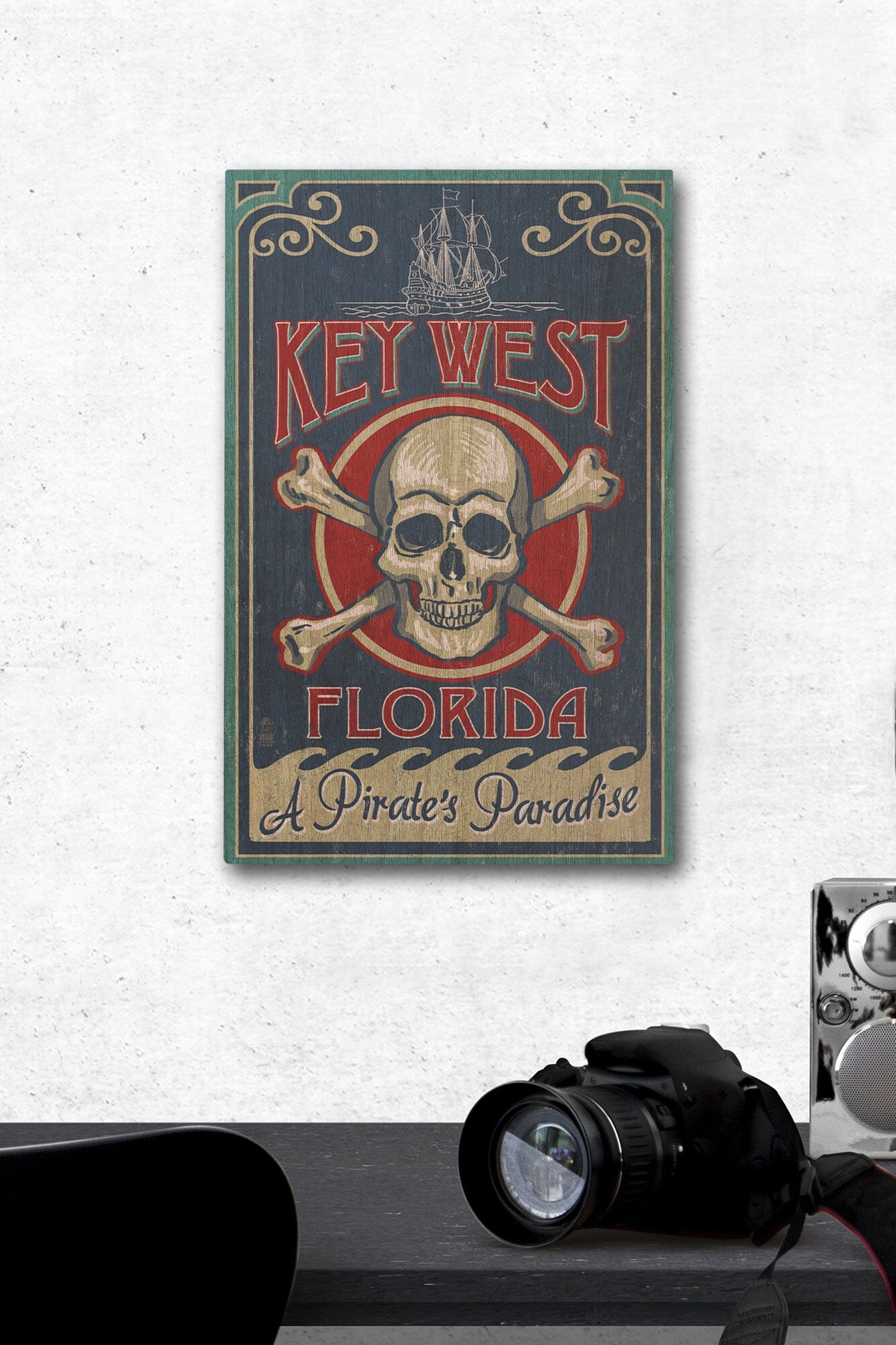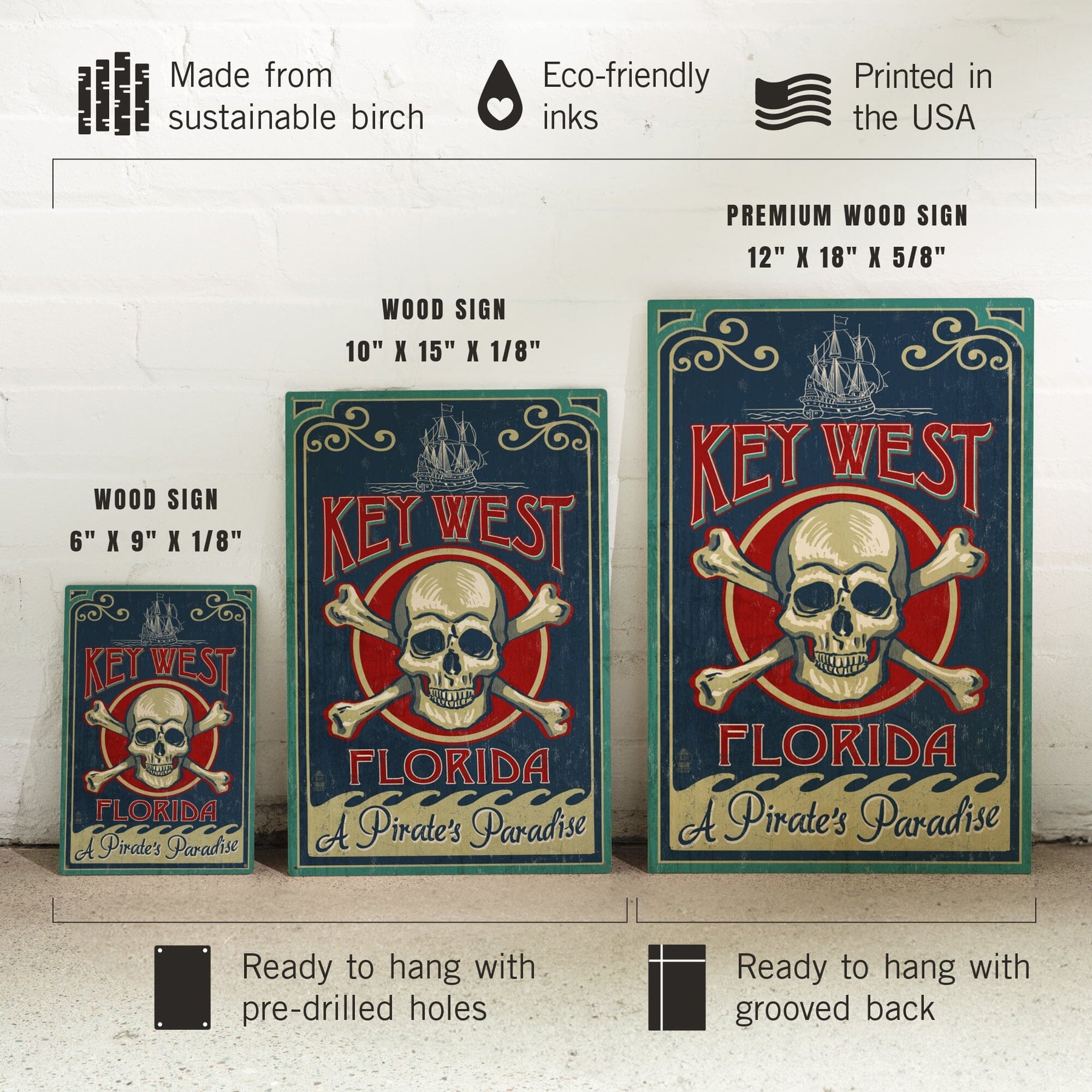 Key West, Florida, Skull & Crossbones, Lantern Press Artwork, Wood Signs and Postcards