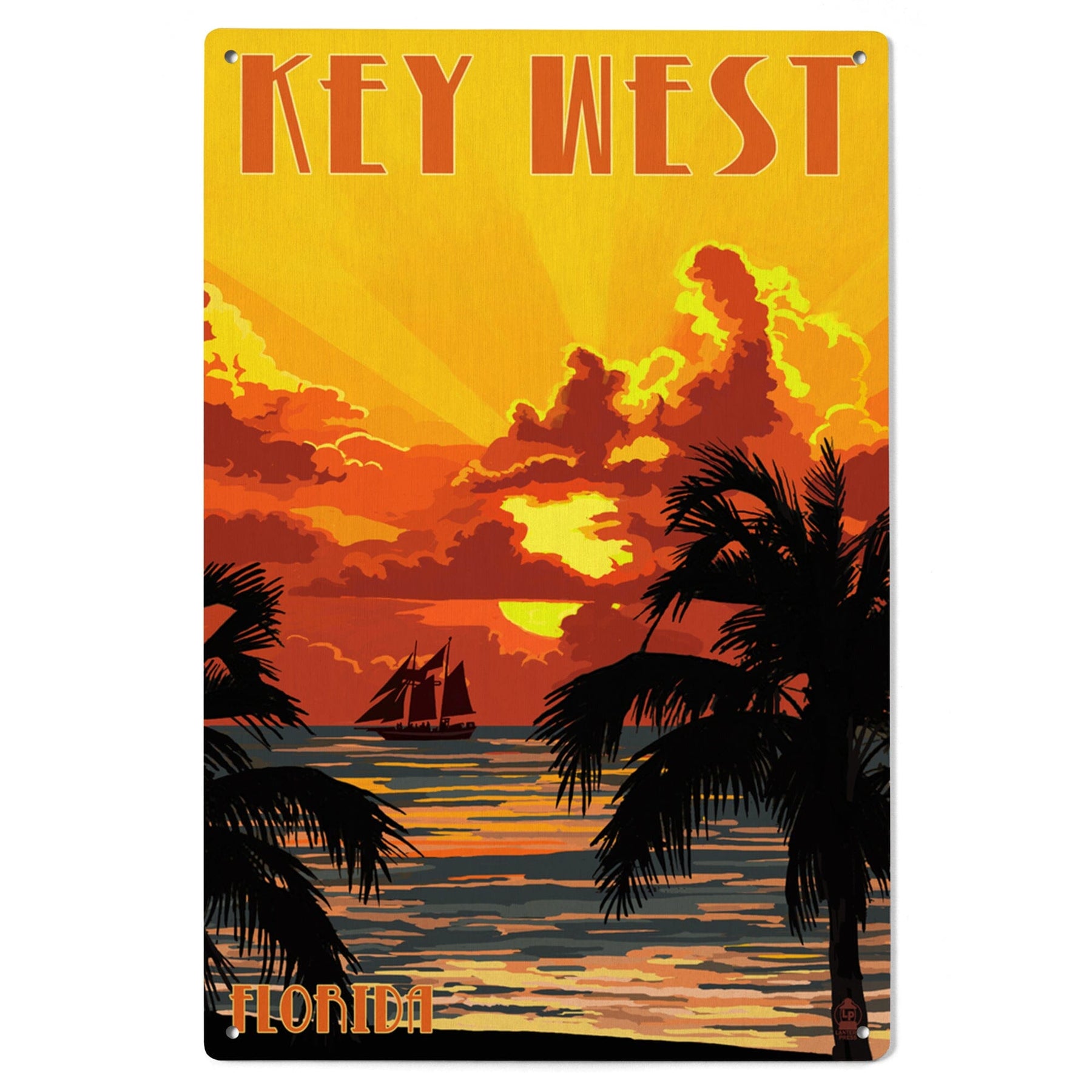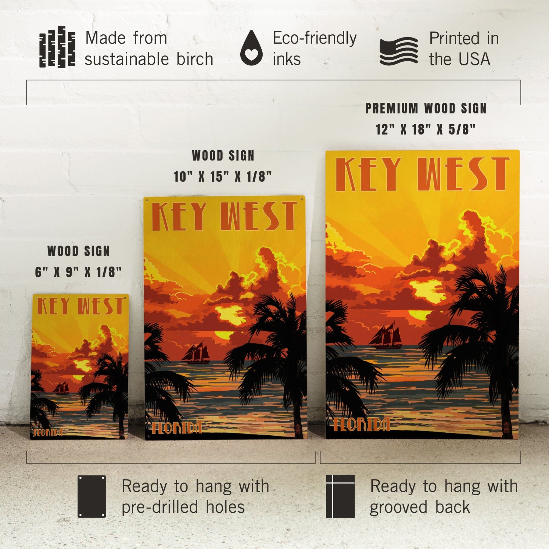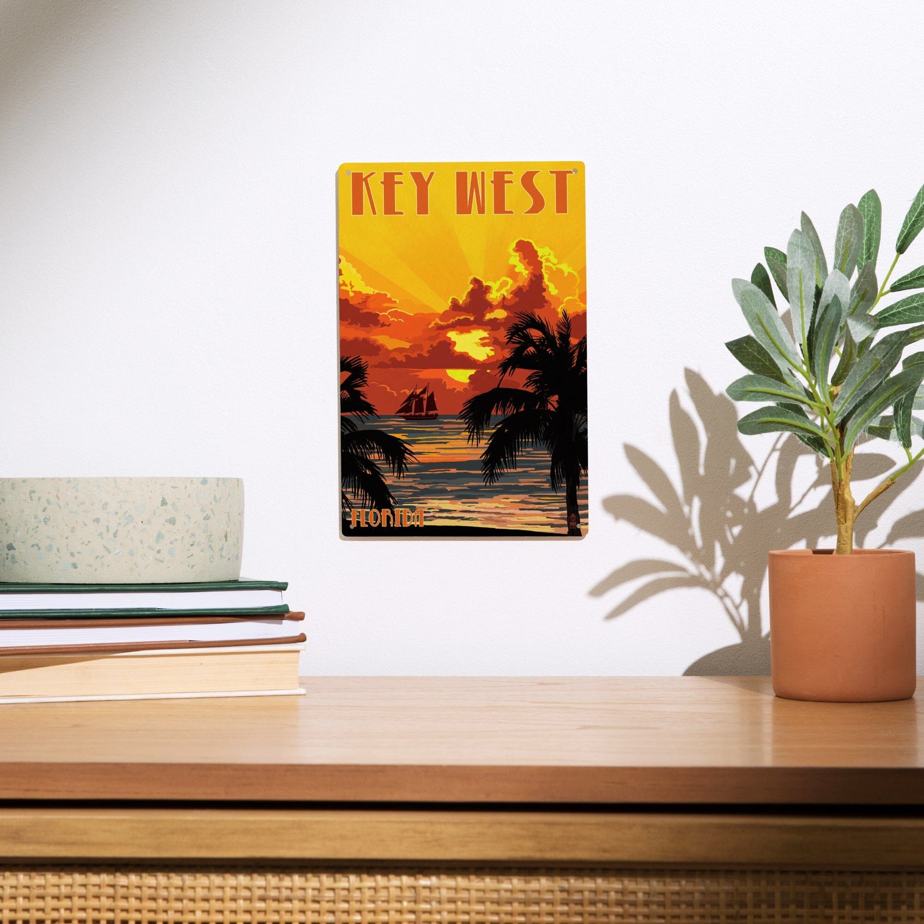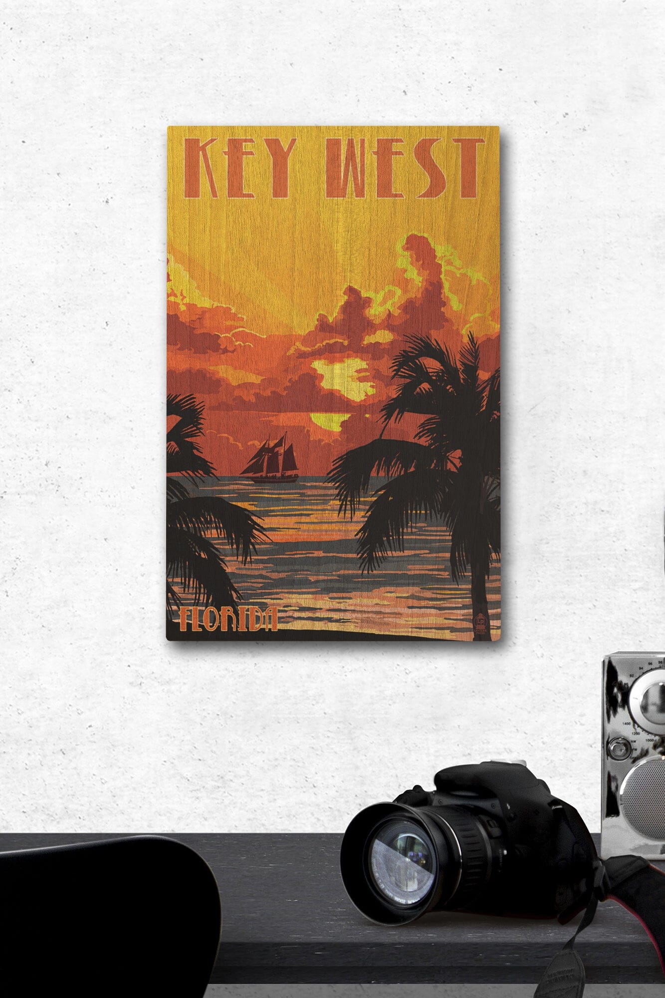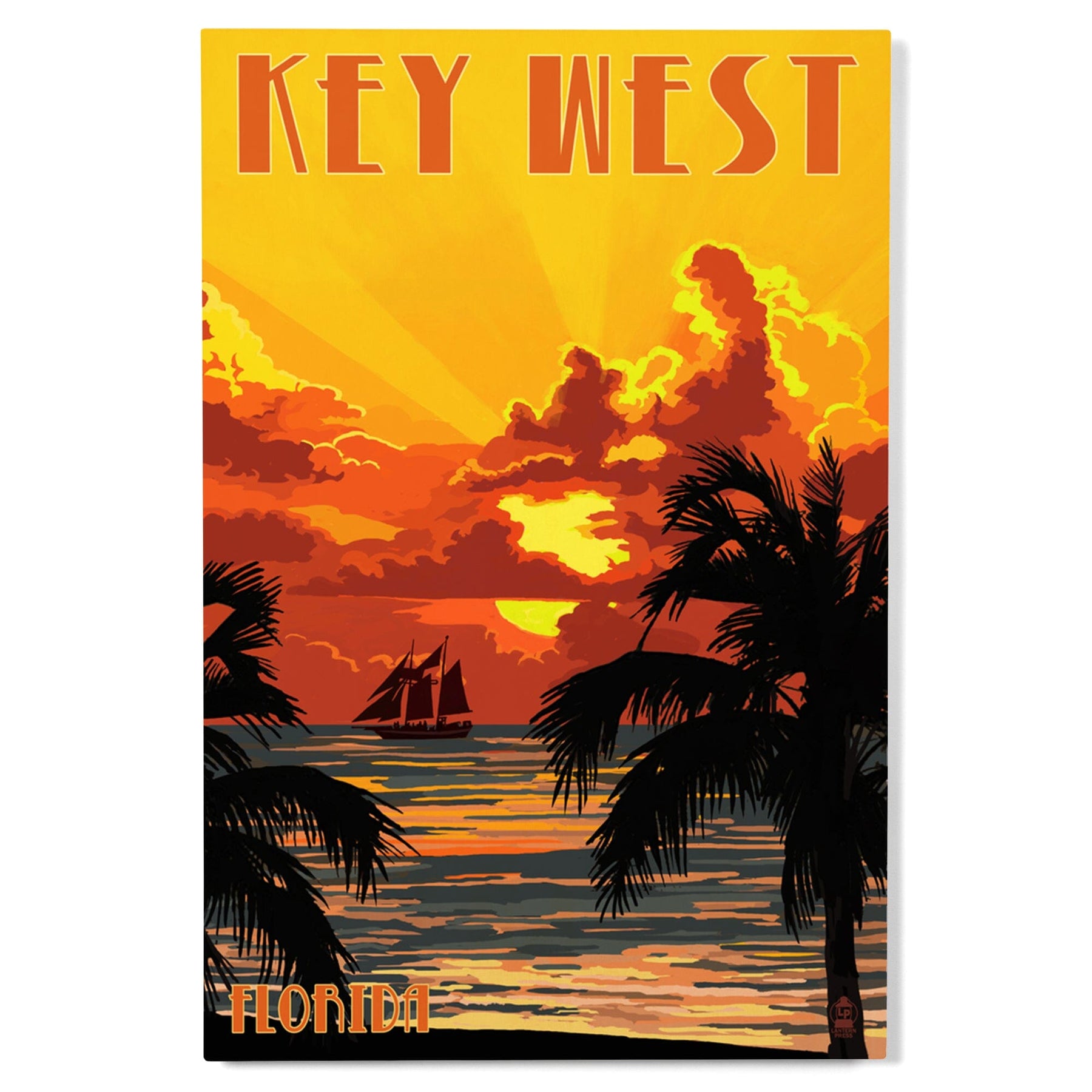 Key West, Florida, Sunset & Ship, Lantern Press Artwork, Wood Signs and Postcards