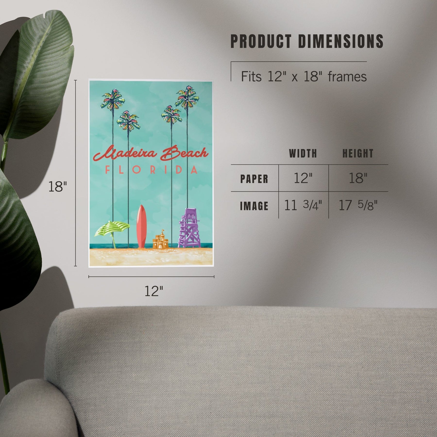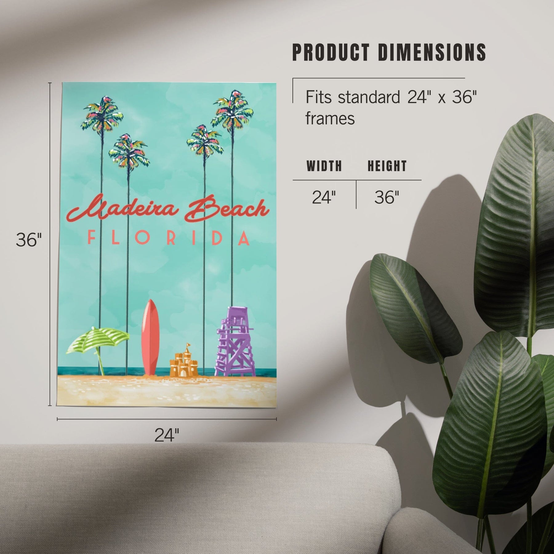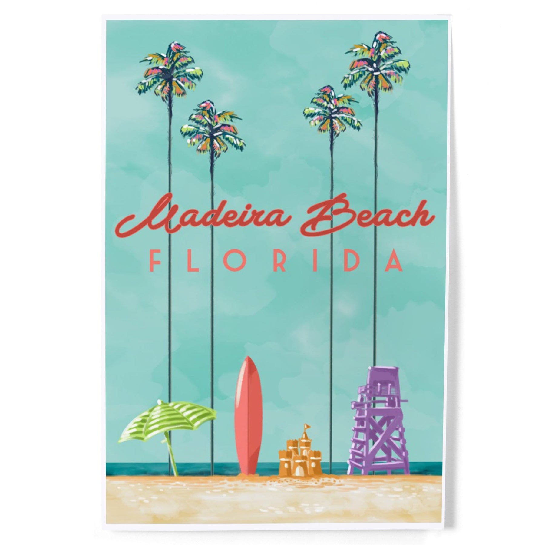 Madeira Beach, Florida, Tall Palms Beach Scene, Art & Giclee Prints - Lantern Press