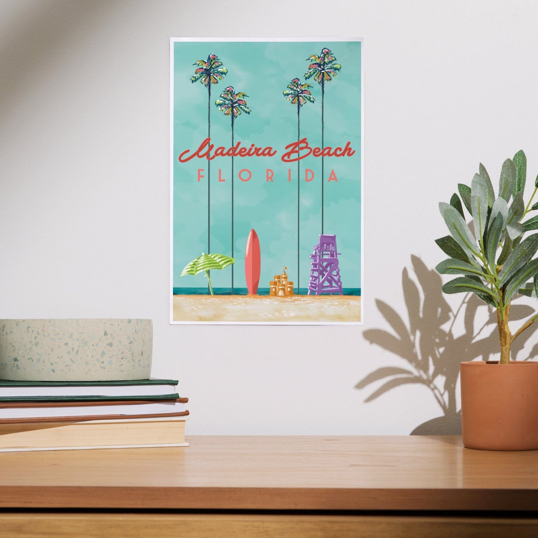 Madeira Beach, Florida, Tall Palms Beach Scene, Art & Giclee Prints
