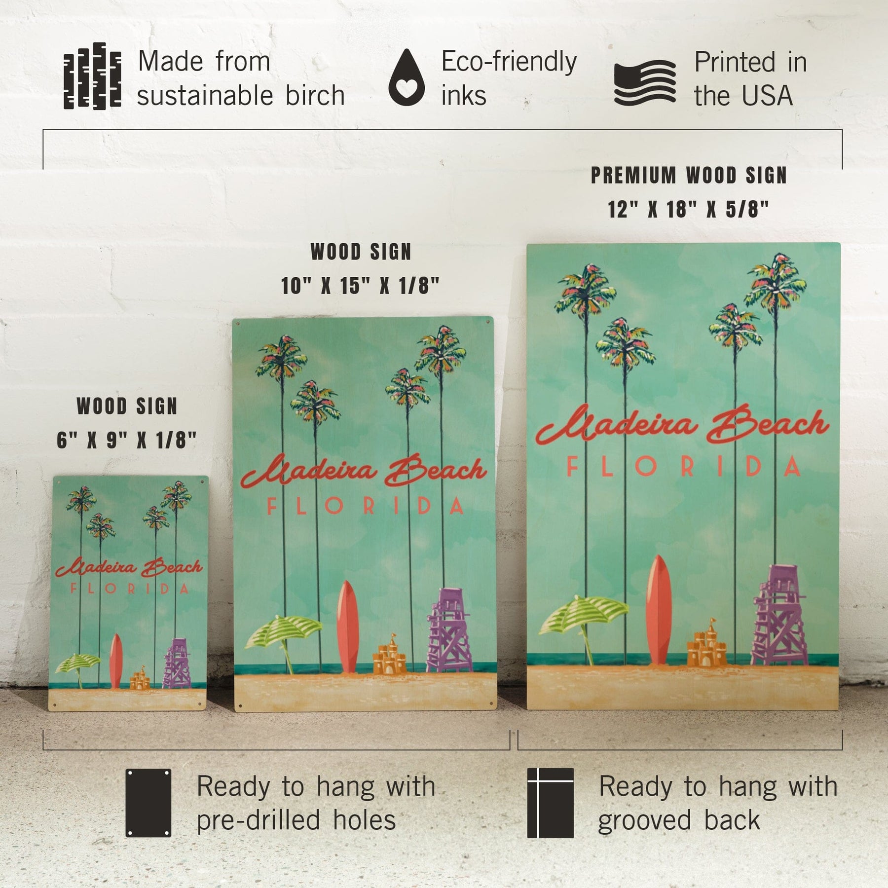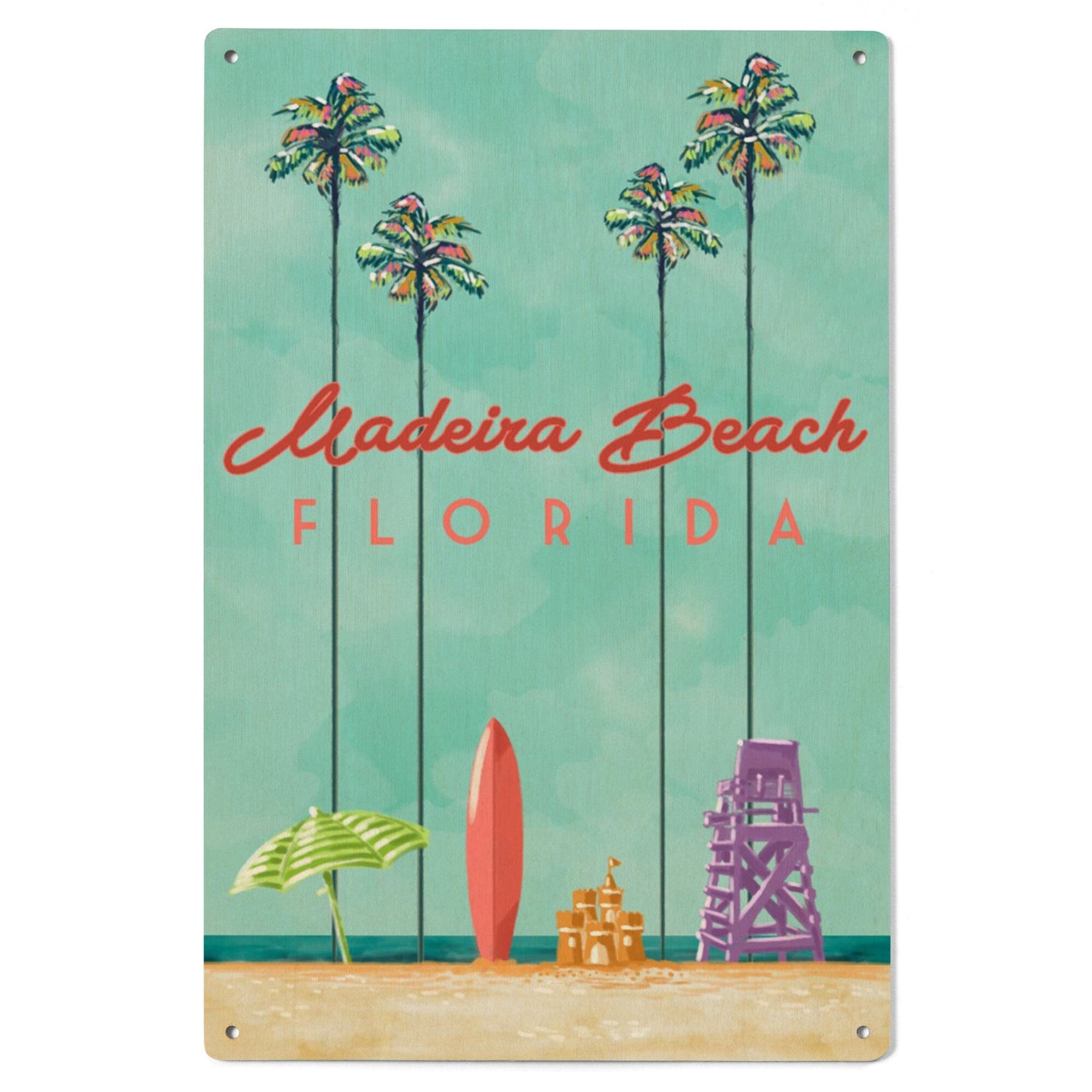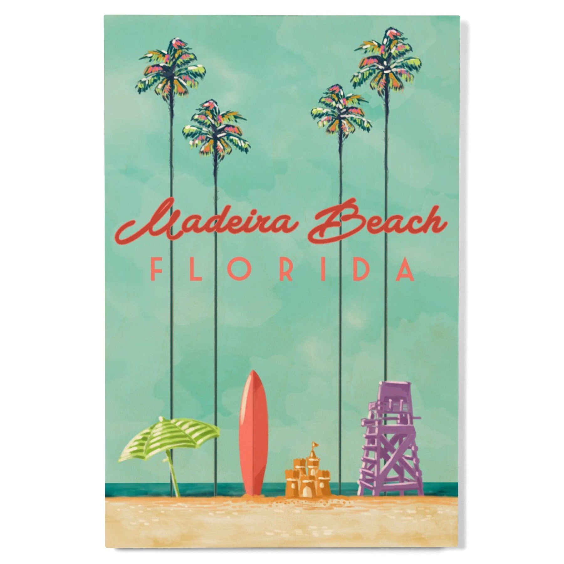 Madeira Beach, Florida, Tall Palms Beach Scene, Lantern Press Artwork, Wood Signs and Postcards