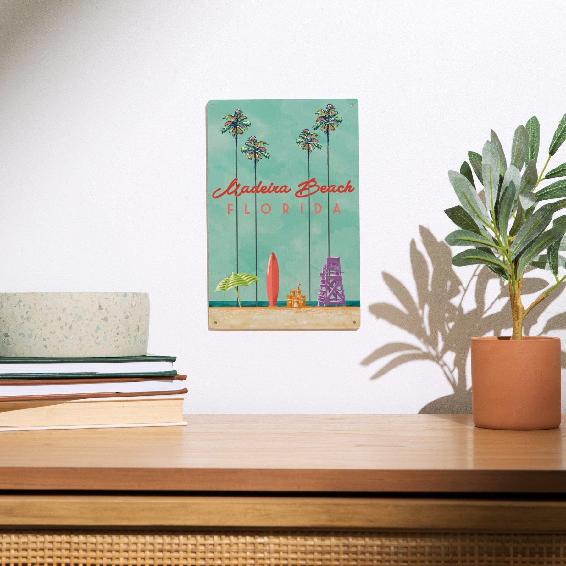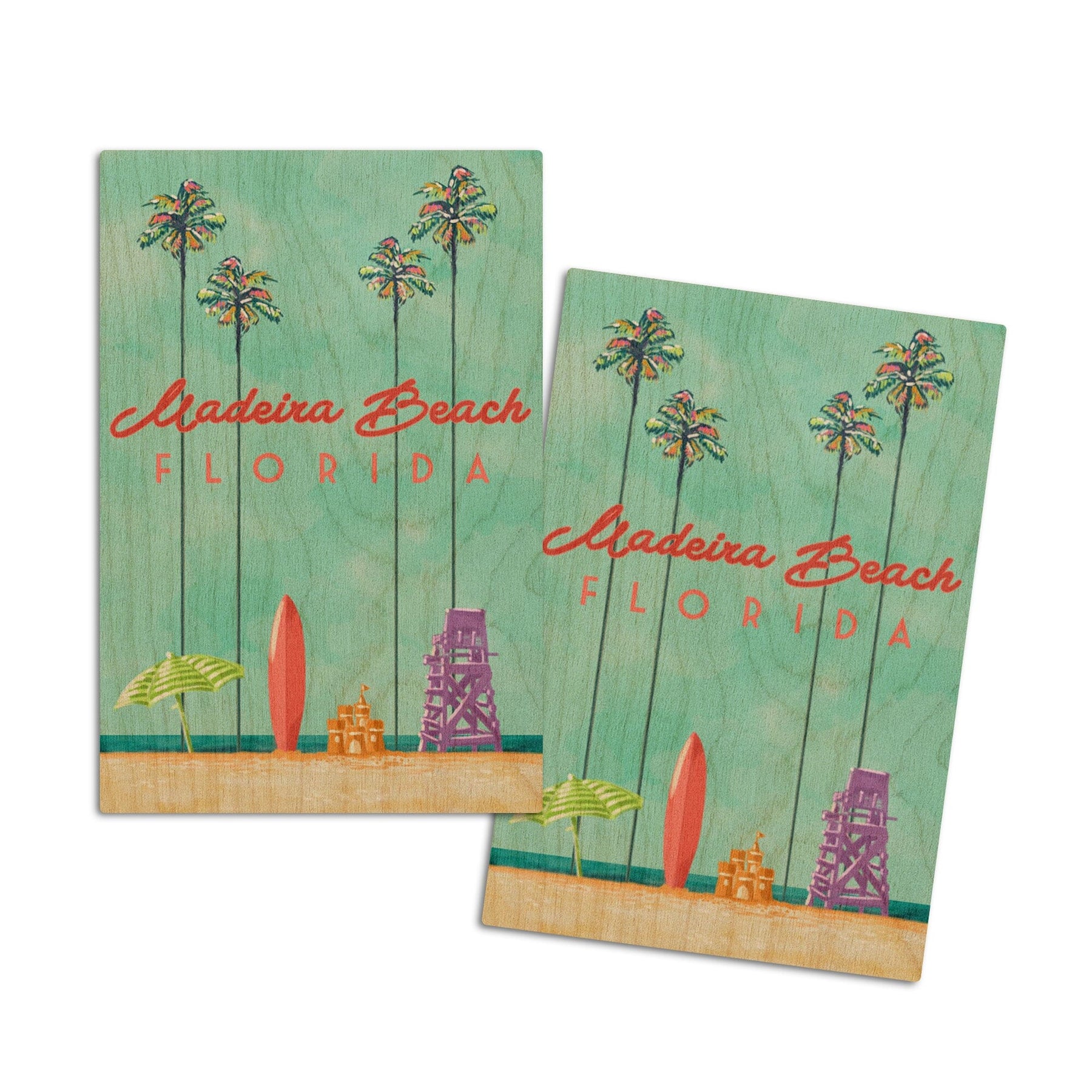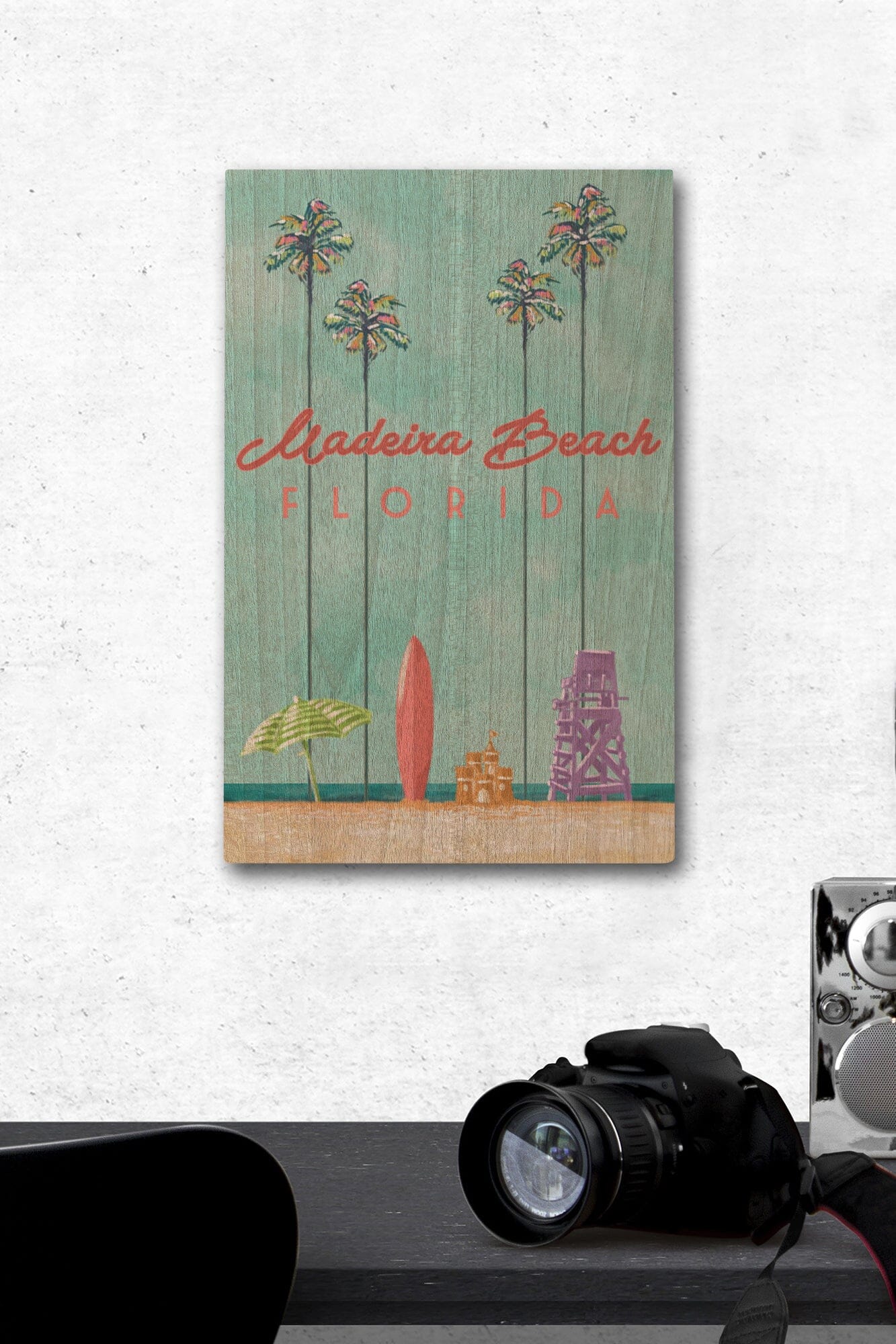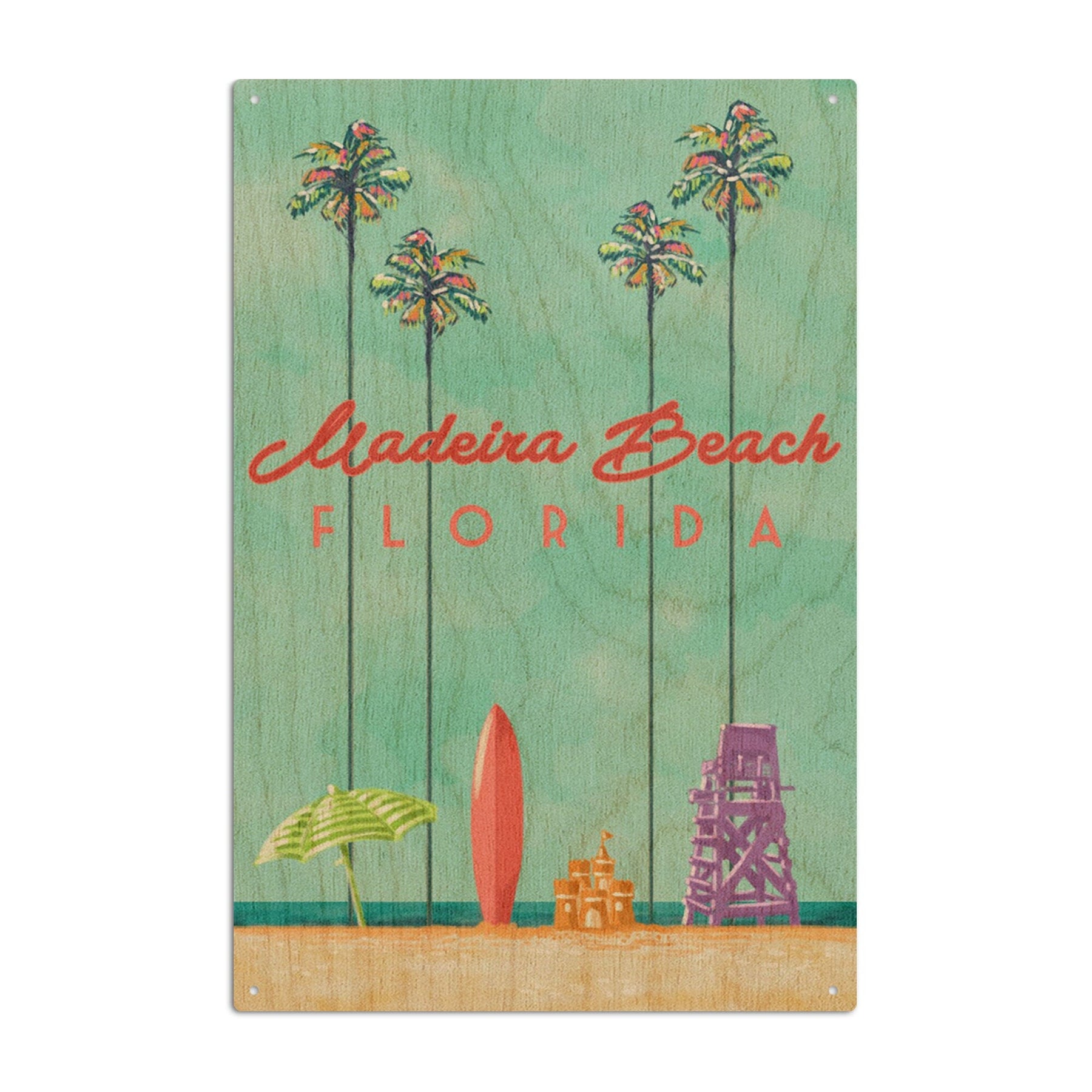 Madeira Beach, Florida, Tall Palms Beach Scene, Lantern Press Artwork, Wood Signs and Postcards