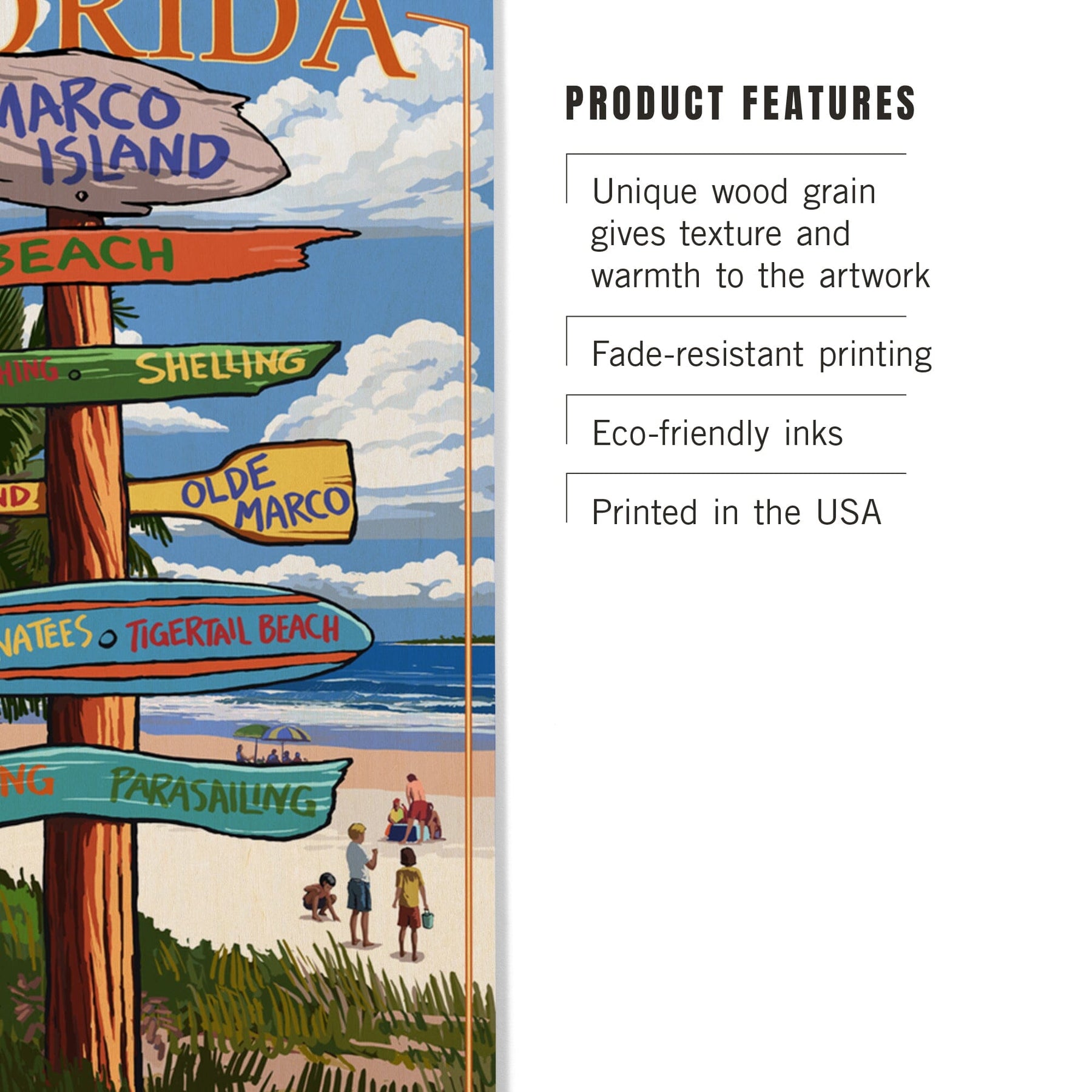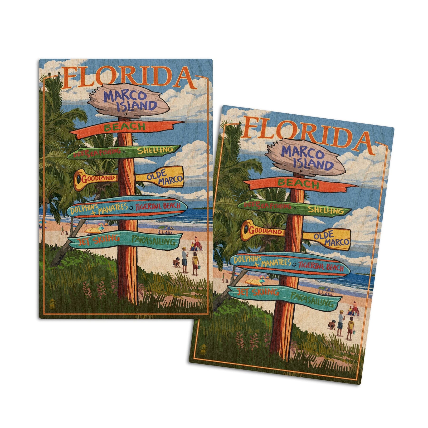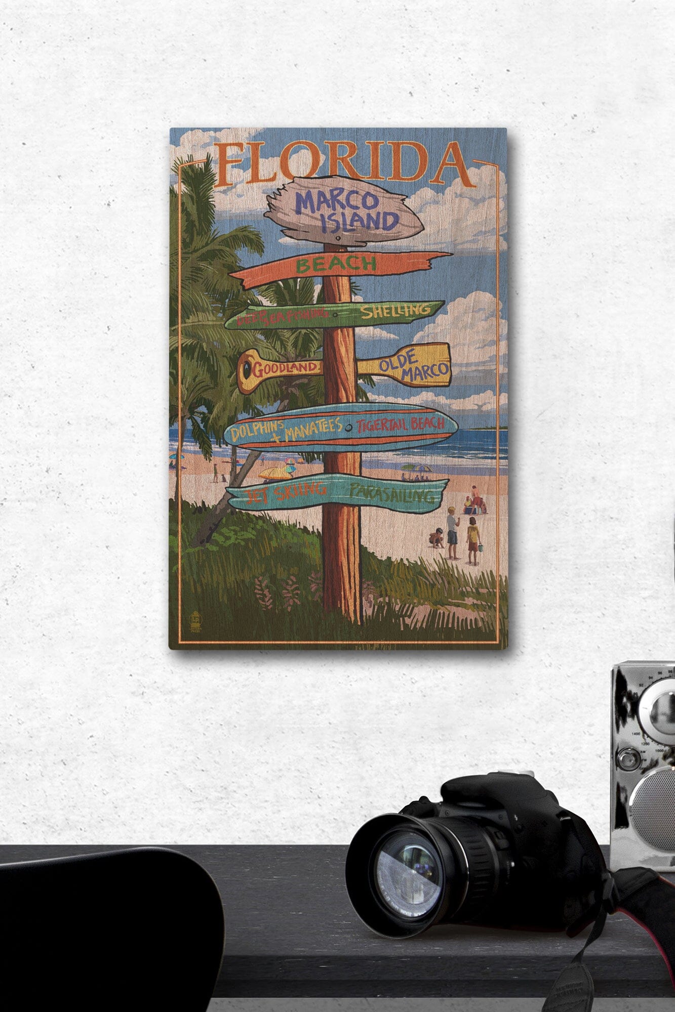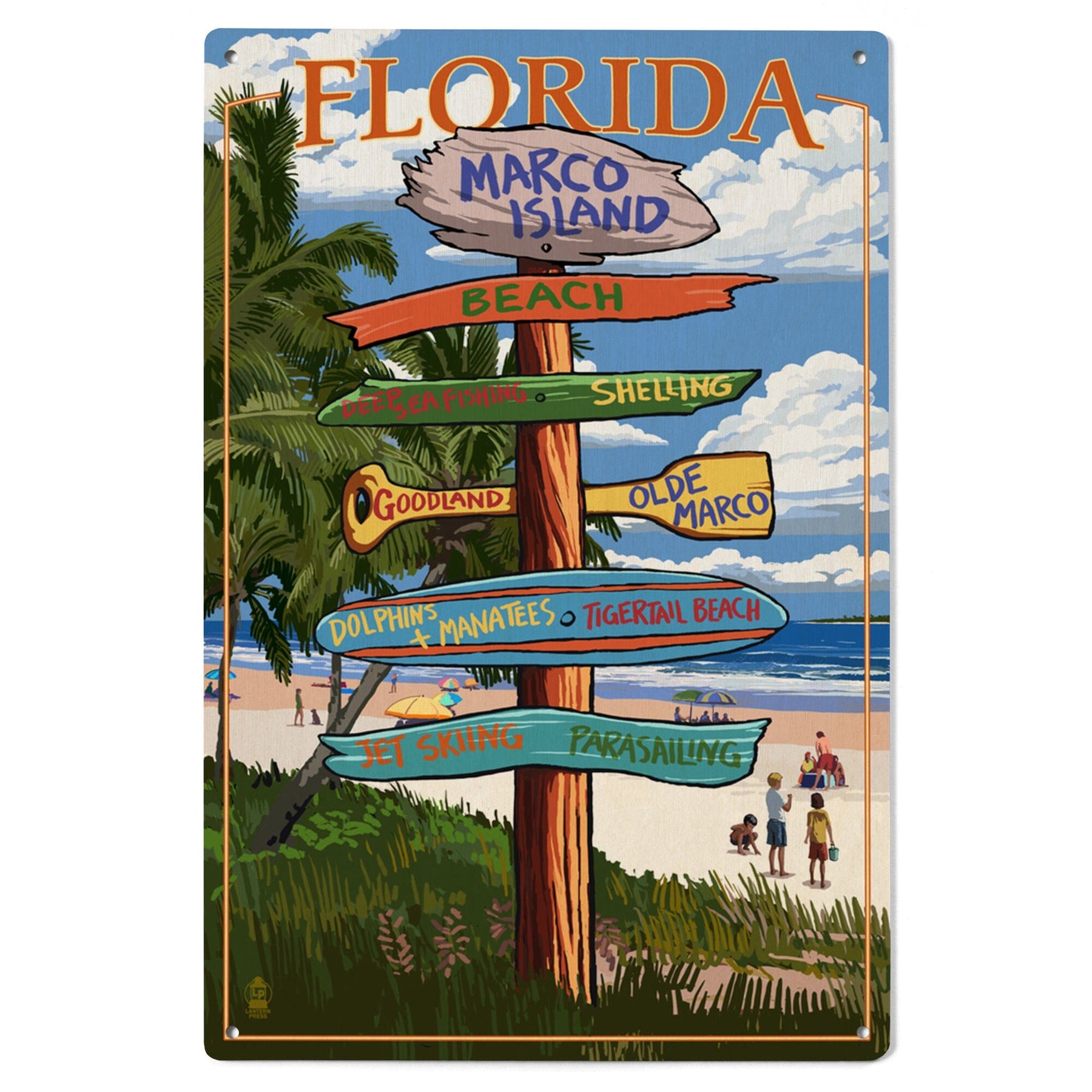 Marco Island, Florida, Destinations Sign, Lantern Press Artwork, Wood Signs and Postcards