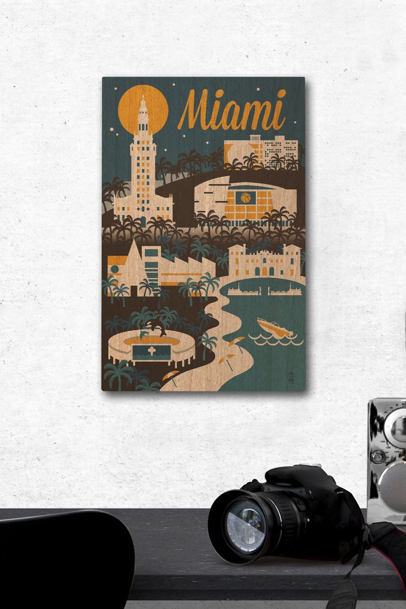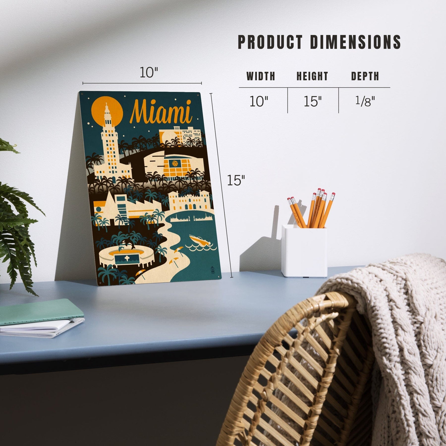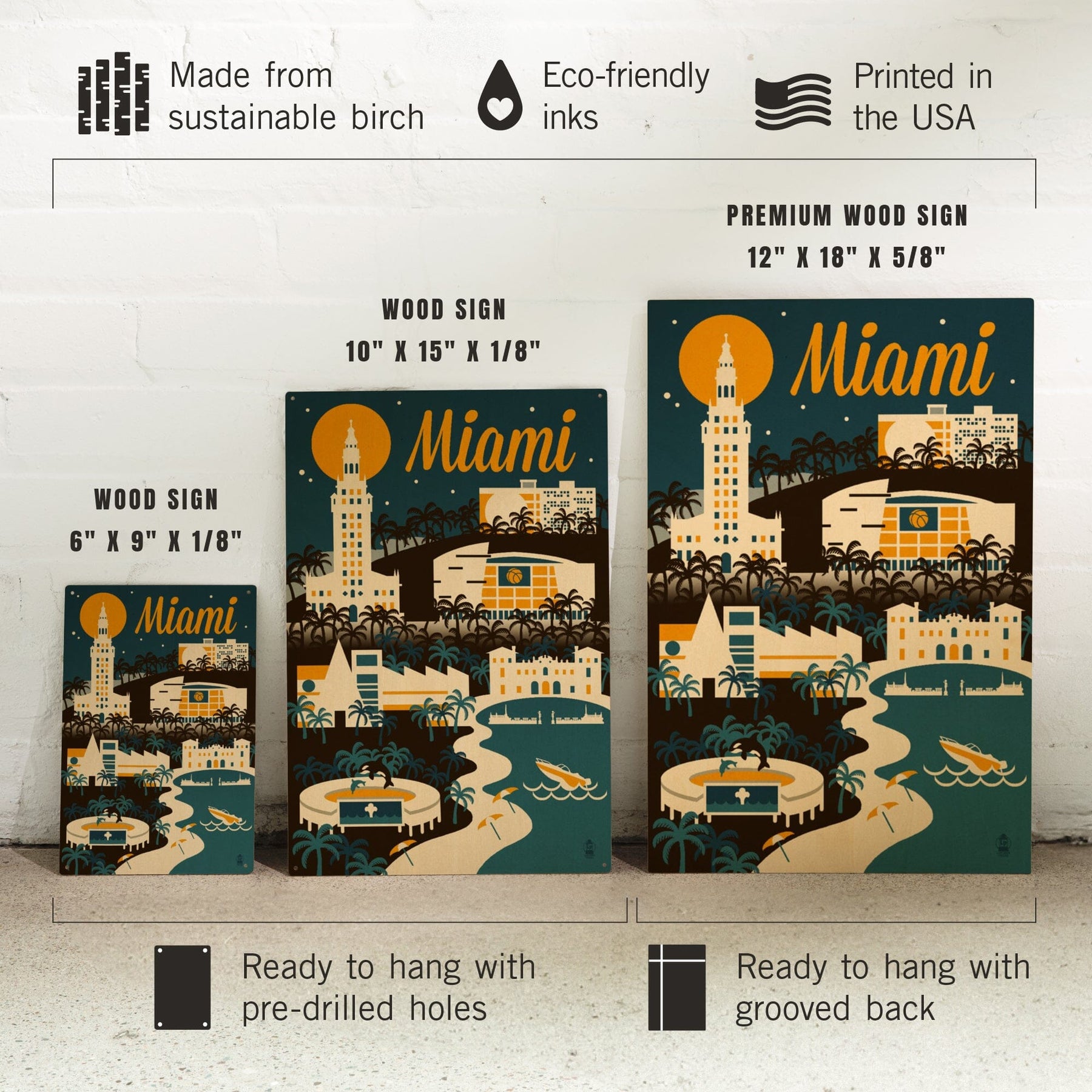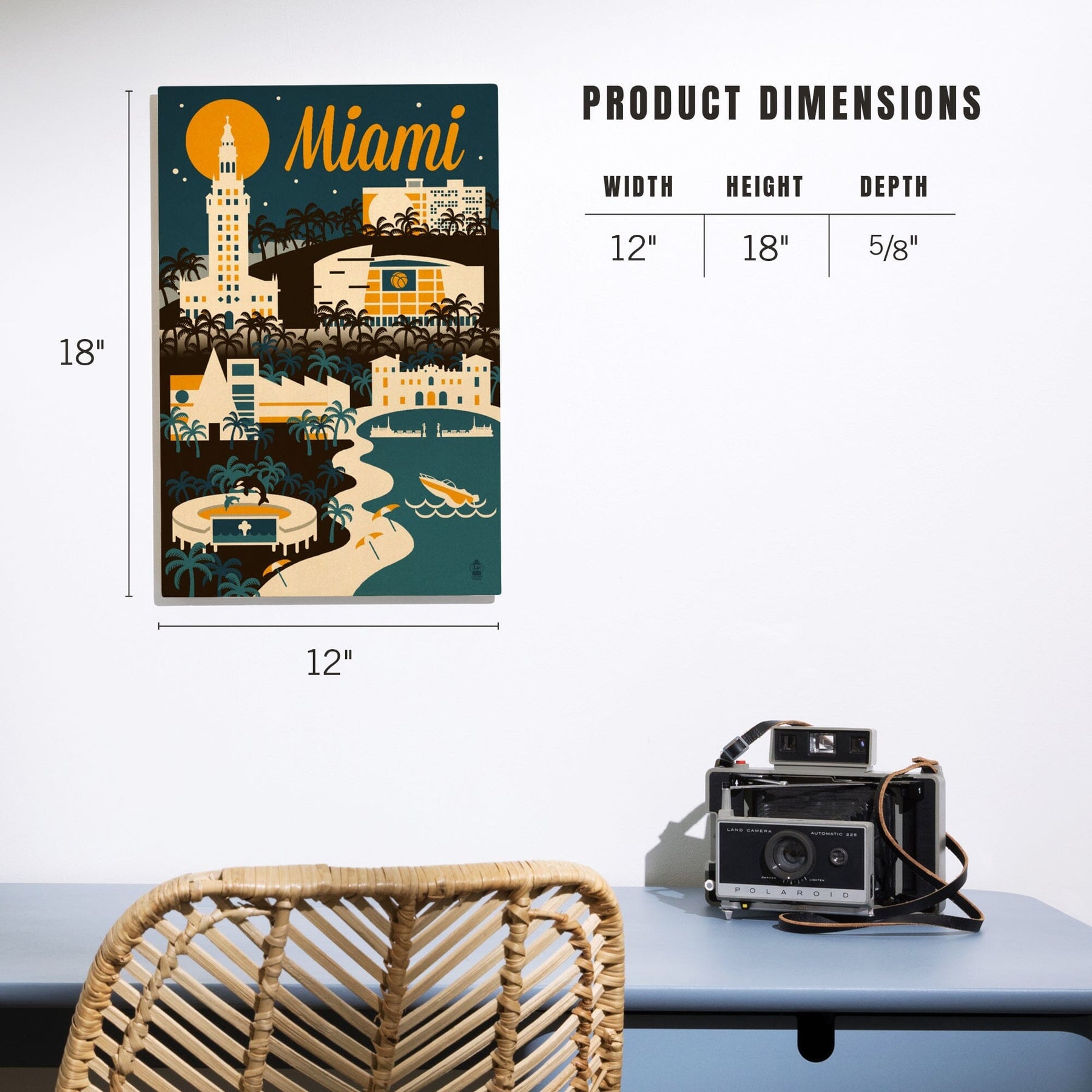 Miami, Florida, Retro Skyline, Lantern Press Artwork, Wood Signs and Postcards