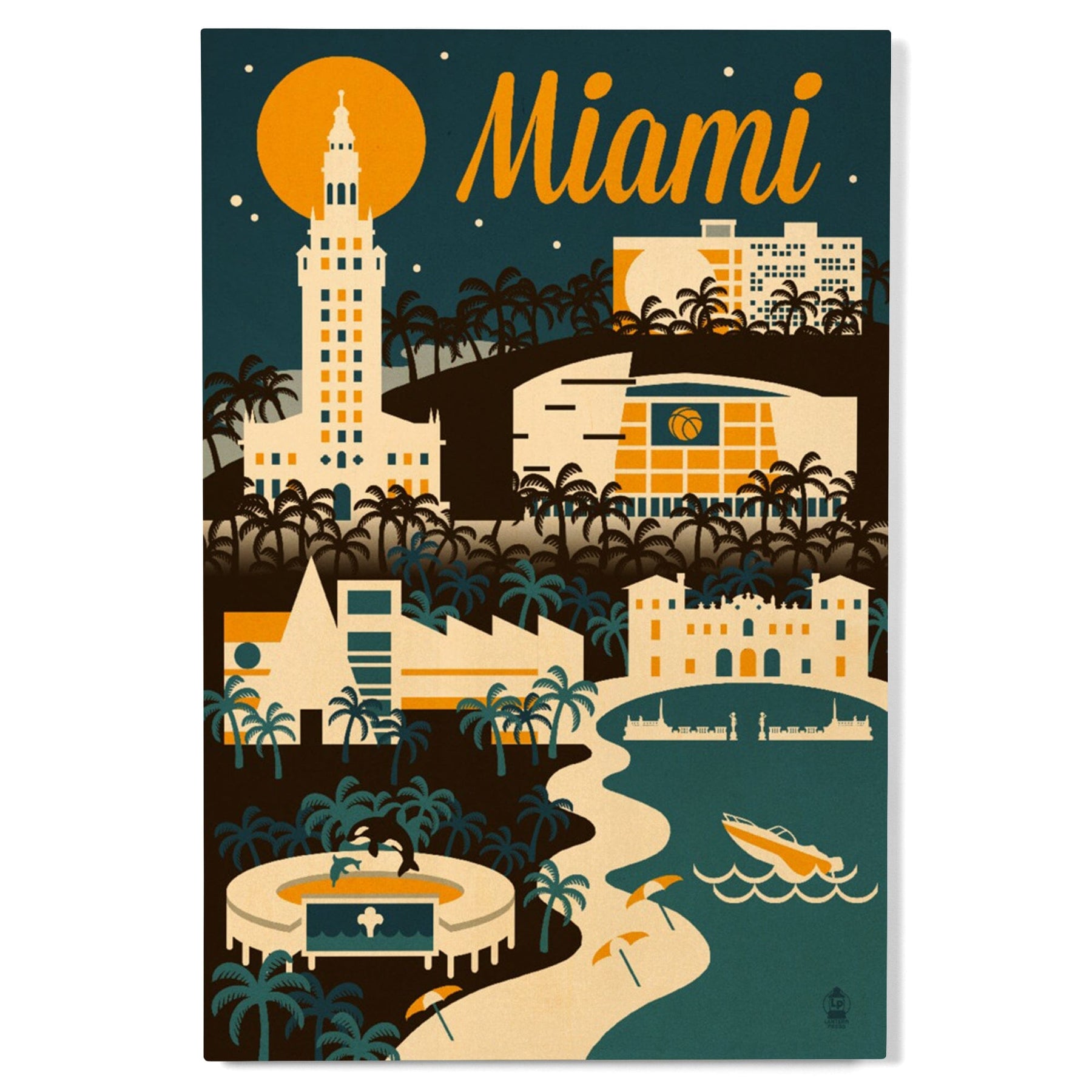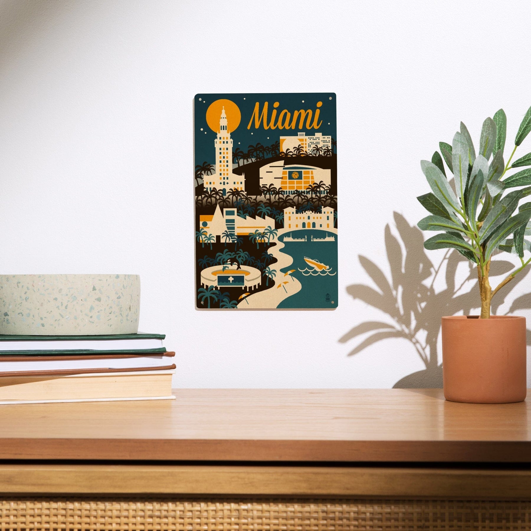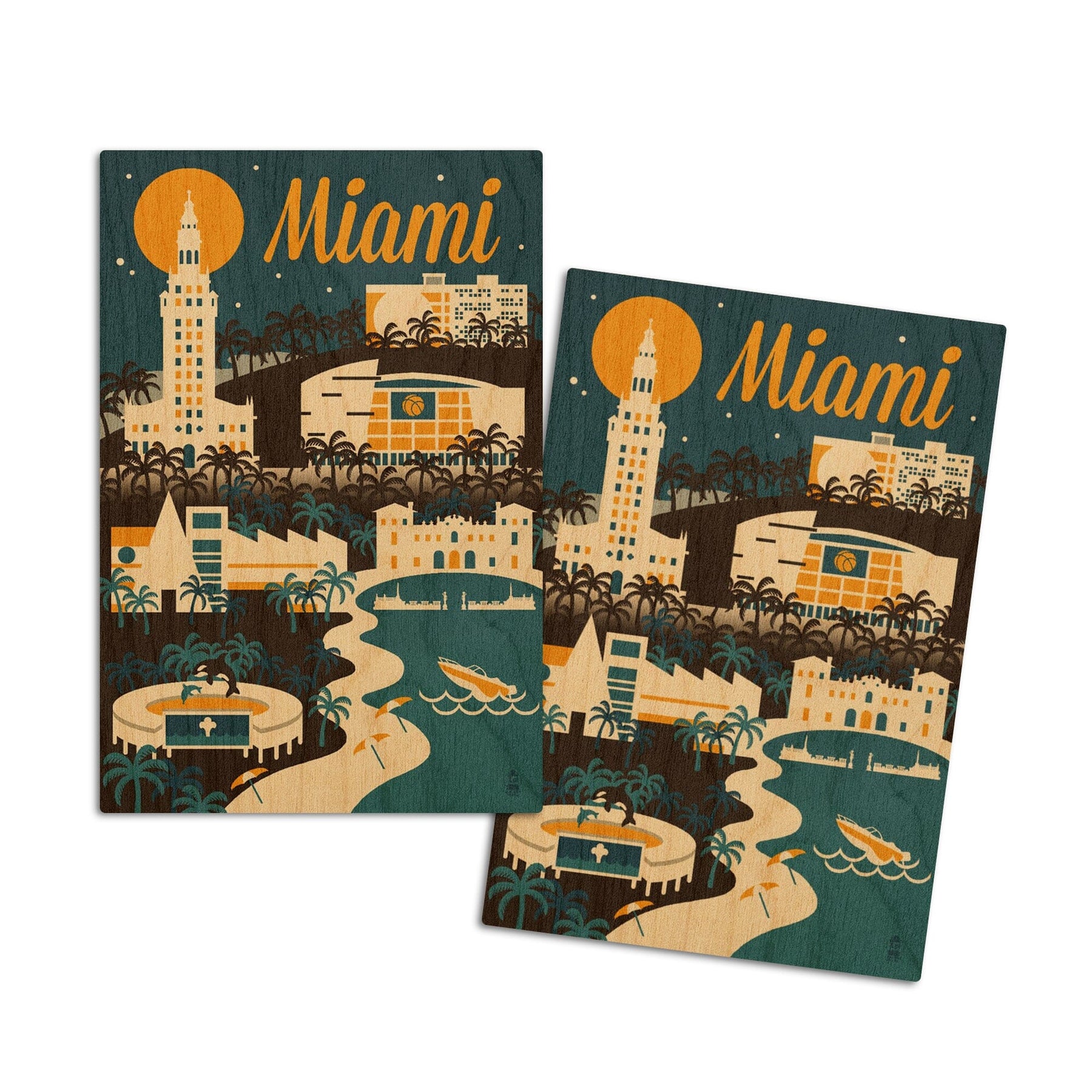 Miami, Florida, Retro Skyline, Lantern Press Artwork, Wood Signs and Postcards - Lantern Press
