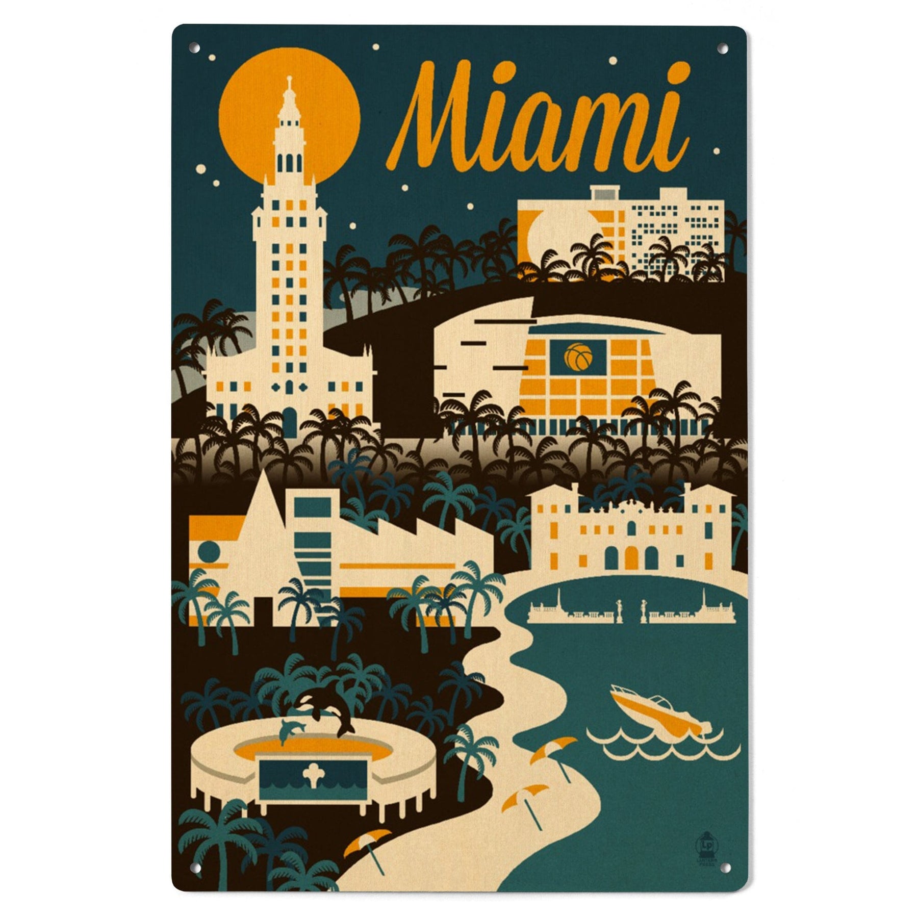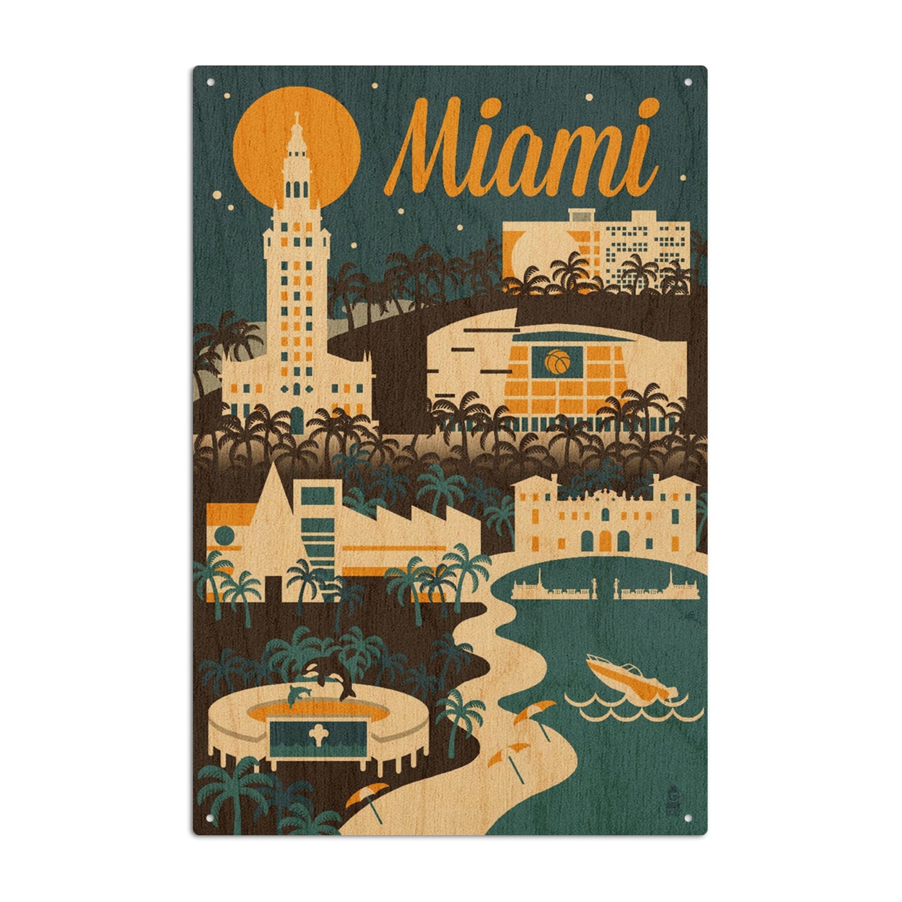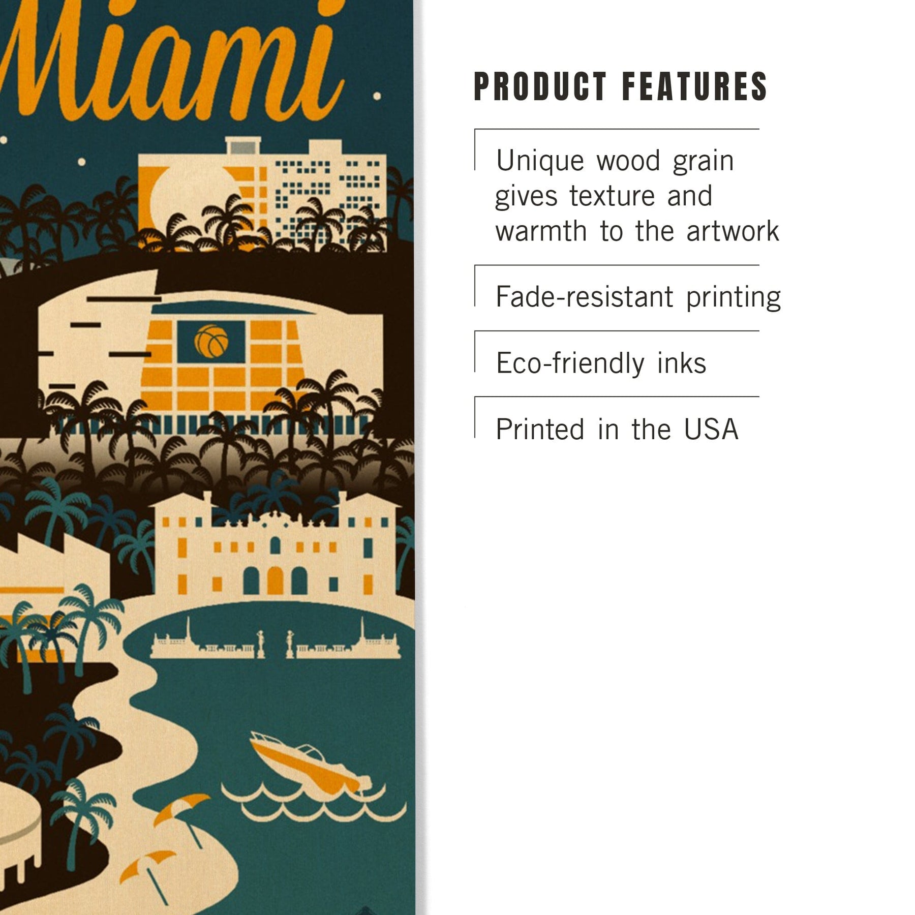 Miami, Florida, Retro Skyline, Lantern Press Artwork, Wood Signs and Postcards - Lantern Press
