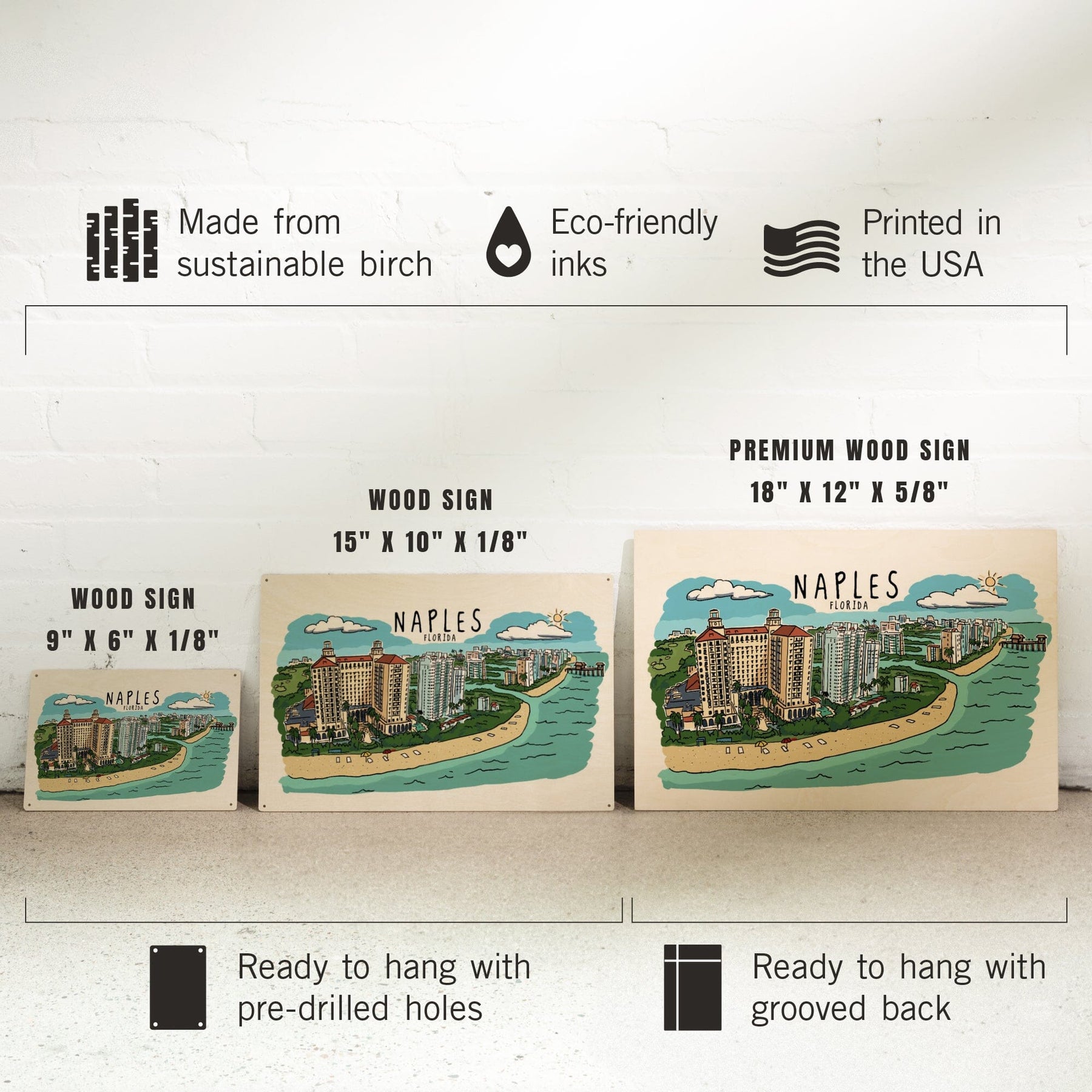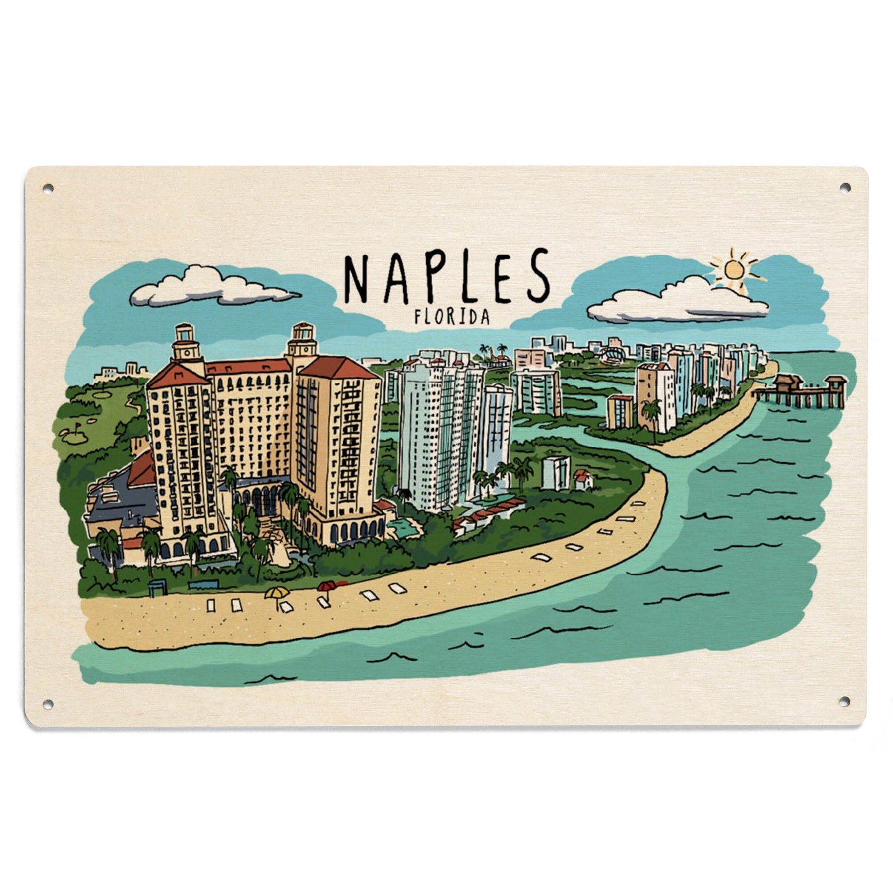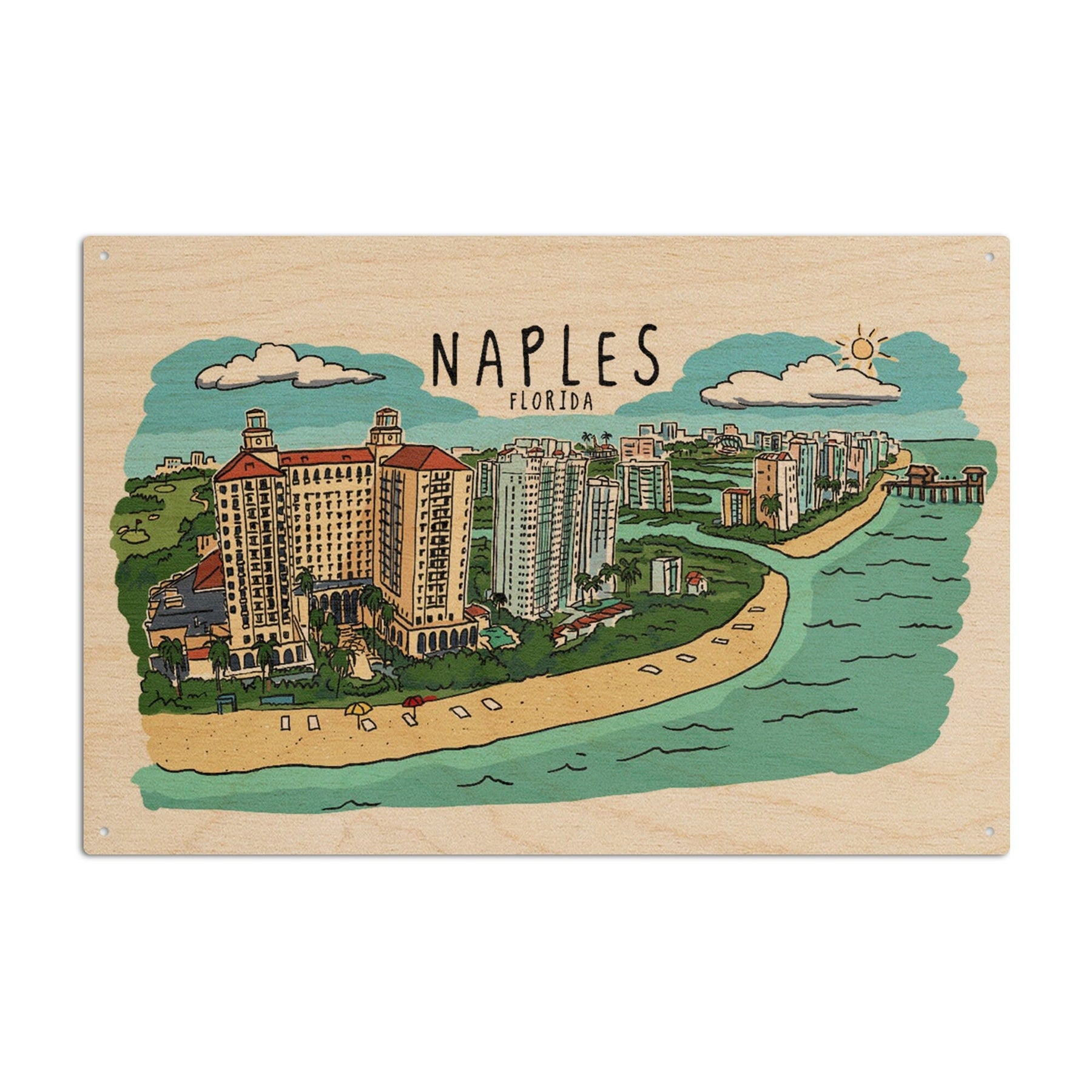 Naples, Florida, Line Drawing, Lantern Press Artwork, Wood Signs and Postcards