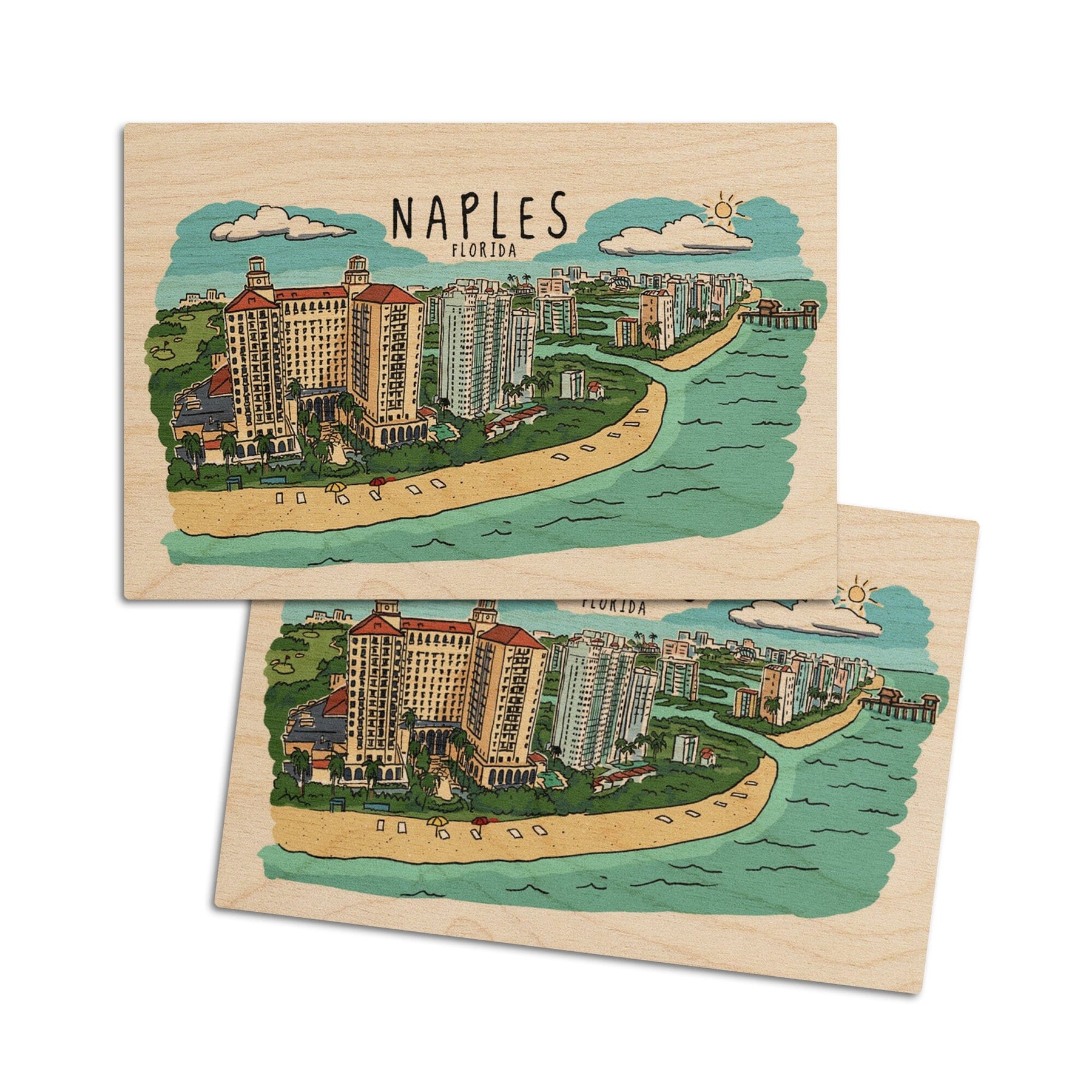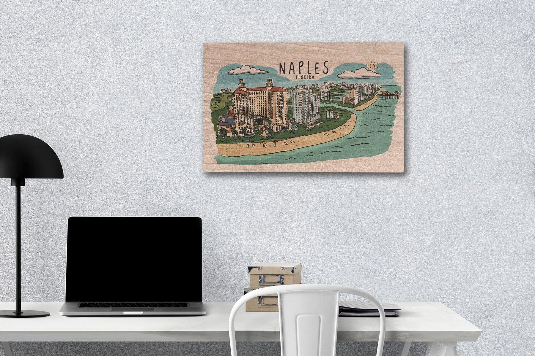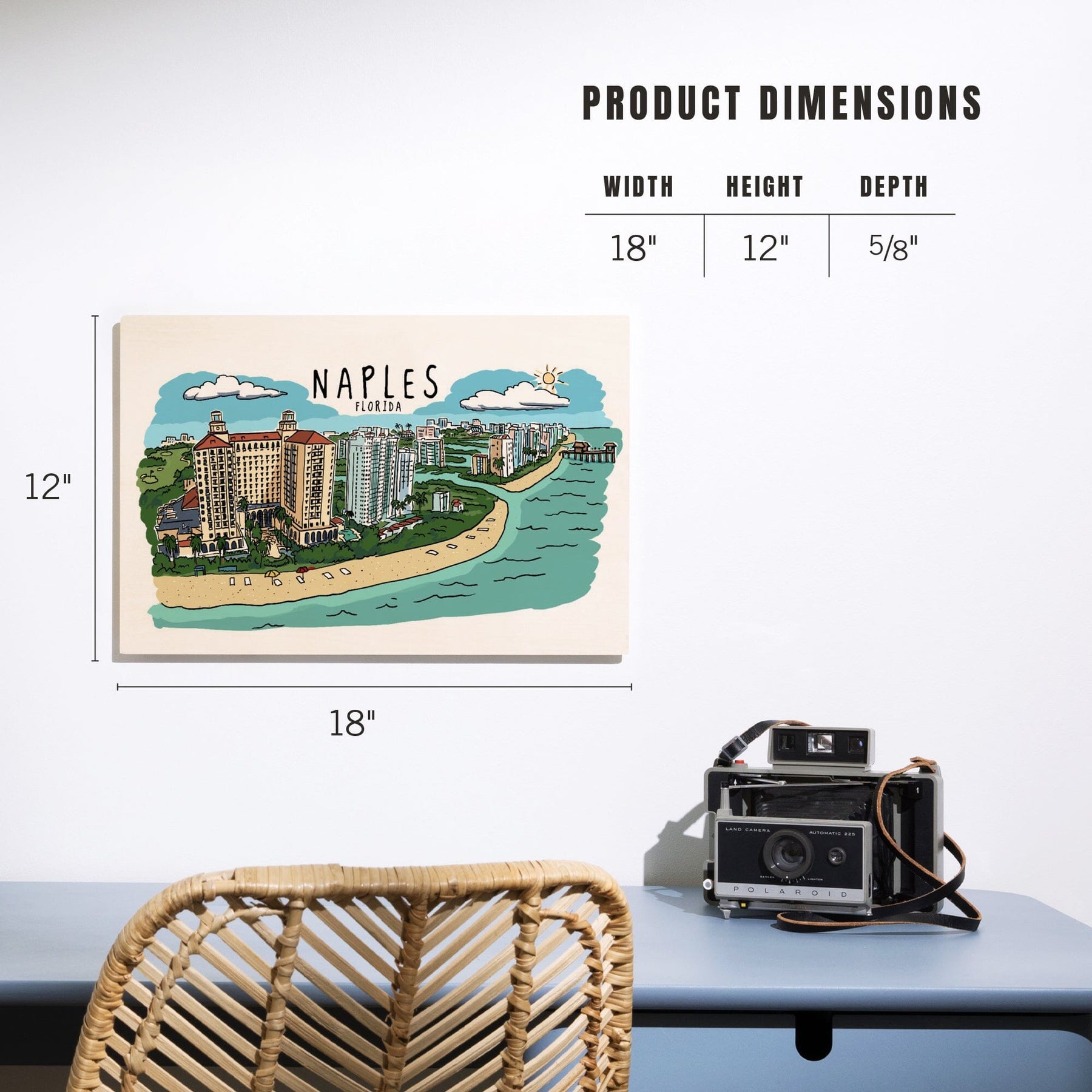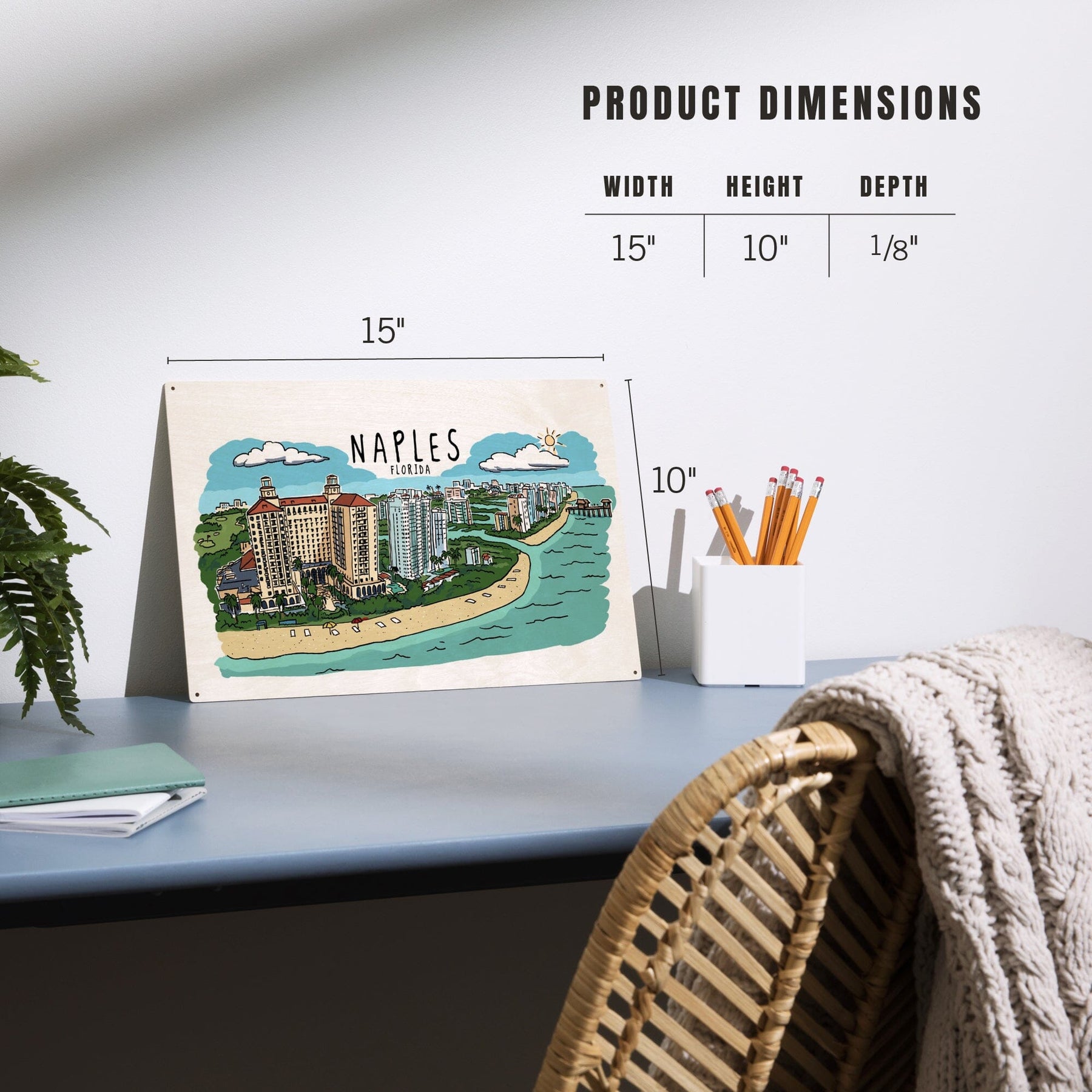 Naples, Florida, Line Drawing, Lantern Press Artwork, Wood Signs and Postcards