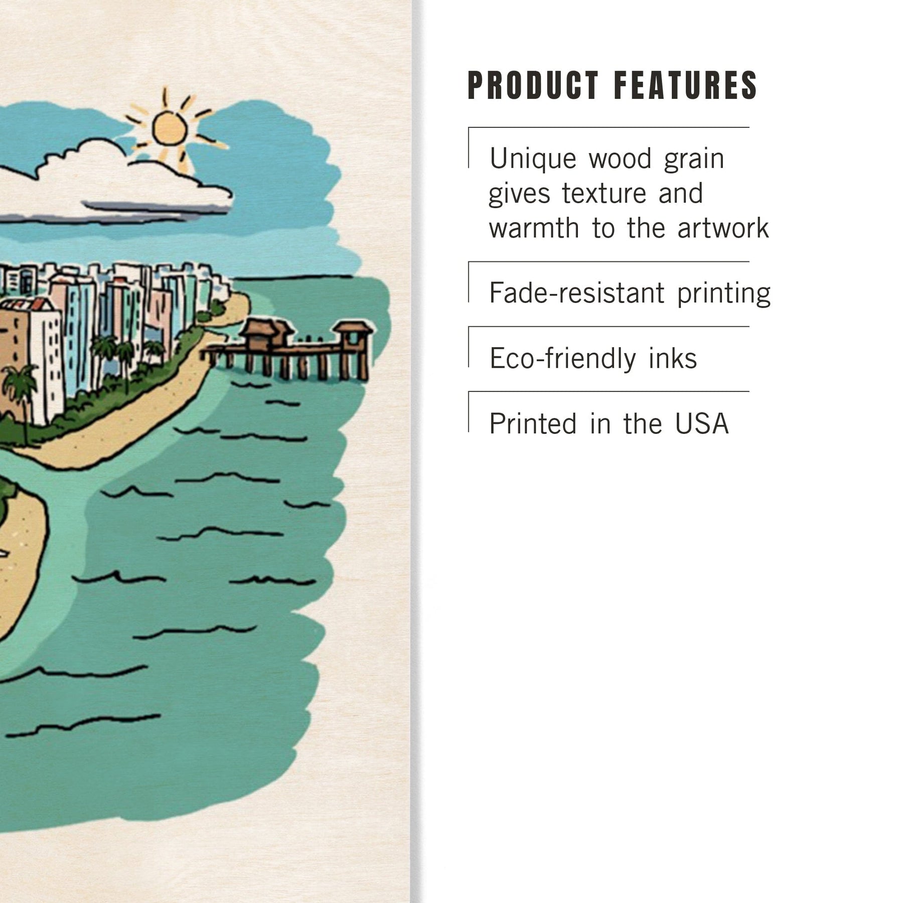 Naples, Florida, Line Drawing, Lantern Press Artwork, Wood Signs and Postcards Wood Lantern Press