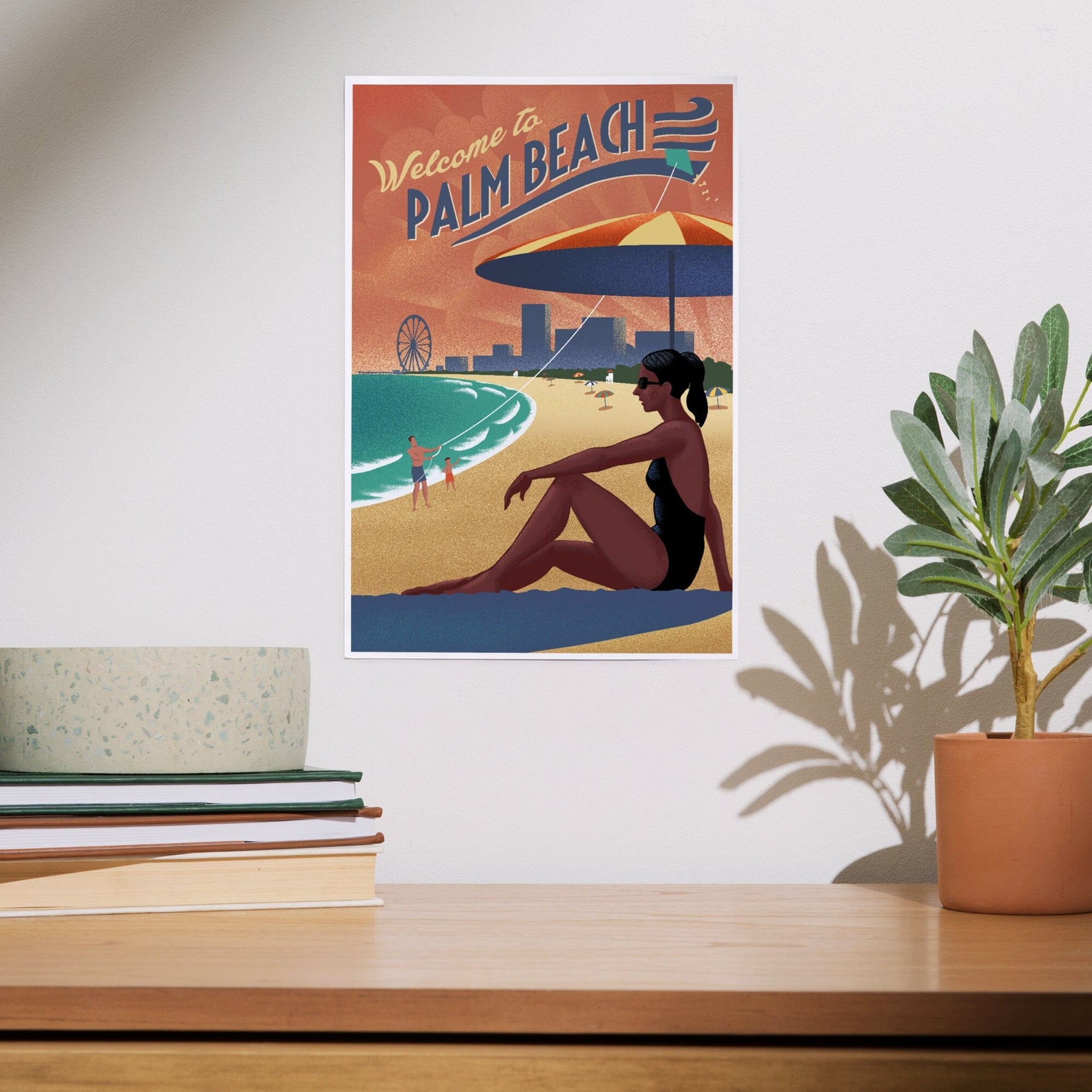 Palm Beach, Florida, Beach Scene, Lithograph, Art & Giclee Prints Art Lantern Press