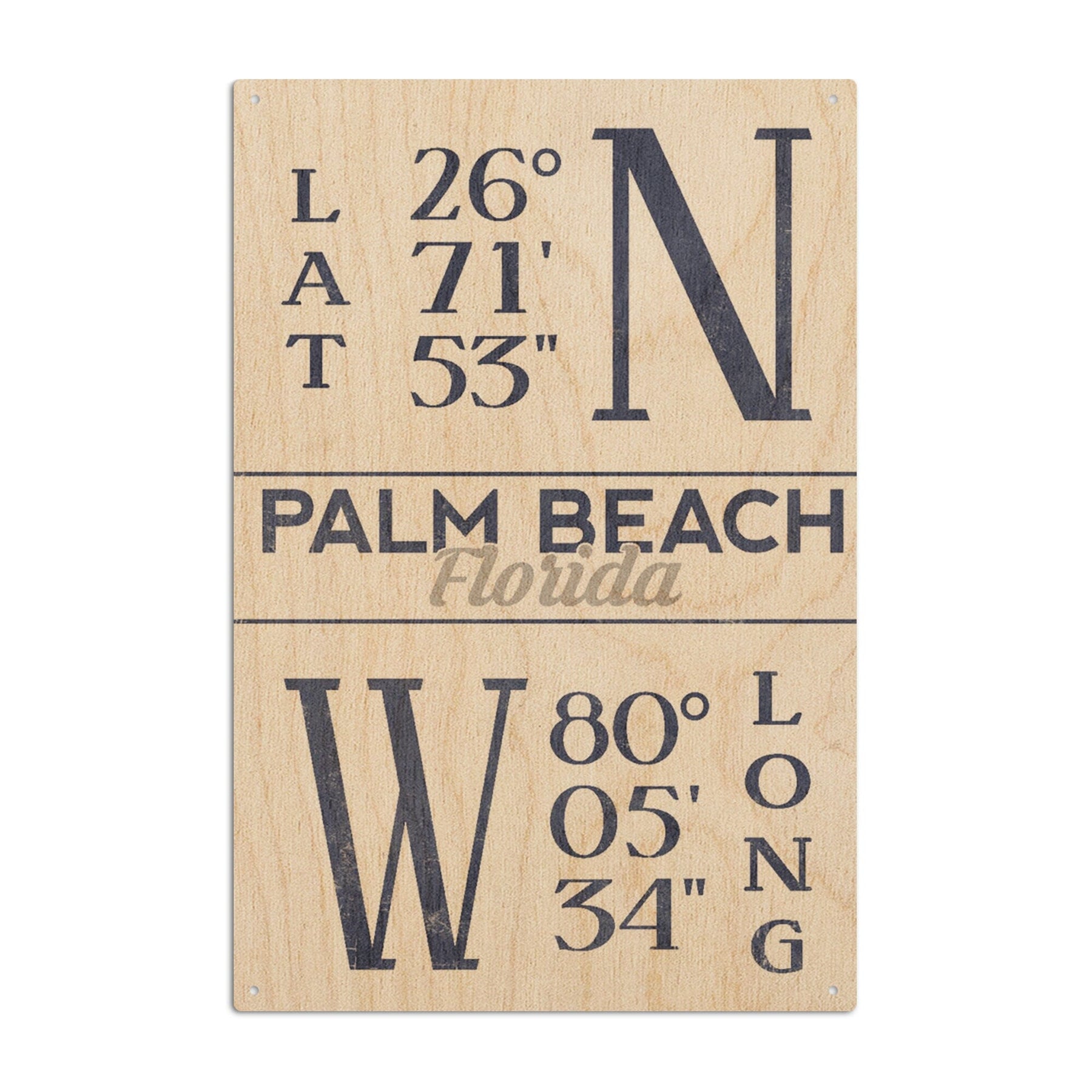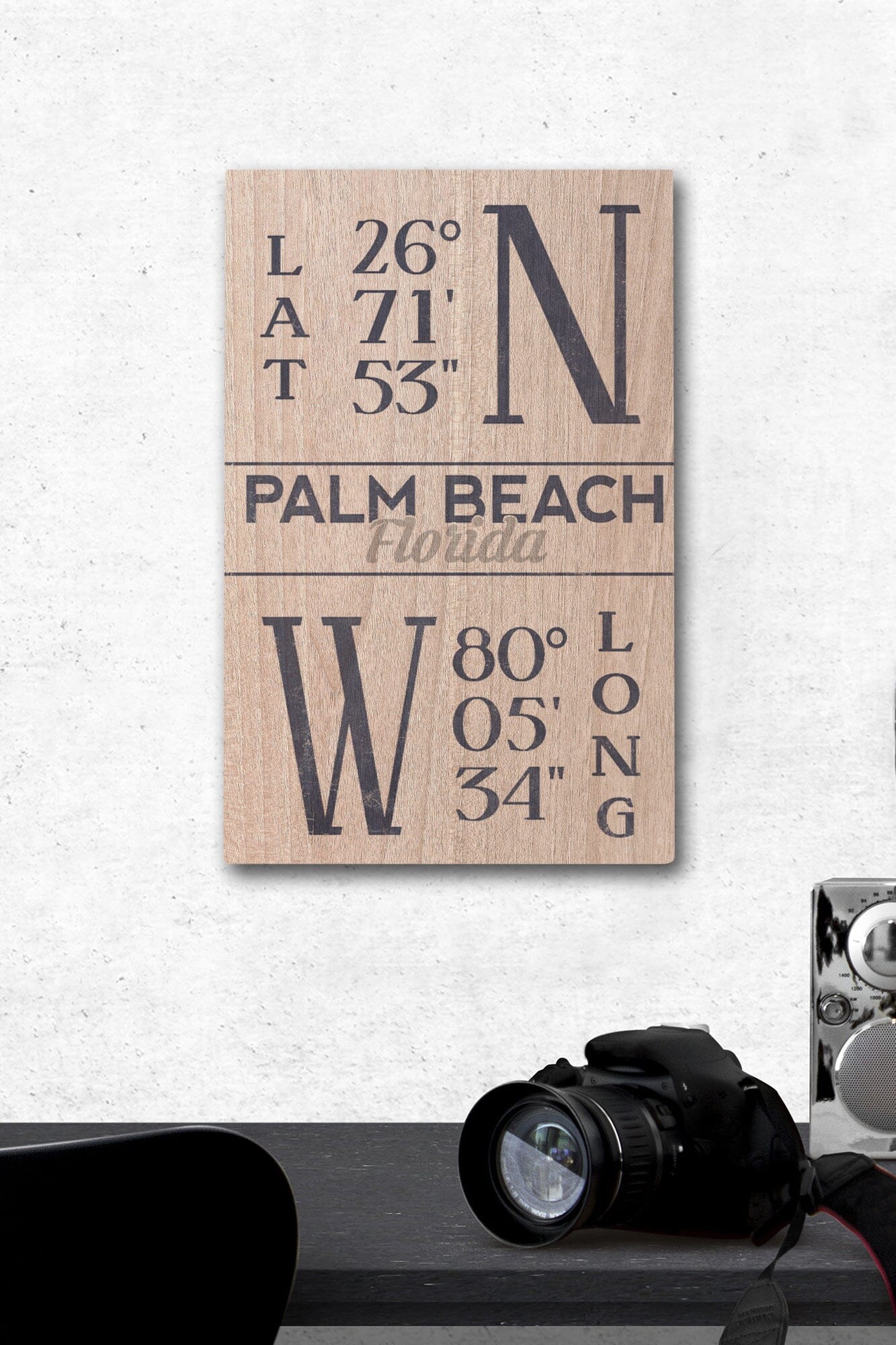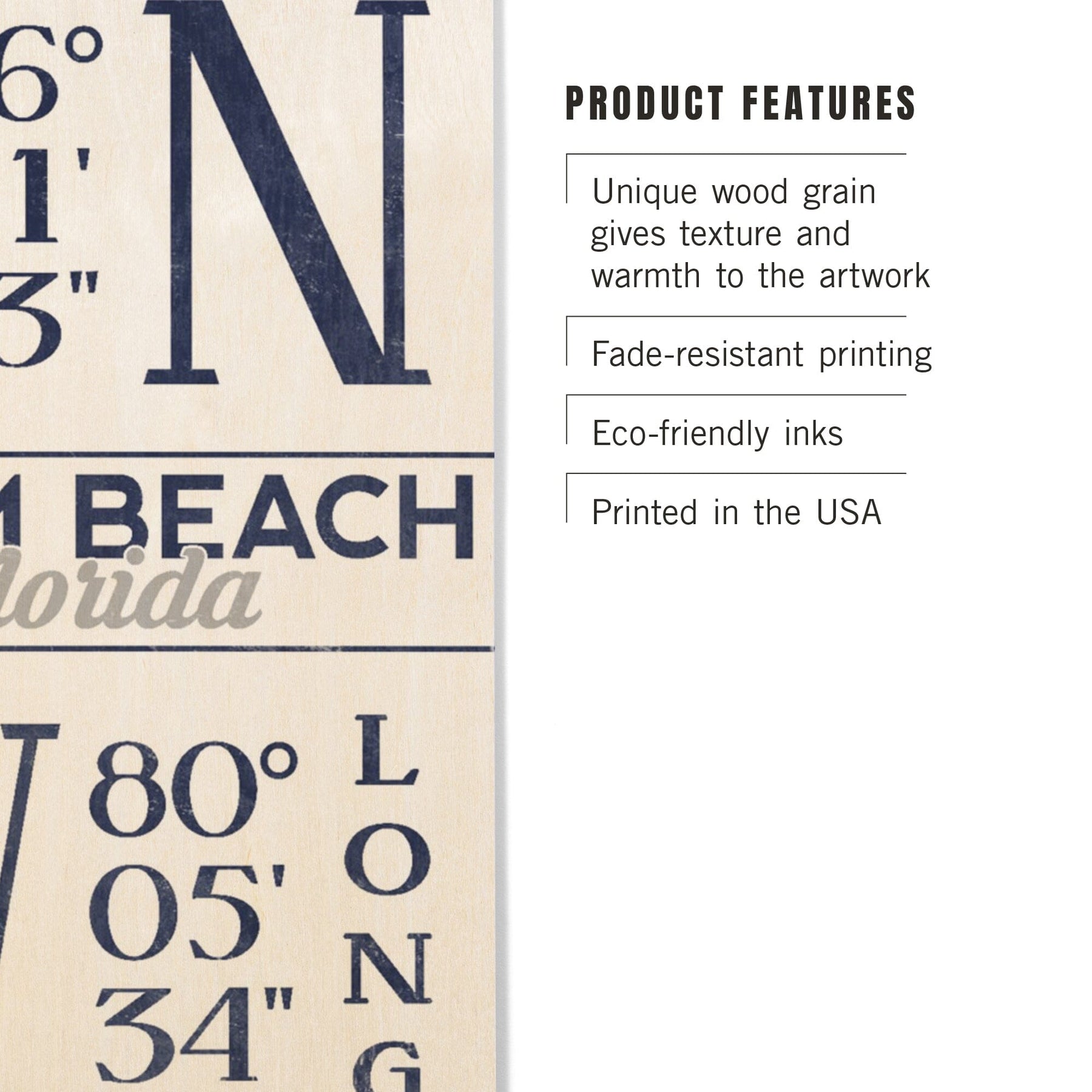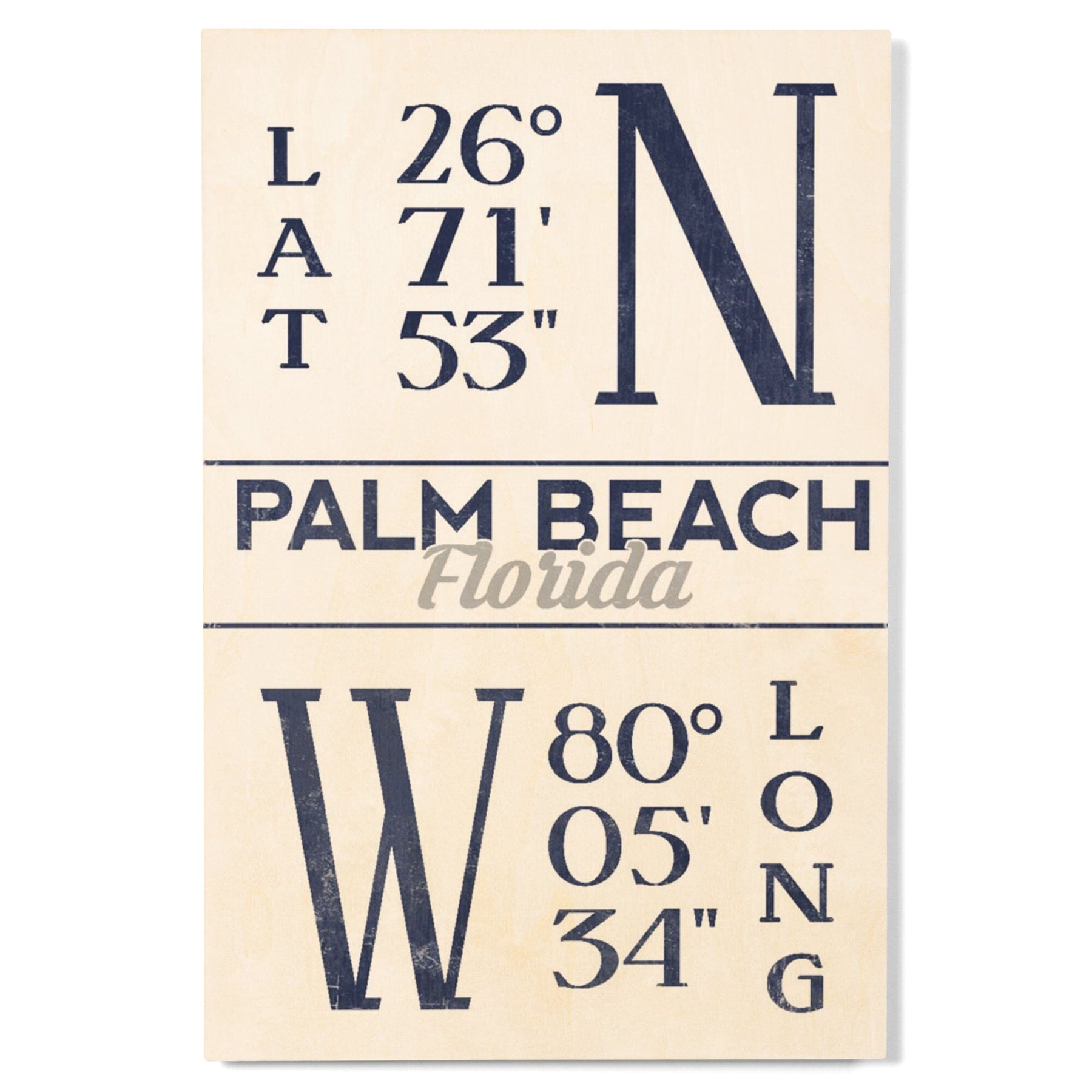 Palm Beach, Florida, Latitude & Longitude (Blue), Lantern Press Artwork, Wood Signs and Postcards Wood Lantern Press