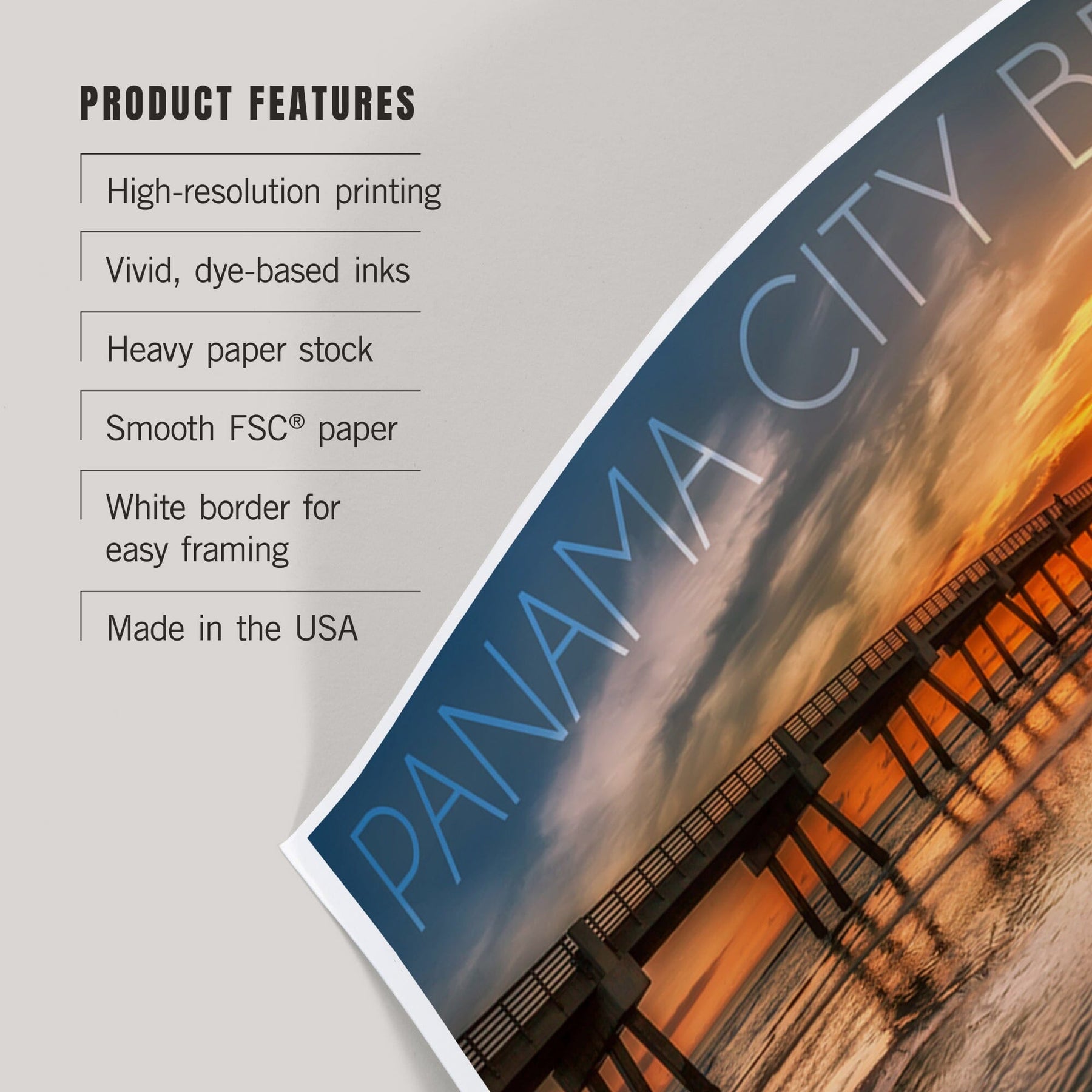 Panama City Beach, Florida, Pier and Sunset, Art & Giclee Prints Art Lantern Press