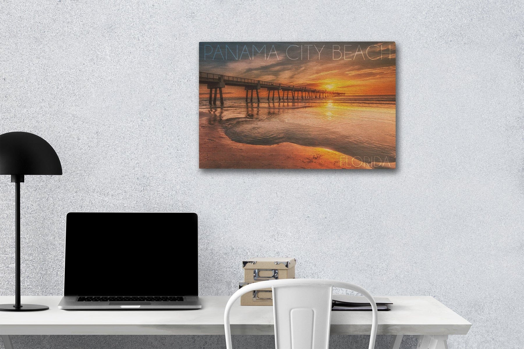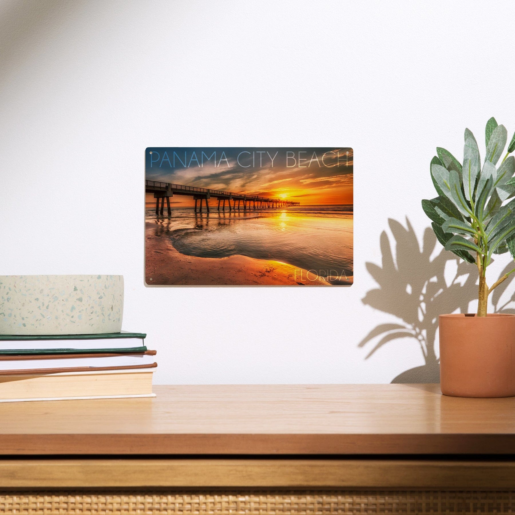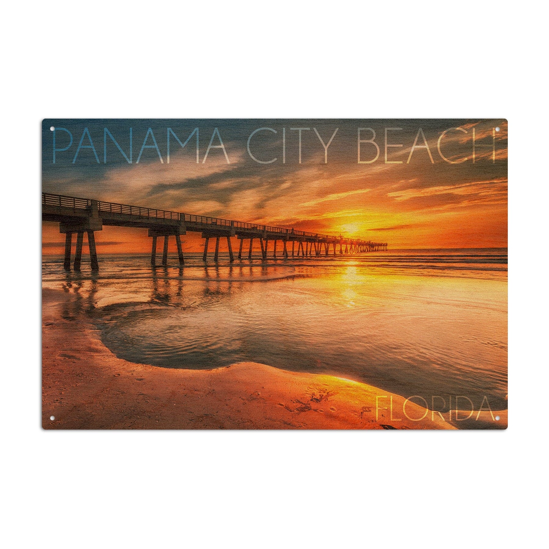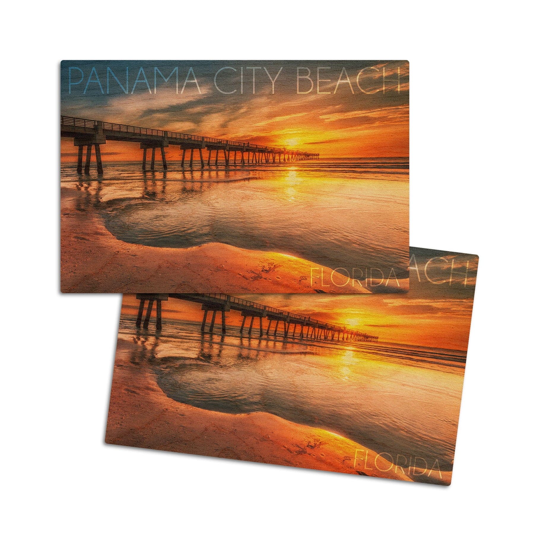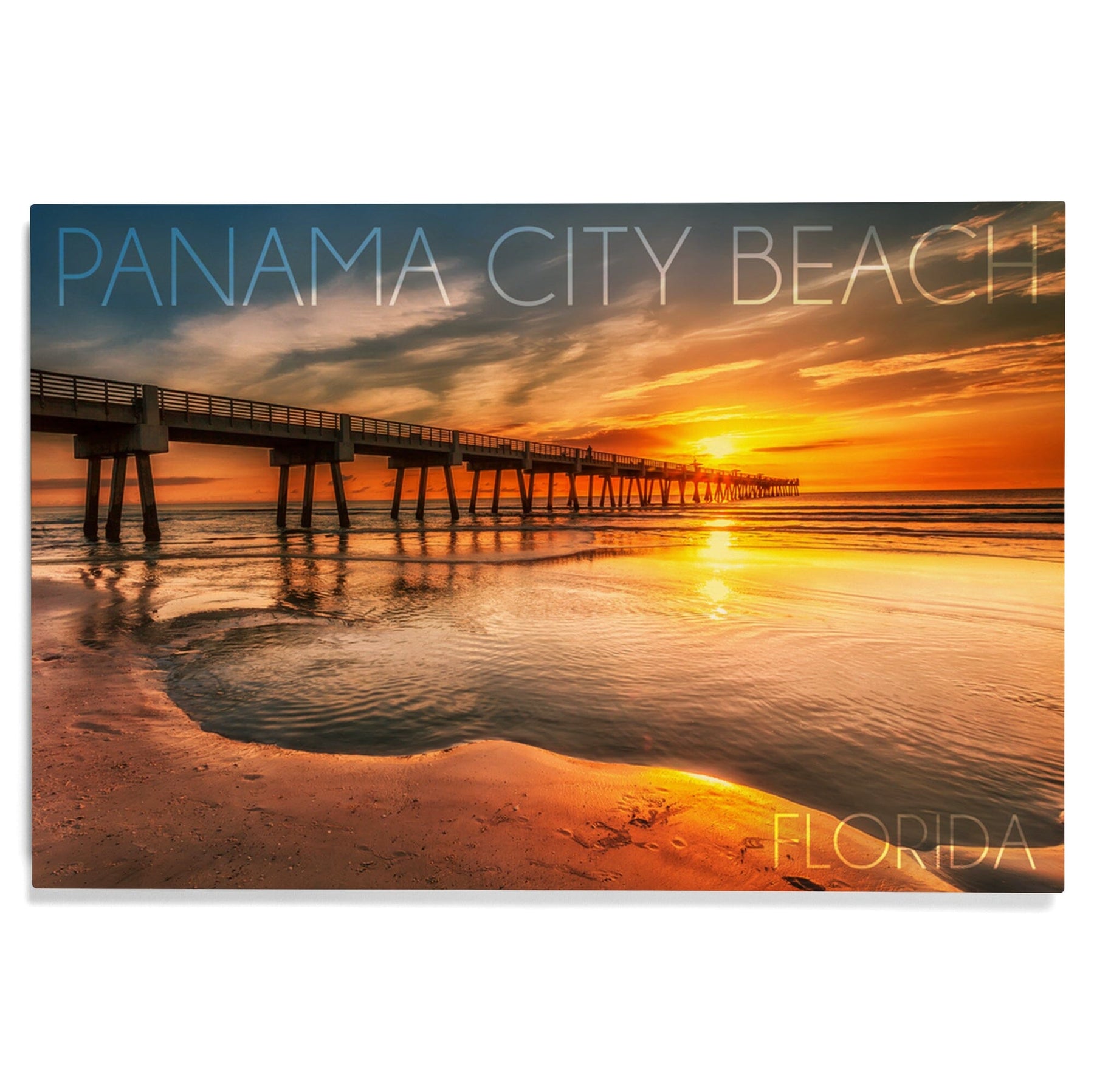 Panama City Beach, Florida, Pier & Sunset, Lantern Press Photography, Wood Signs and Postcards Wood Lantern Press