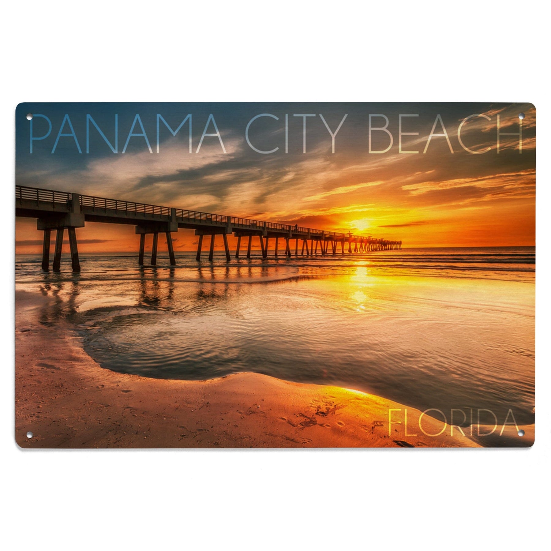 Panama City Beach, Florida, Pier & Sunset, Lantern Press Photography, Wood Signs and Postcards