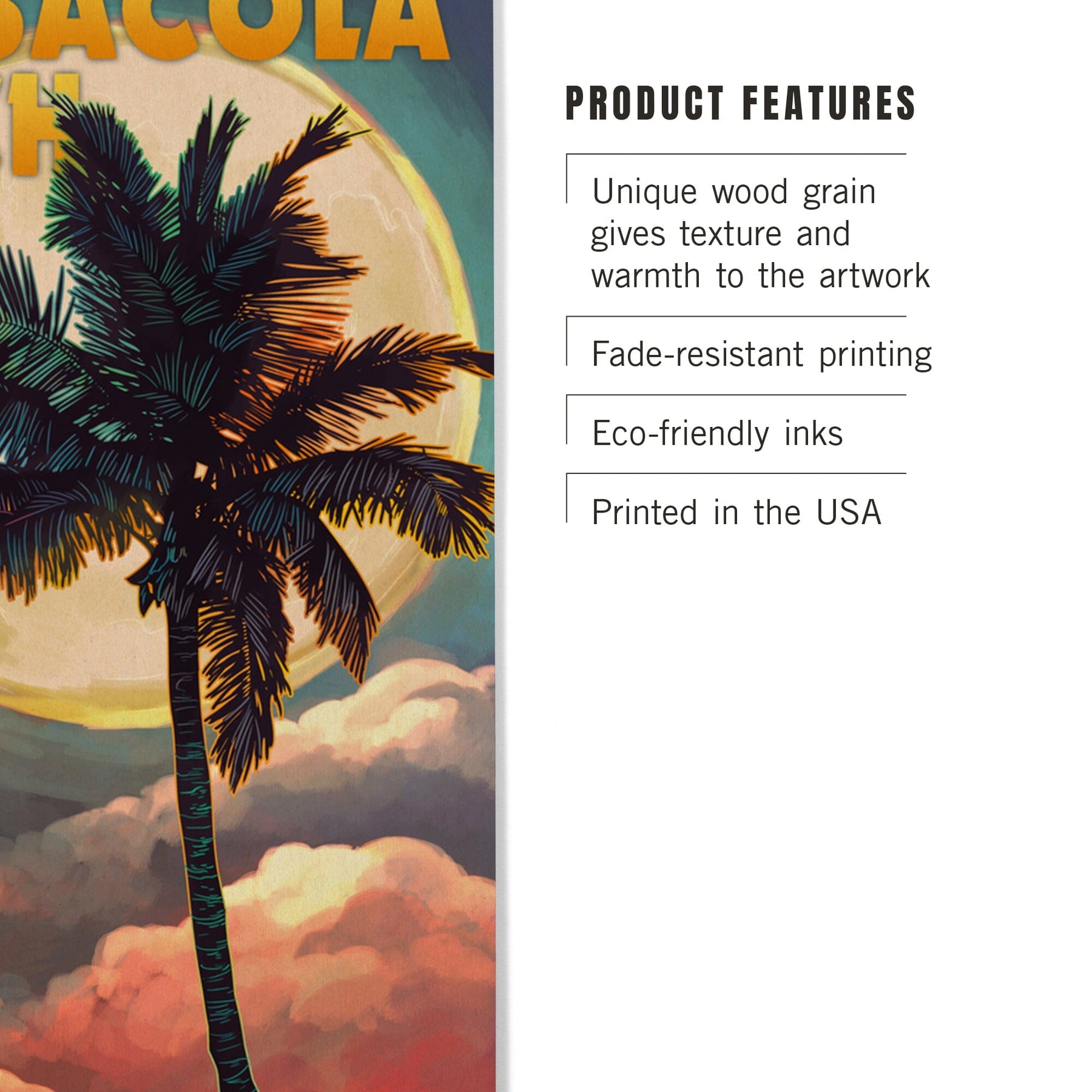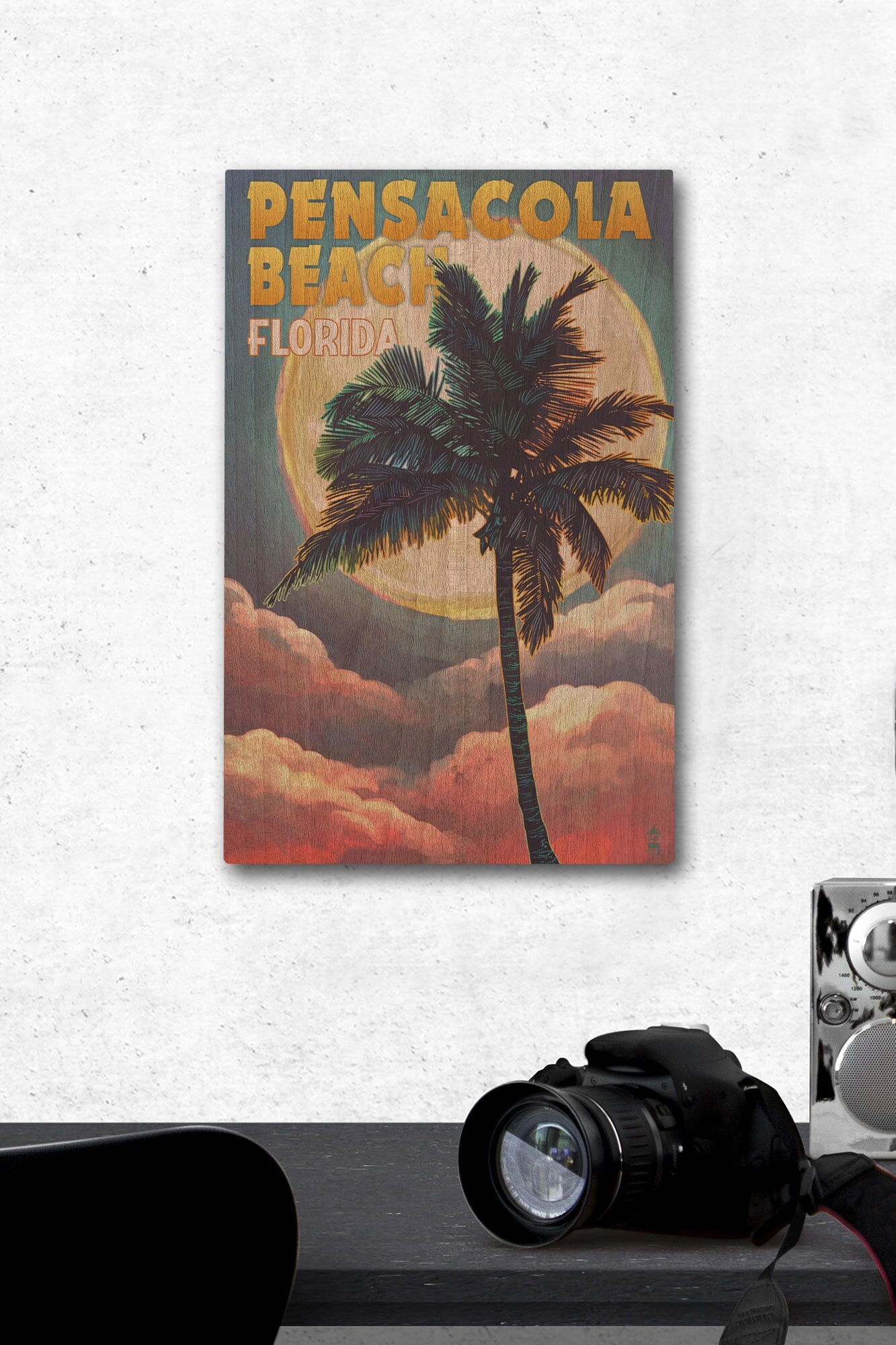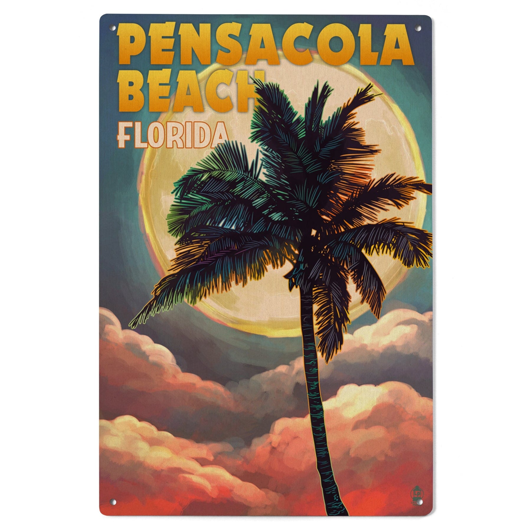 Pensacola Beach, Florida, Palm & Moon, Lantern Press Artwork, Wood Signs and Postcards