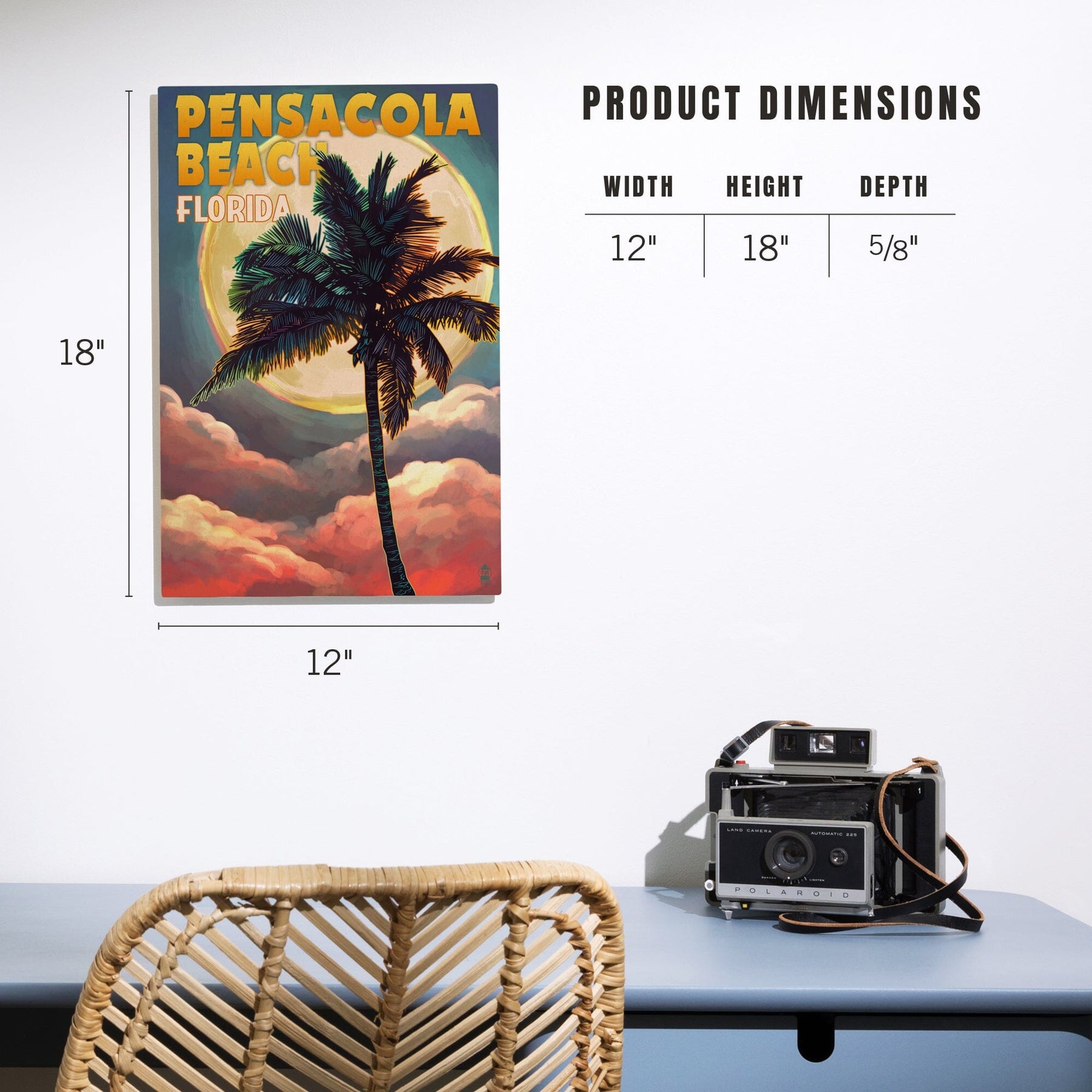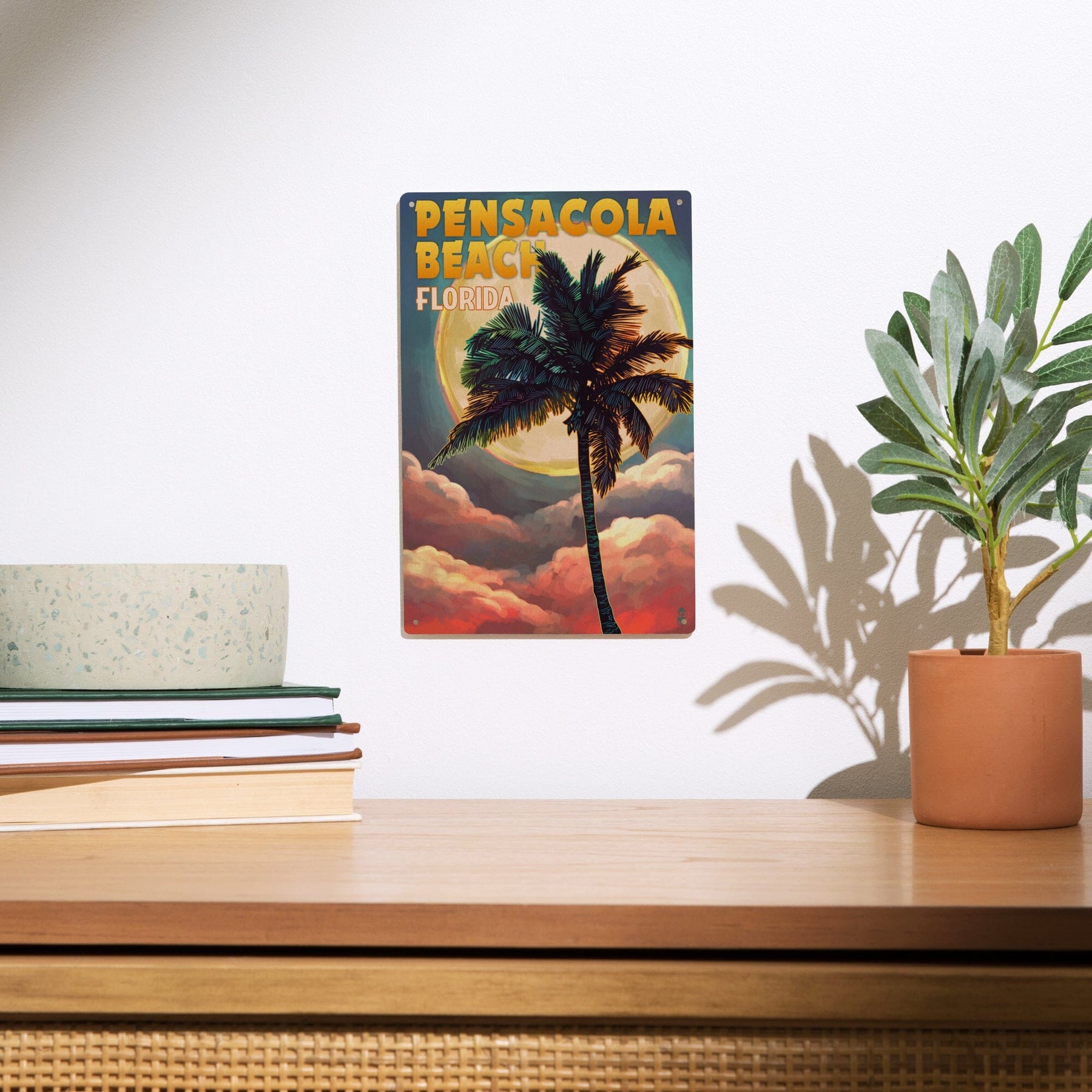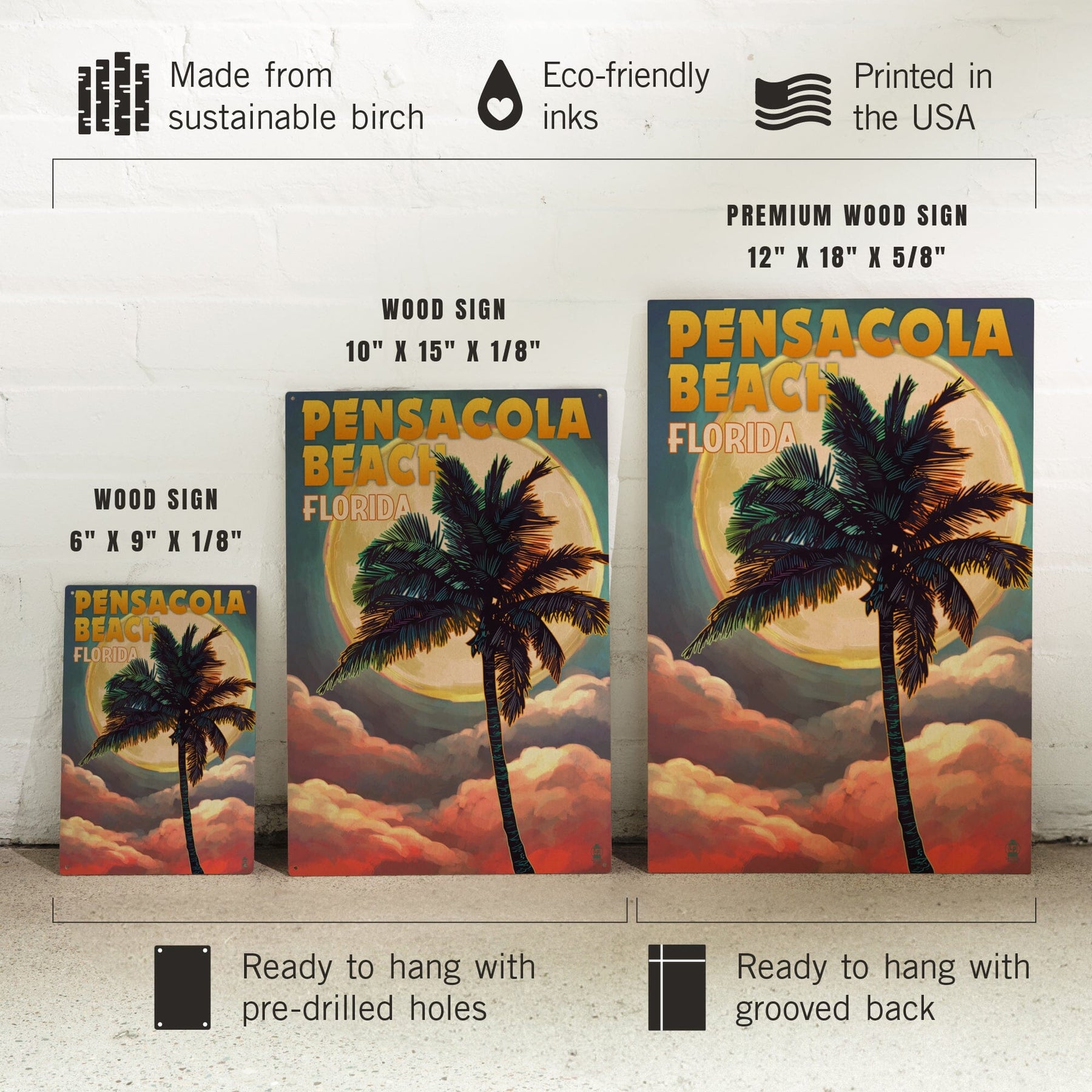 Pensacola Beach, Florida, Palm & Moon, Lantern Press Artwork, Wood Signs and Postcards