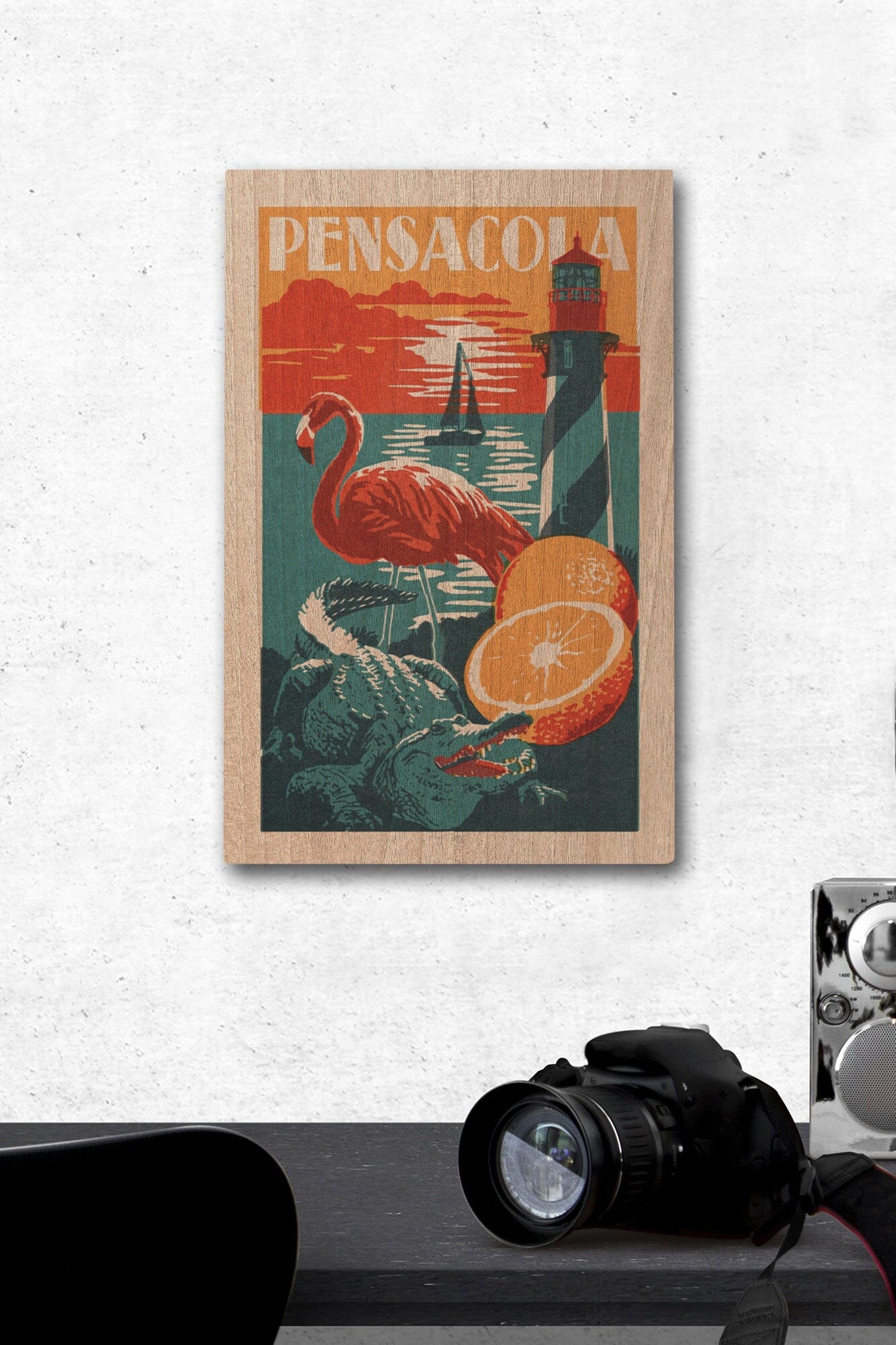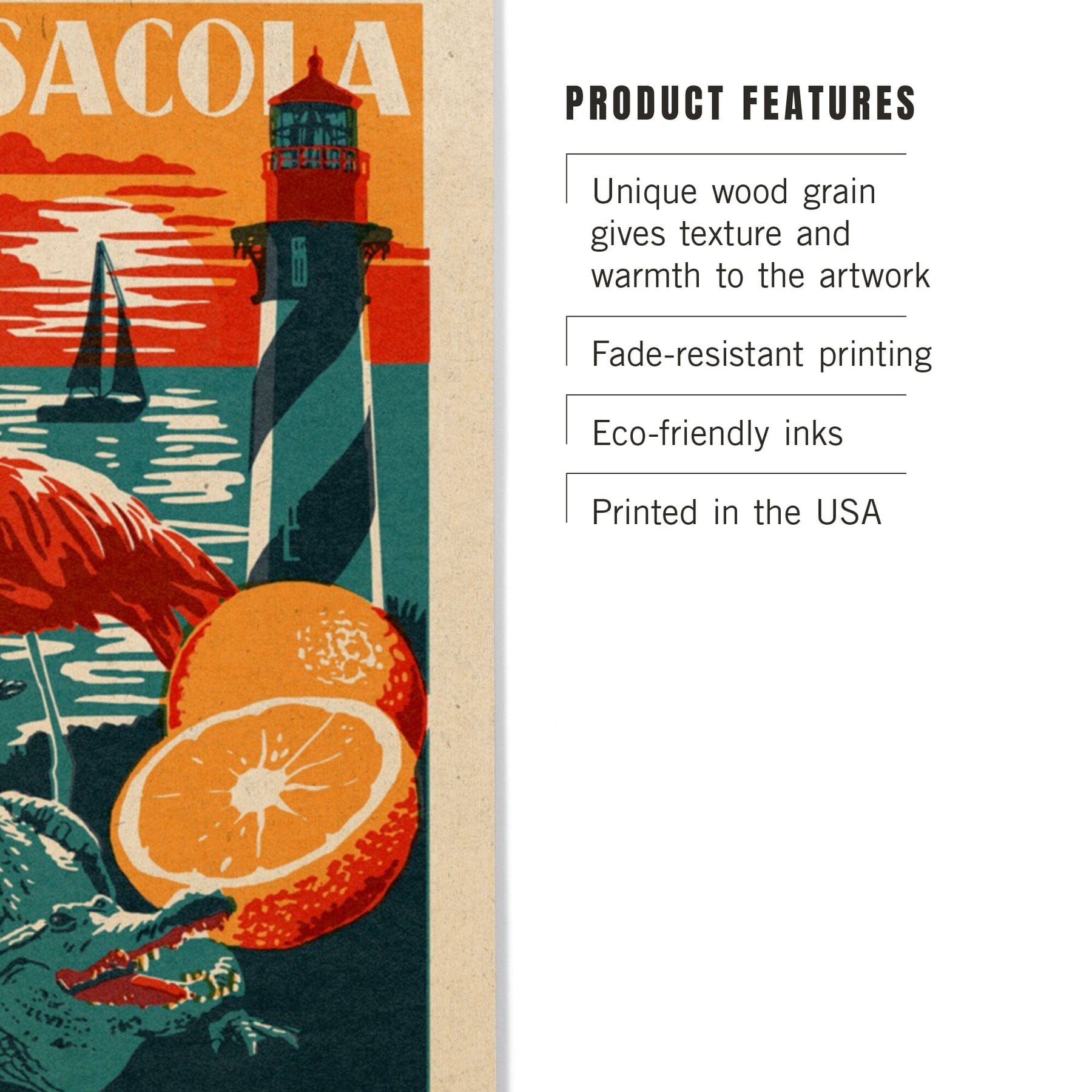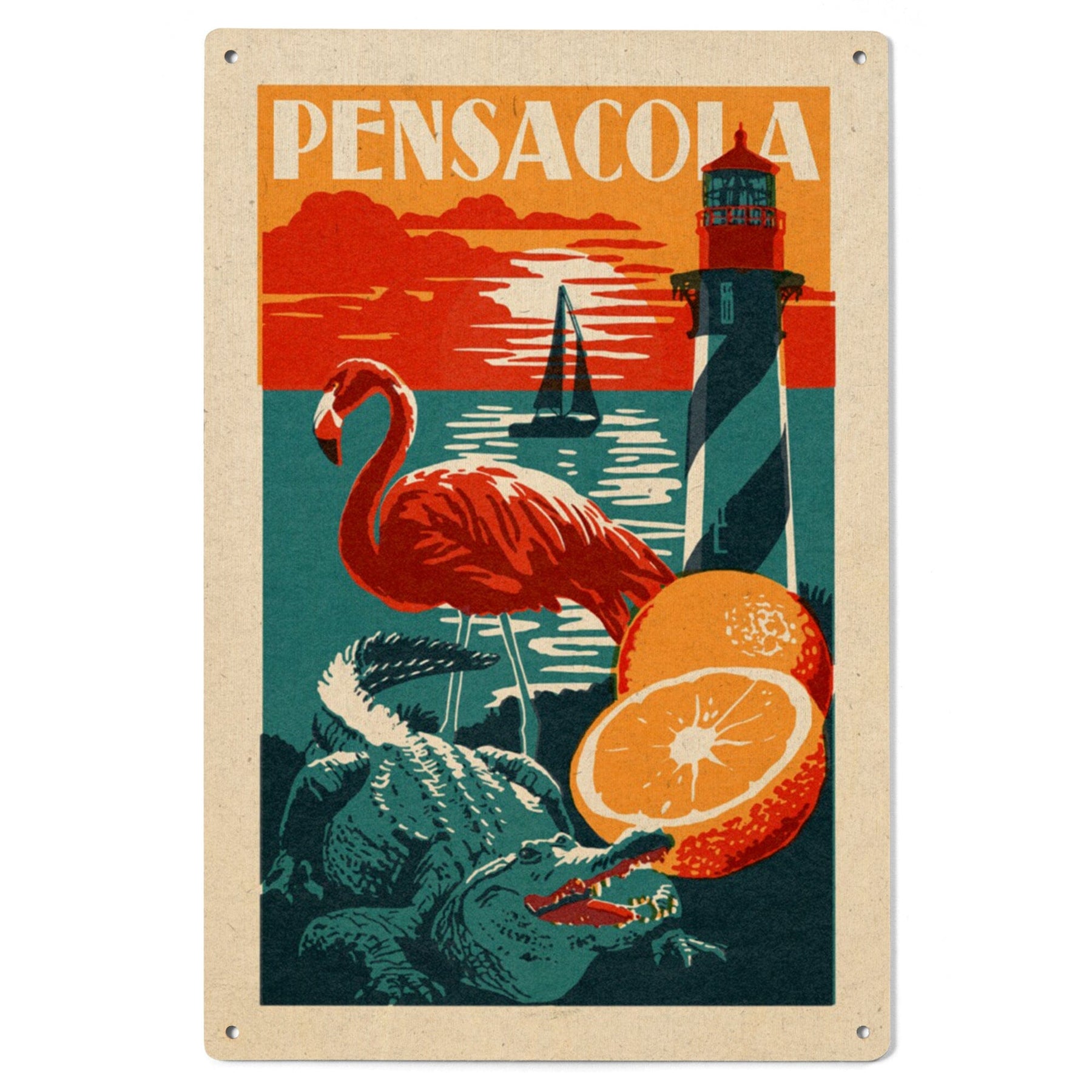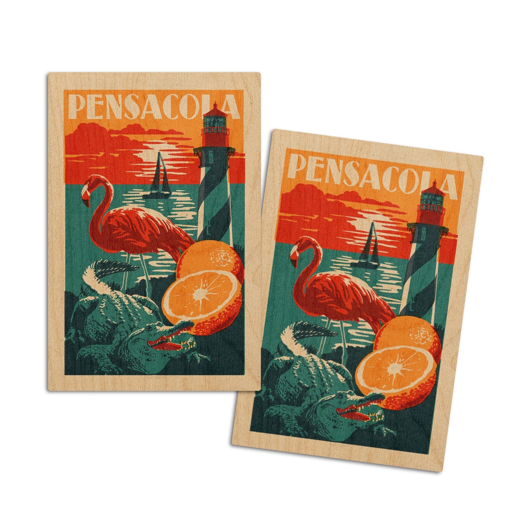 Pensacola, Florida, Woodblock, Lantern Press Artwork, Wood Signs and Postcards
