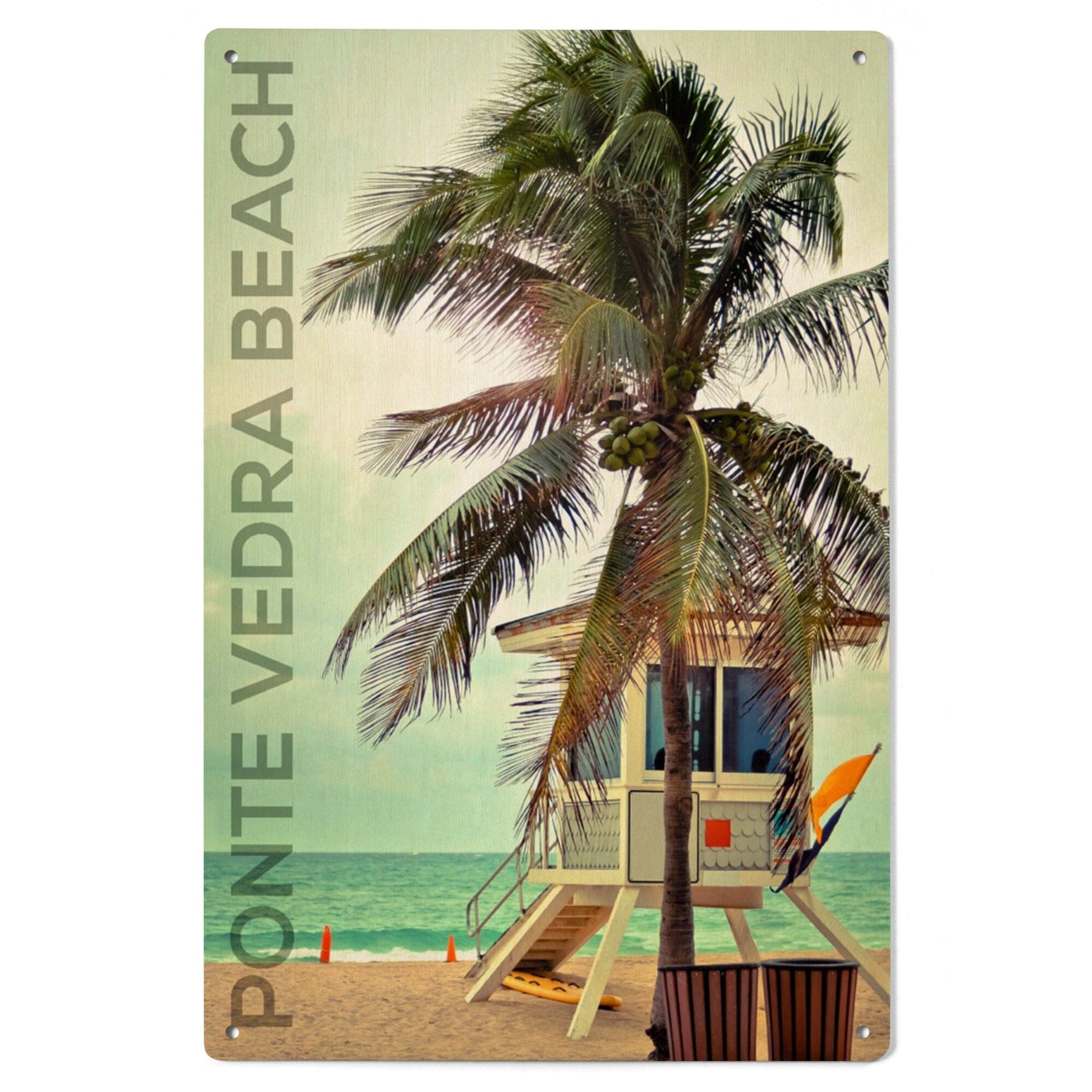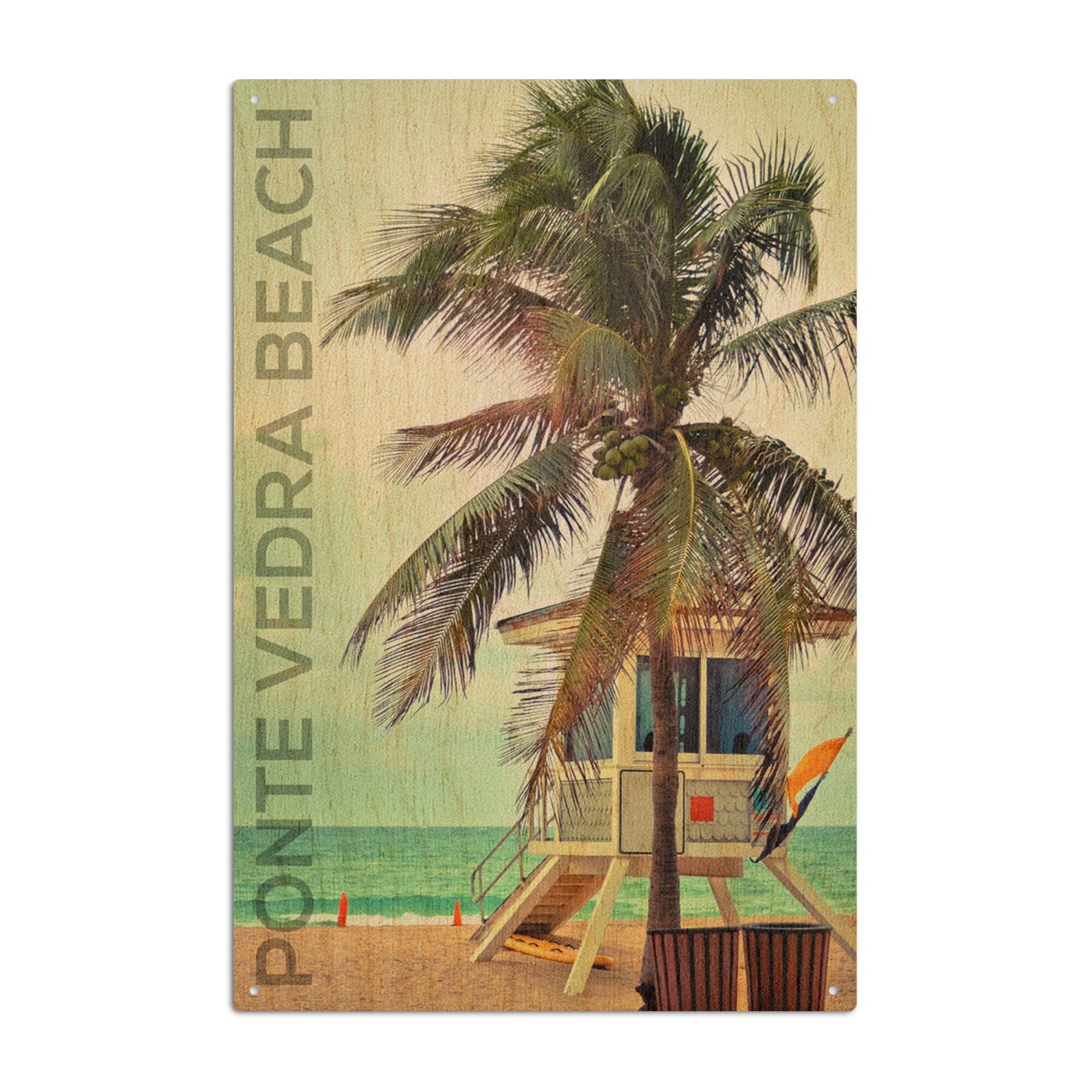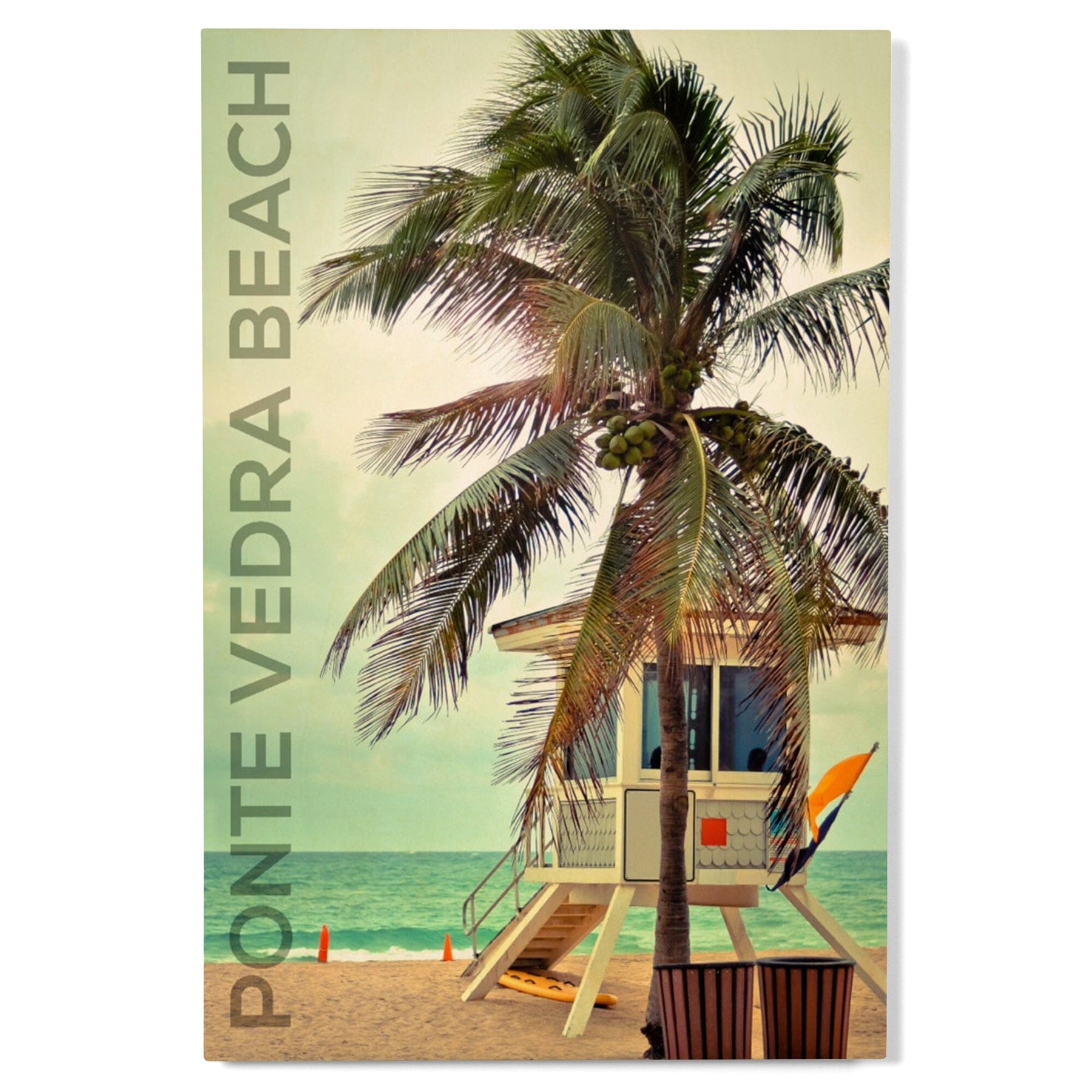 Ponte Vedra, Florida, Lifeguard Shack & Palm, Lantern Press Photography, Wood Signs and Postcards Wood Lantern Press