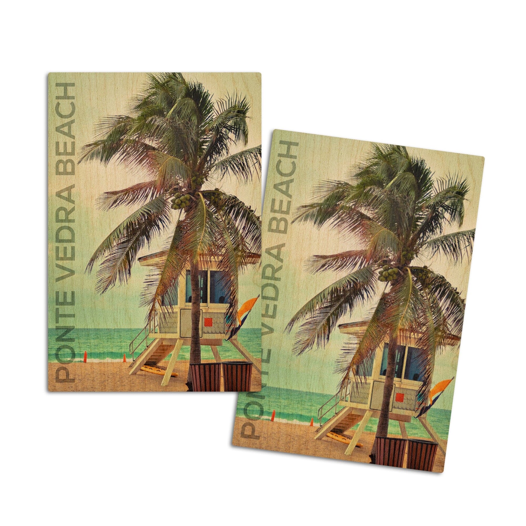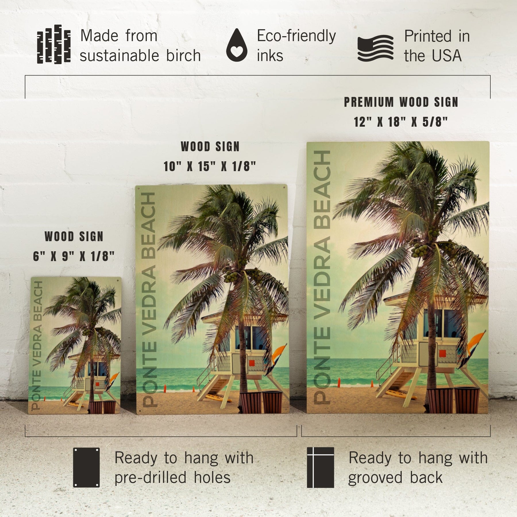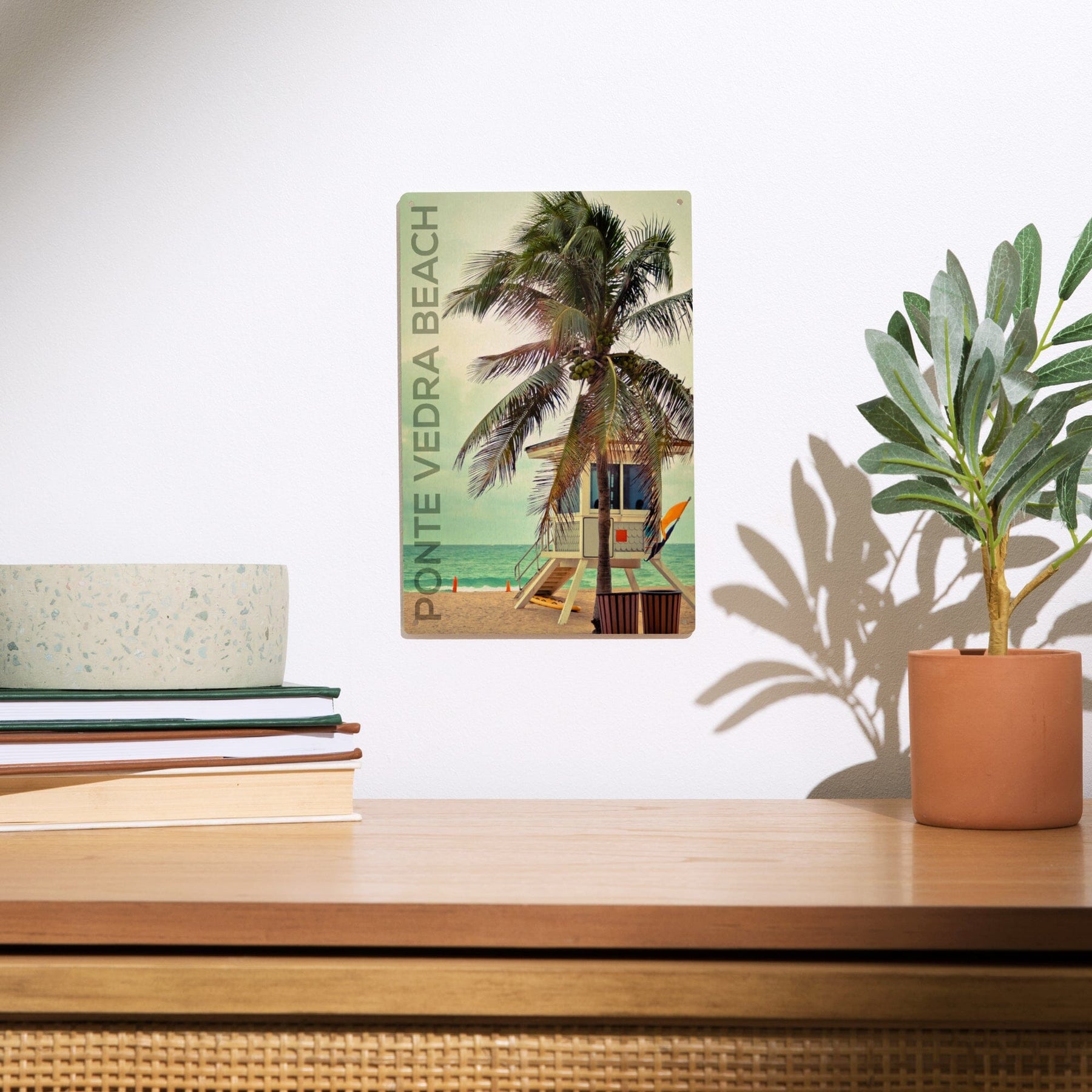 Ponte Vedra, Florida, Lifeguard Shack & Palm, Lantern Press Photography, Wood Signs and Postcards